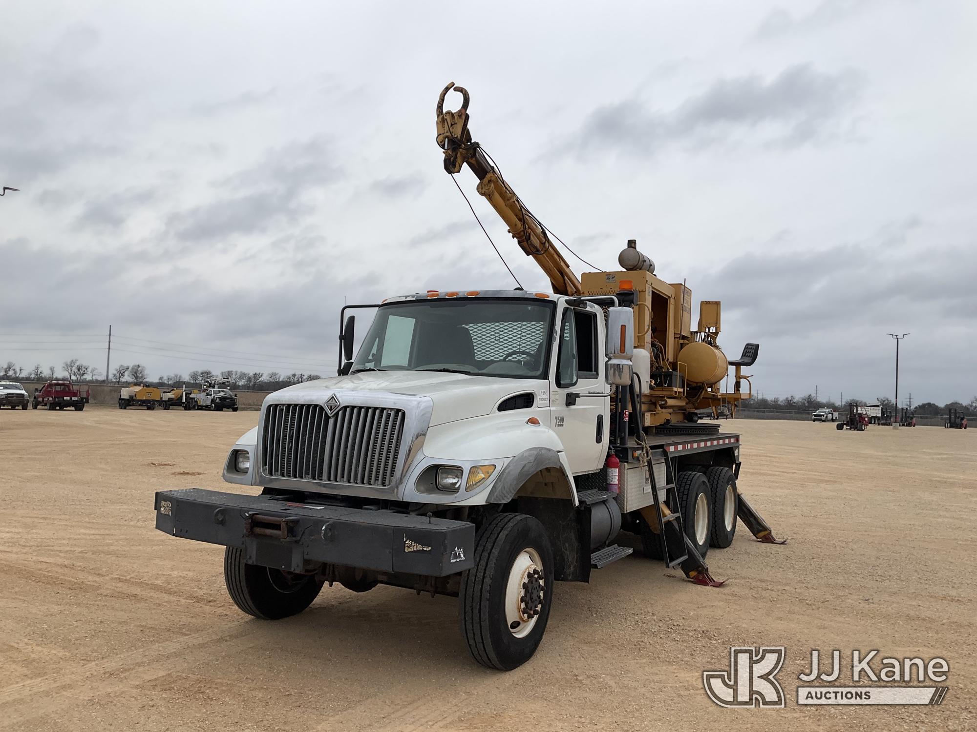 Reedrill/Texoma 330-15, Pressure Digger s/n 1D22F06, with 4 Outriggers, Winch, Pole Claw, corner mounted on 2006 International 7500 T/A Flatbed Truck, 9.3L L6 DIESEL 6X6, manual, with Front Bumper Winch, (Exempt from Odometer Disclosure - Reads 92,037 miles) (Runs, Moves & Operates) (Jump To Start, Engine Light On) This is a Titled Item*