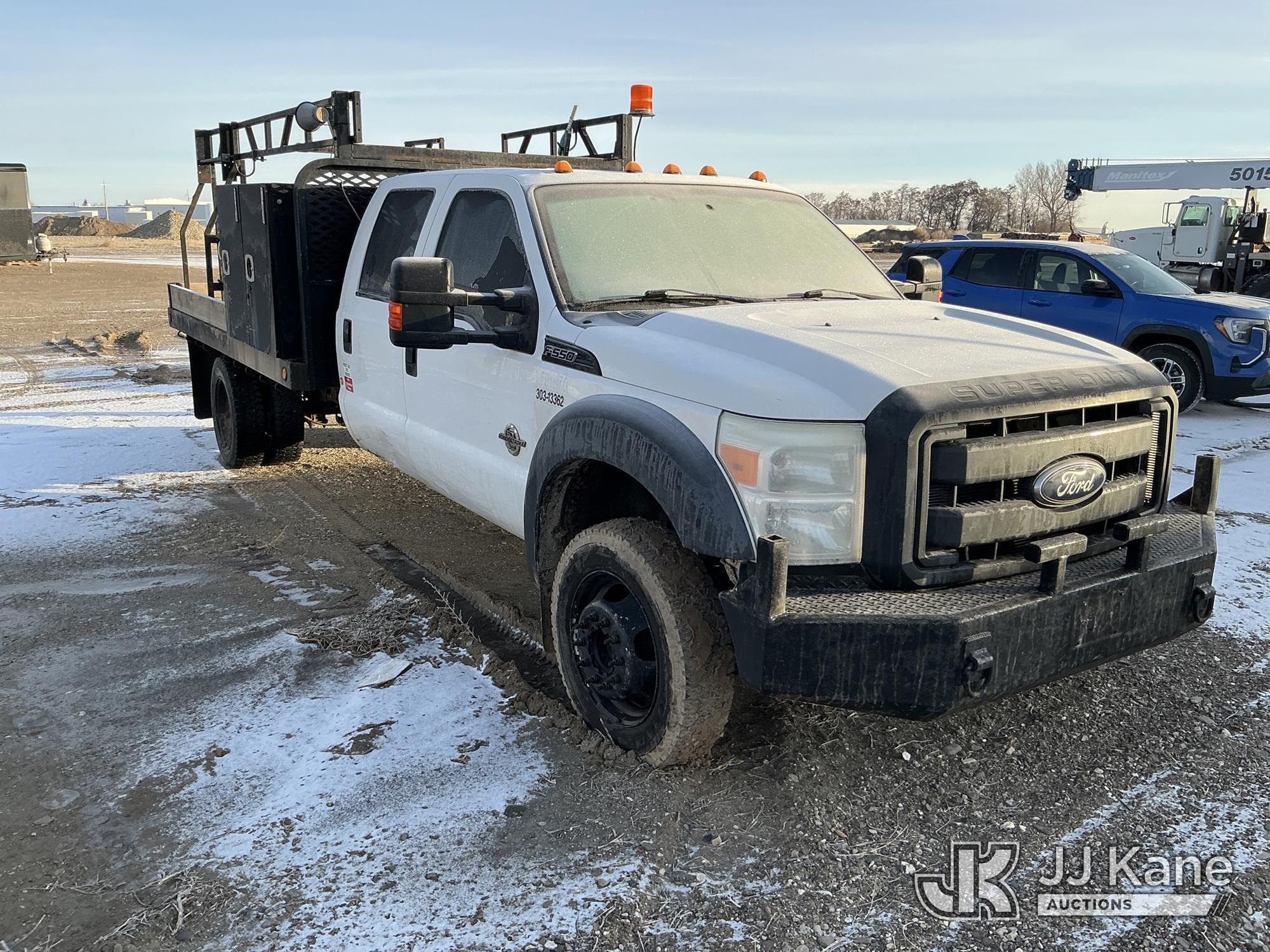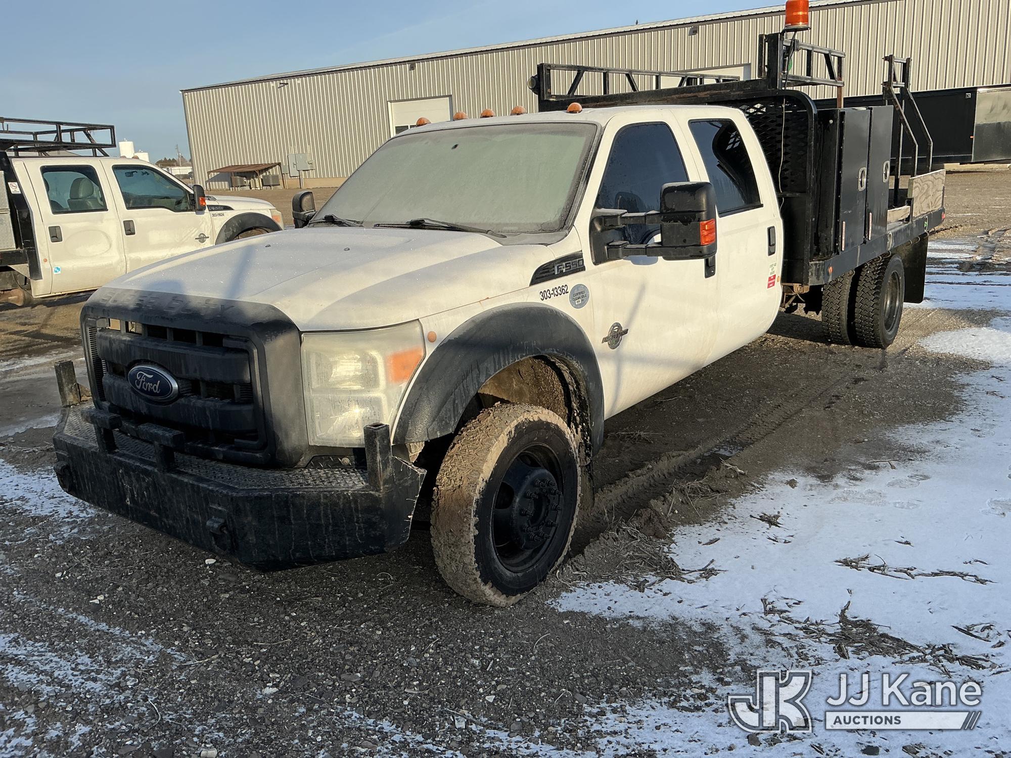 2012 Ford F550 4x4 Crew-Cab Flatbed/Service Truck, 6.7L diesel, Auto, A/C, (87,068 miles) (Not Running, Condition Unknown, Cranks, Driveshaft Disconnected) (Seller States: Ran And Moved Before Engine Wouldn’t Start) This is a Titled Item*