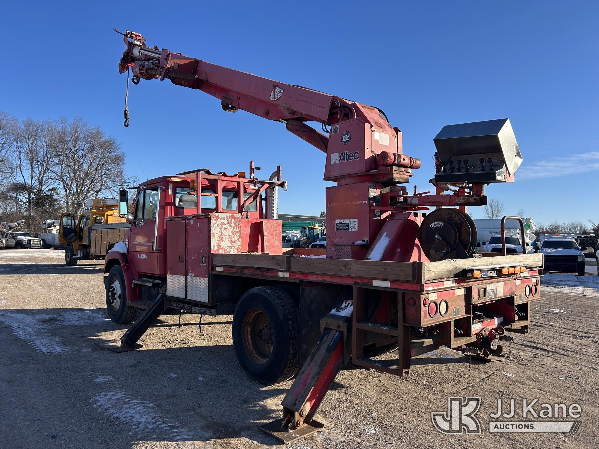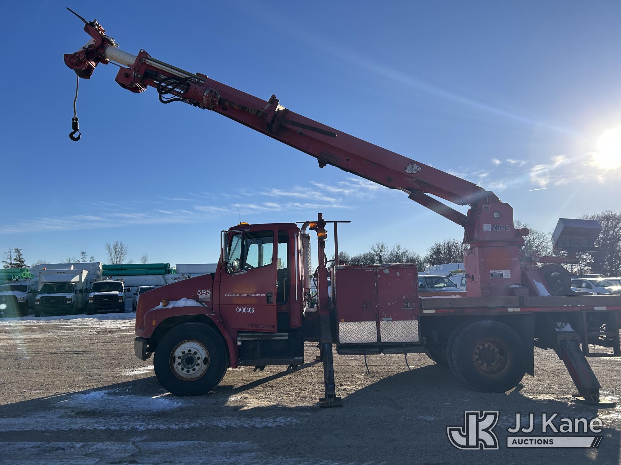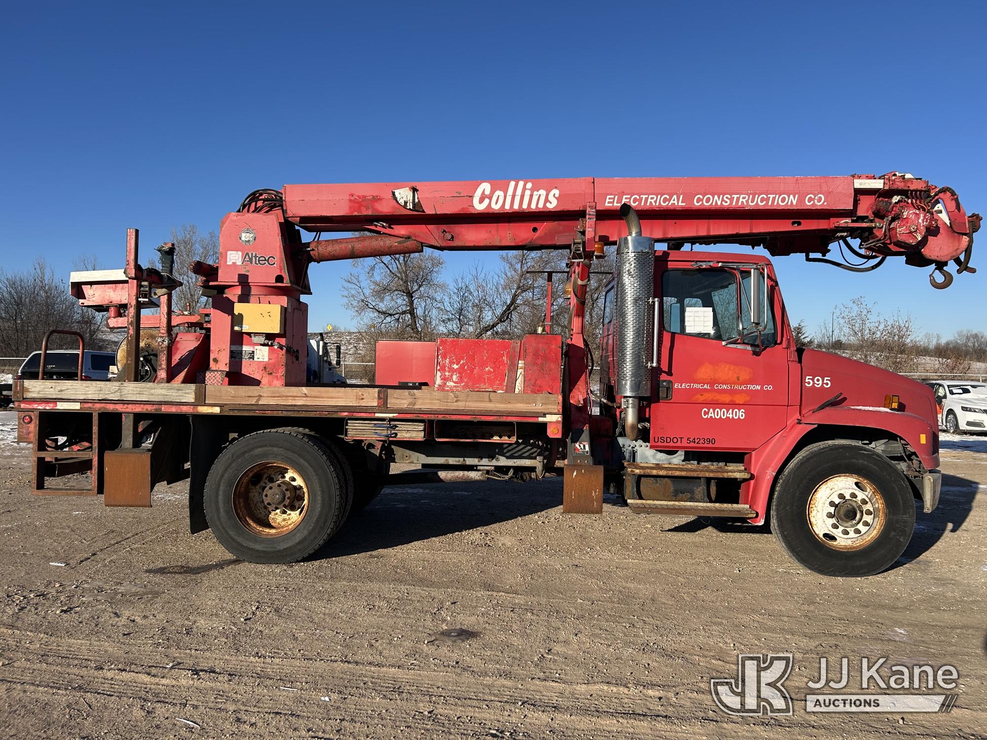 Altec D947-BR, 17,850 Lb Digger Derrick s/n 0600BA2371, with 47 ft sheave height, 3-section boom, 2 spd digger, pole grabs, & heel winch, rear mounted on 2001 Freightliner FL80 Flatbed/Utility Truck, 7.2L diesel, 4X2, 7-spd, (Exempt from Odometer Disclosure - Reads 78,743 miles) Travel Height 11ft 11in (Runs, Moves & Upper Operates) (Reads 2,809 hours) This is a Titled Item*