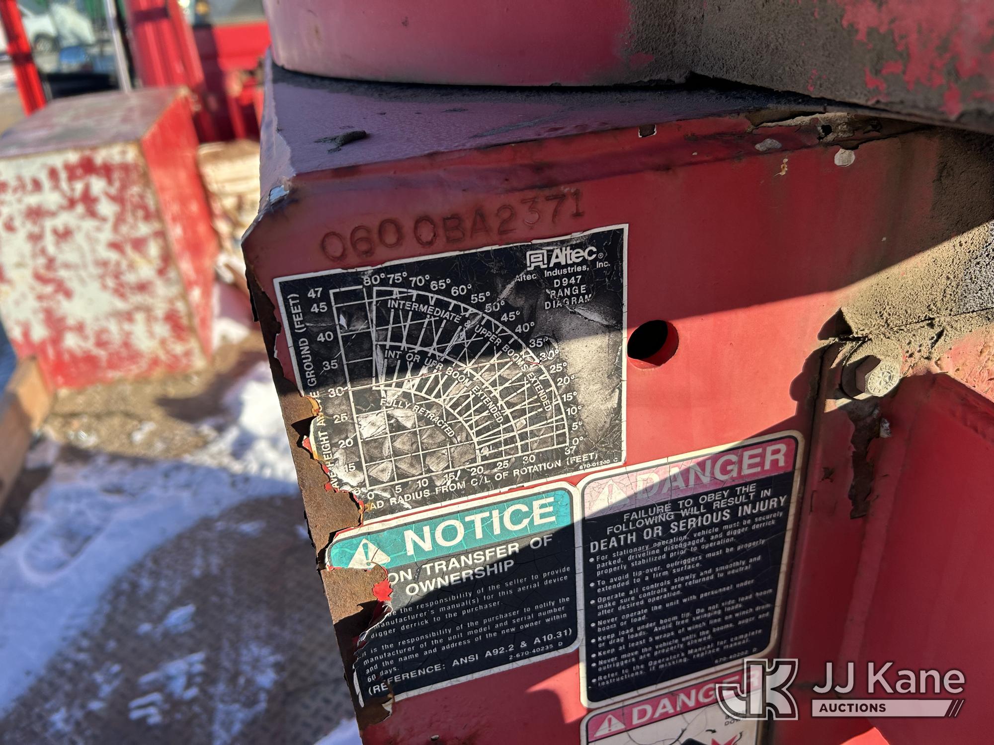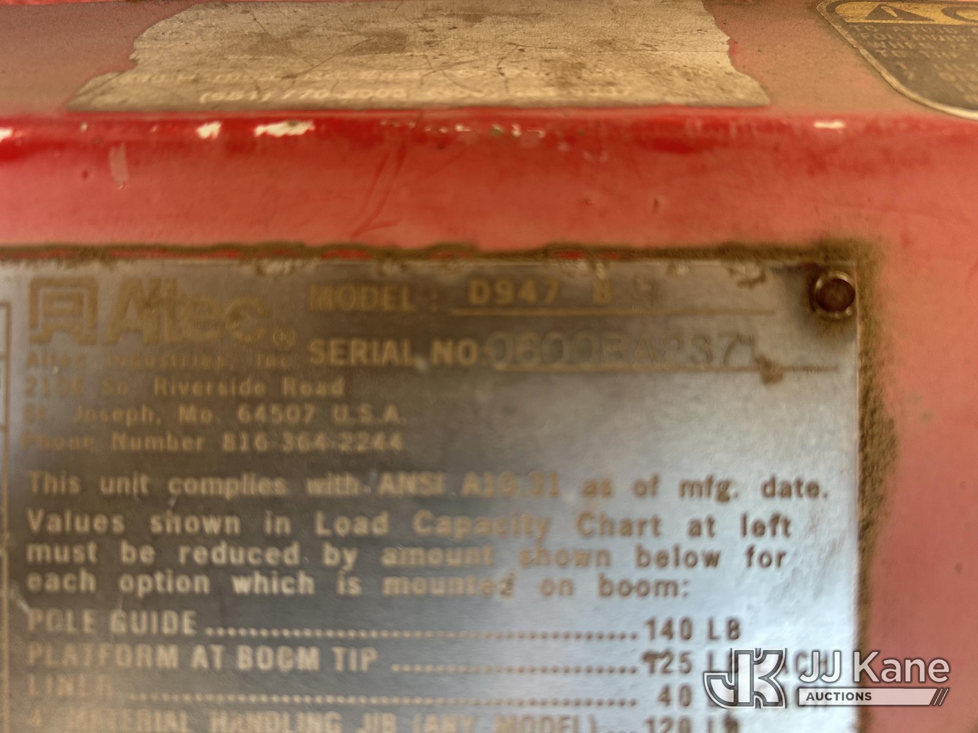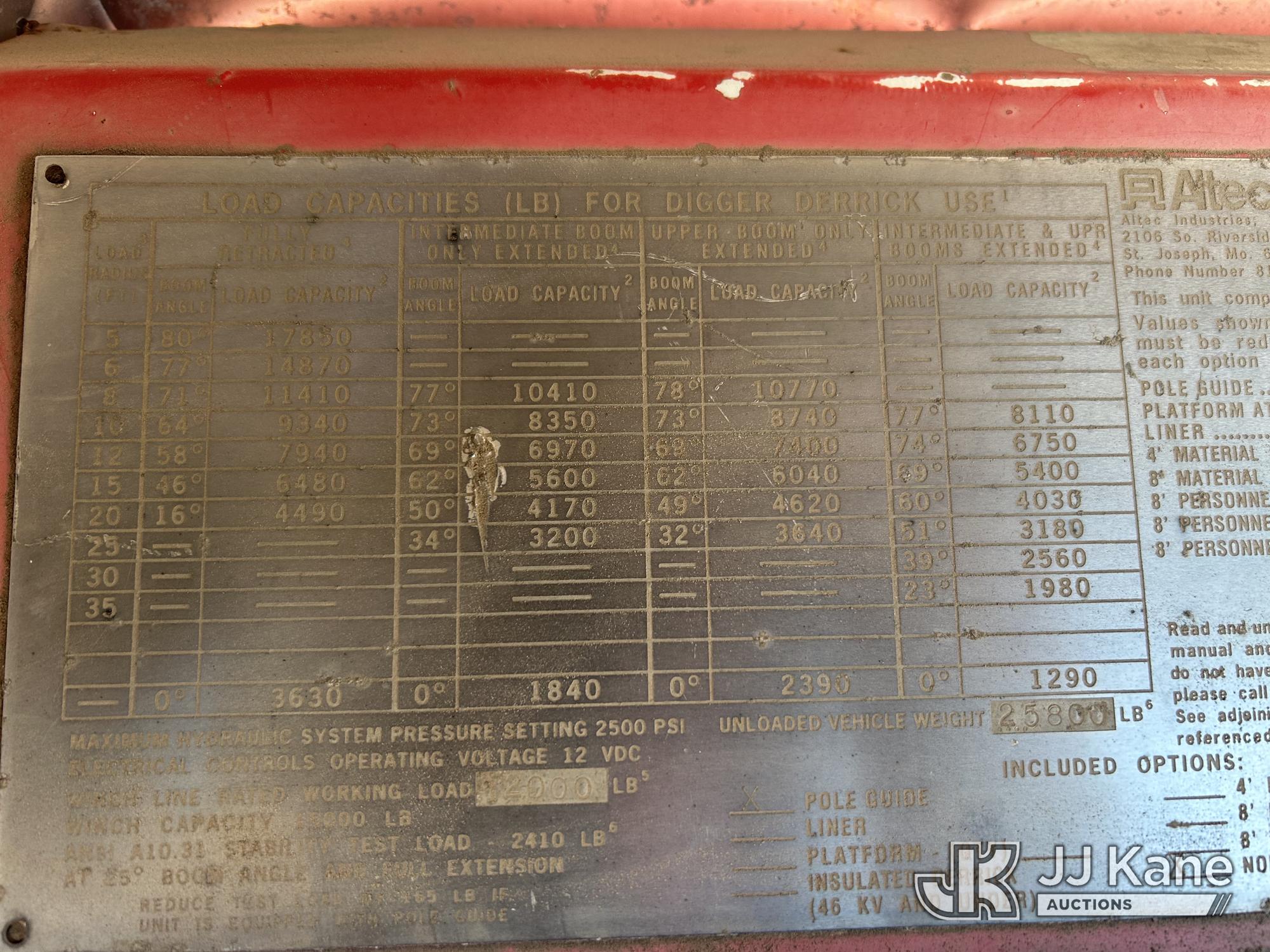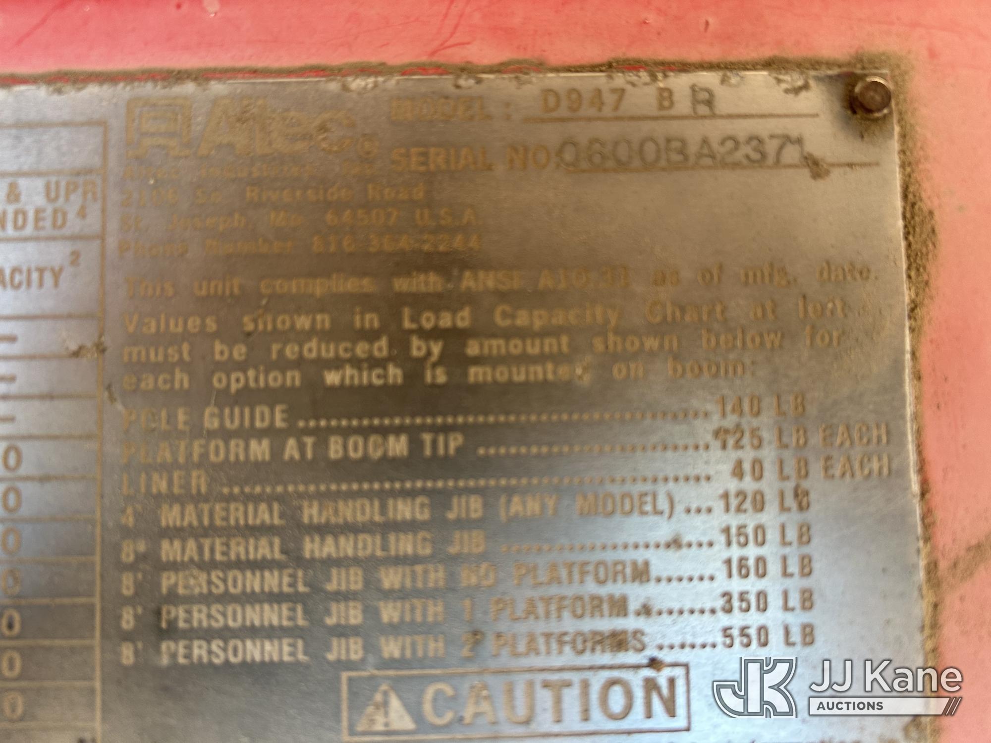 Altec D947-BR, 17,850 Lb Digger Derrick s/n 0600BA2371, with 47 ft sheave height, 3-section boom, 2 spd digger, pole grabs, & heel winch, rear mounted on 2001 Freightliner FL80 Flatbed/Utility Truck, 7.2L diesel, 4X2, 7-spd, (Exempt from Odometer Disclosure - Reads 78,743 miles) Travel Height 11ft 11in (Runs, Moves & Upper Operates) (Reads 2,809 hours) This is a Titled Item*