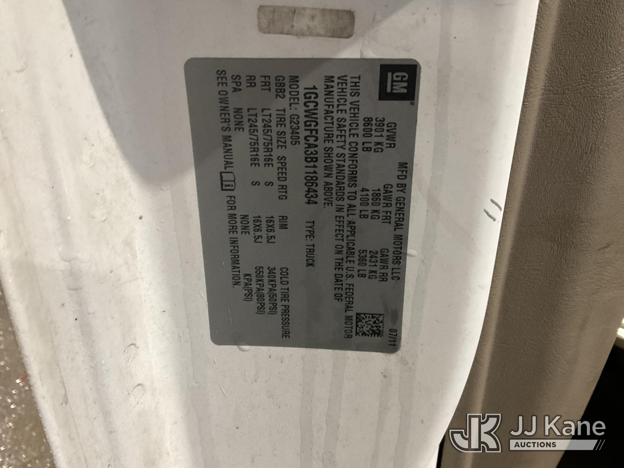 2011 Chevrolet Express 2500 Cargo Van, 4.8L V8 Gas, 6-Speed Automatic, A/C, (183,307 miles) (Runs & Moves, FR Panel Dent & Door Dent) (Removal is by Appointment Only, Buyer MUST make a appointment prior to picking up, Buyer/Transporter Must have PAID IN FULL RELEASE. No onsite assistance available, Please Come prepared.) This is a Titled Item*