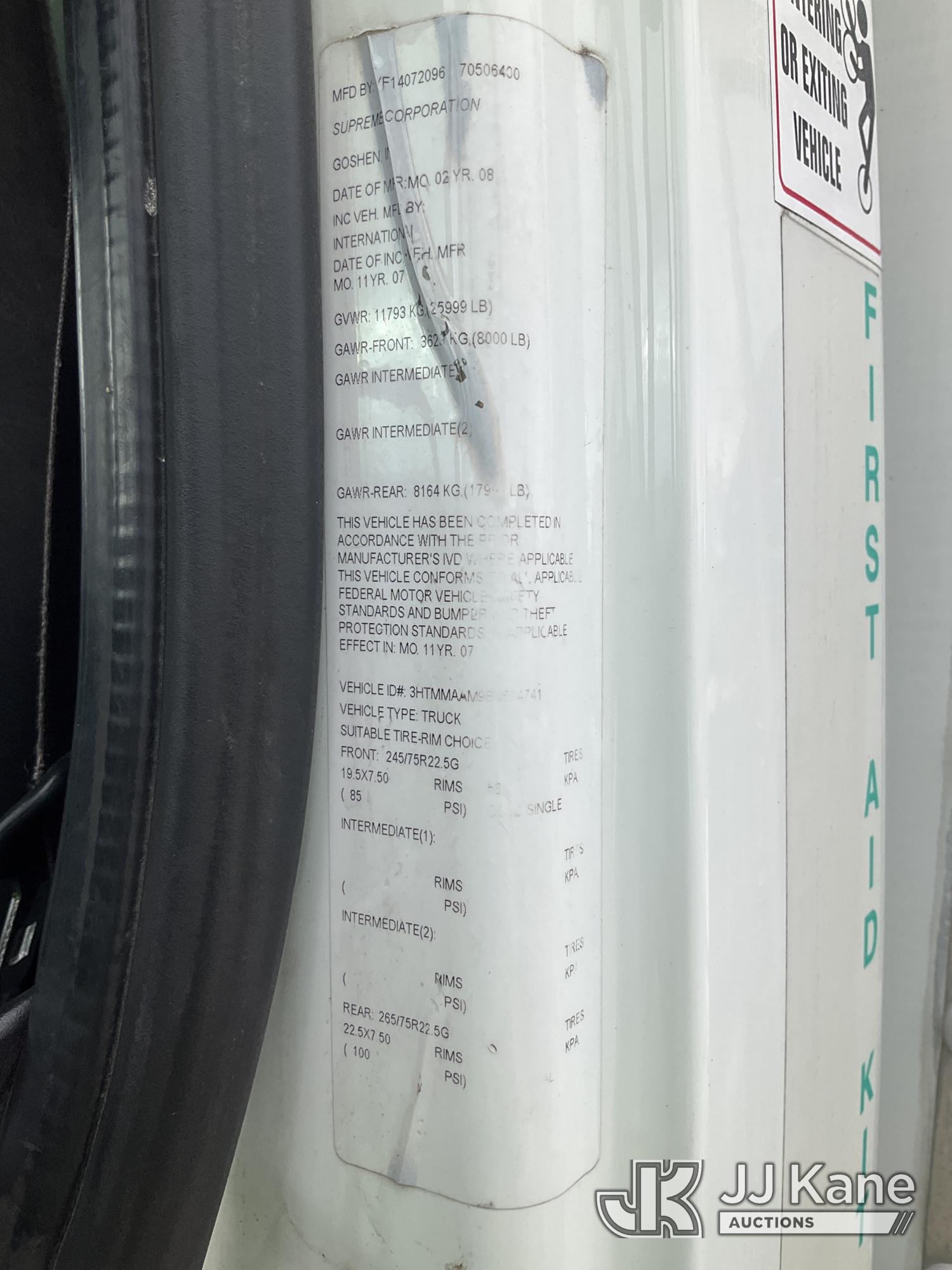 2008 International 4300 Spray Truck, 7.6L L6 DIESEL 4X2, Auto, (130,835 miles) (Runs & Moves-With Jump Pack) (PTO Does Not Engage-Operating Condition Unknown) (Econ Light On, Generator/Pump Removed, Dash/Fuse Panels Apart) (Reads 14,432 hours) This is a Titled Item*