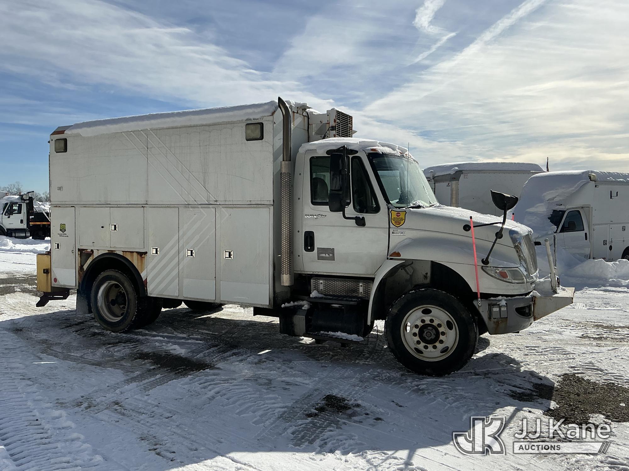 2014 International DuraStar 4300 Enclosed Utility/Air Compressor Truck, MaxxForce 7, 6.4L 4X2, diesel, Auto, A/C, with Vanair under deck air compressor & under deck generator, (54,536 miles) (Runs & Moves) (Engine Oil Leak, Check Engine Light On, Compressor Not Making Air) (Reads 11,642 hours) This is a Titled Item*