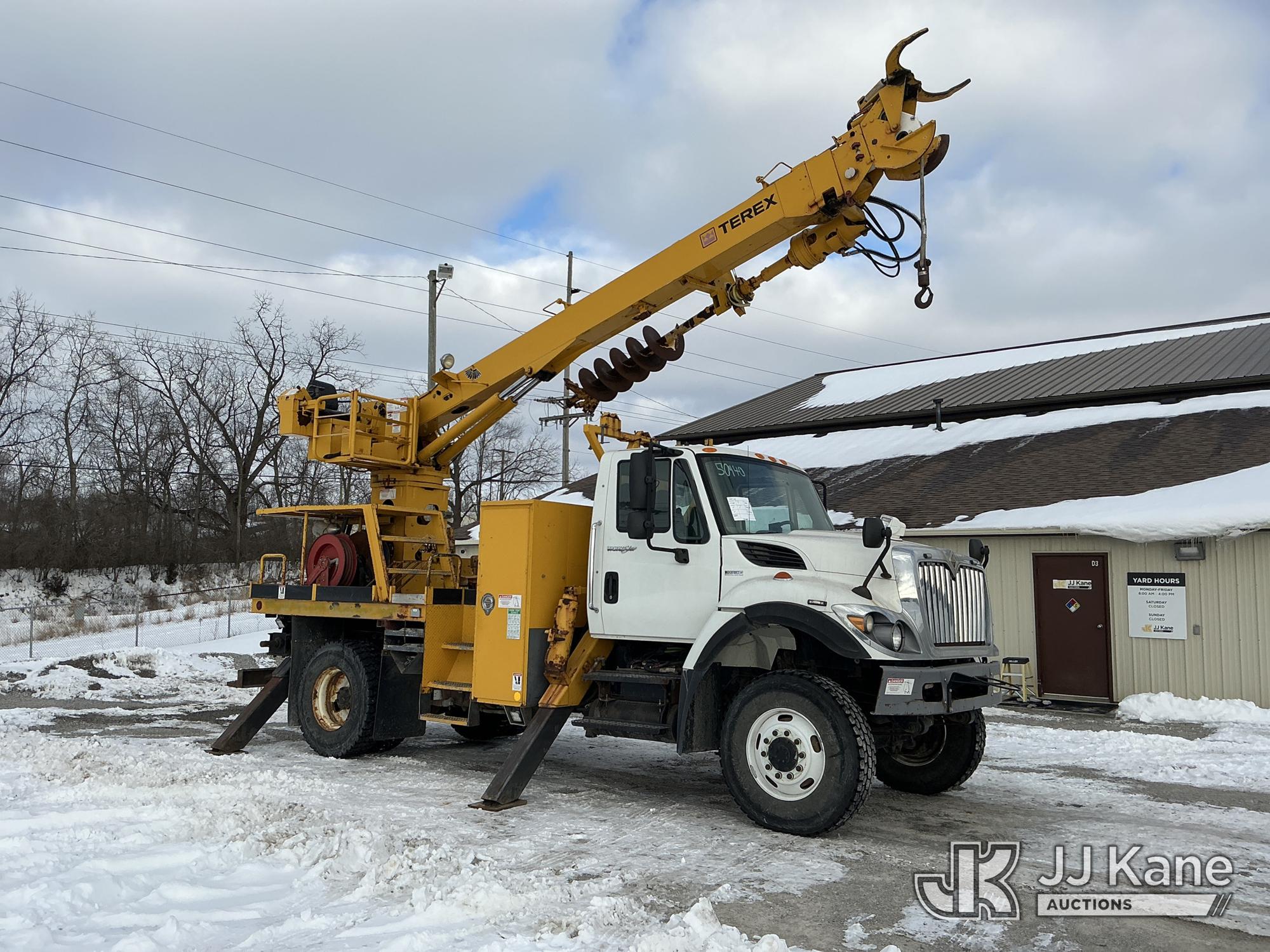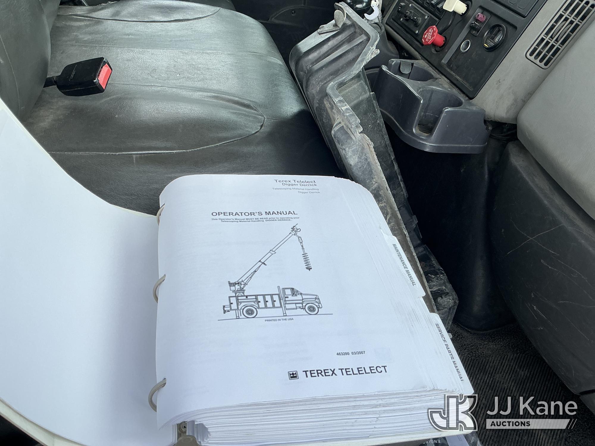 Terex/Telelect Commander 4047, 23,210 Lb Digger Derrick s/n 2100742530, with 47 ft. sheave height, 3-stage hyd. boom, pole grabs, 2 spd digger, heel winch & riding console, rear mounted on 2011 International 7300 Flatbed/Service Truck, 7.6L L6 DIESEL 4X4, Auto, A/C, with Vanair air compressor, capstan, inverter & hyd. tool reel, (106,037 miles) (Runs, Moves & Some Upper Functions Operates) (Check Engine Light On, Boom Extend Functions Inoperable) This is a Titled Item*