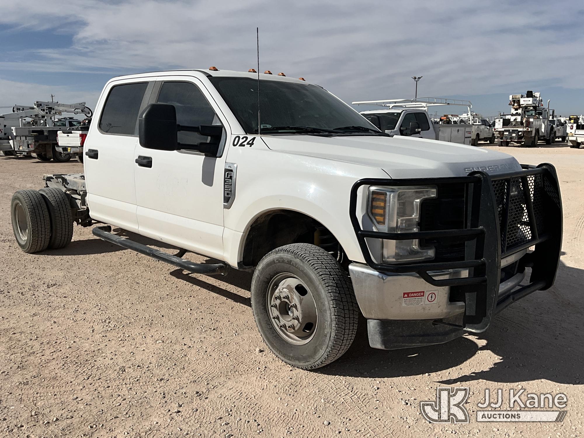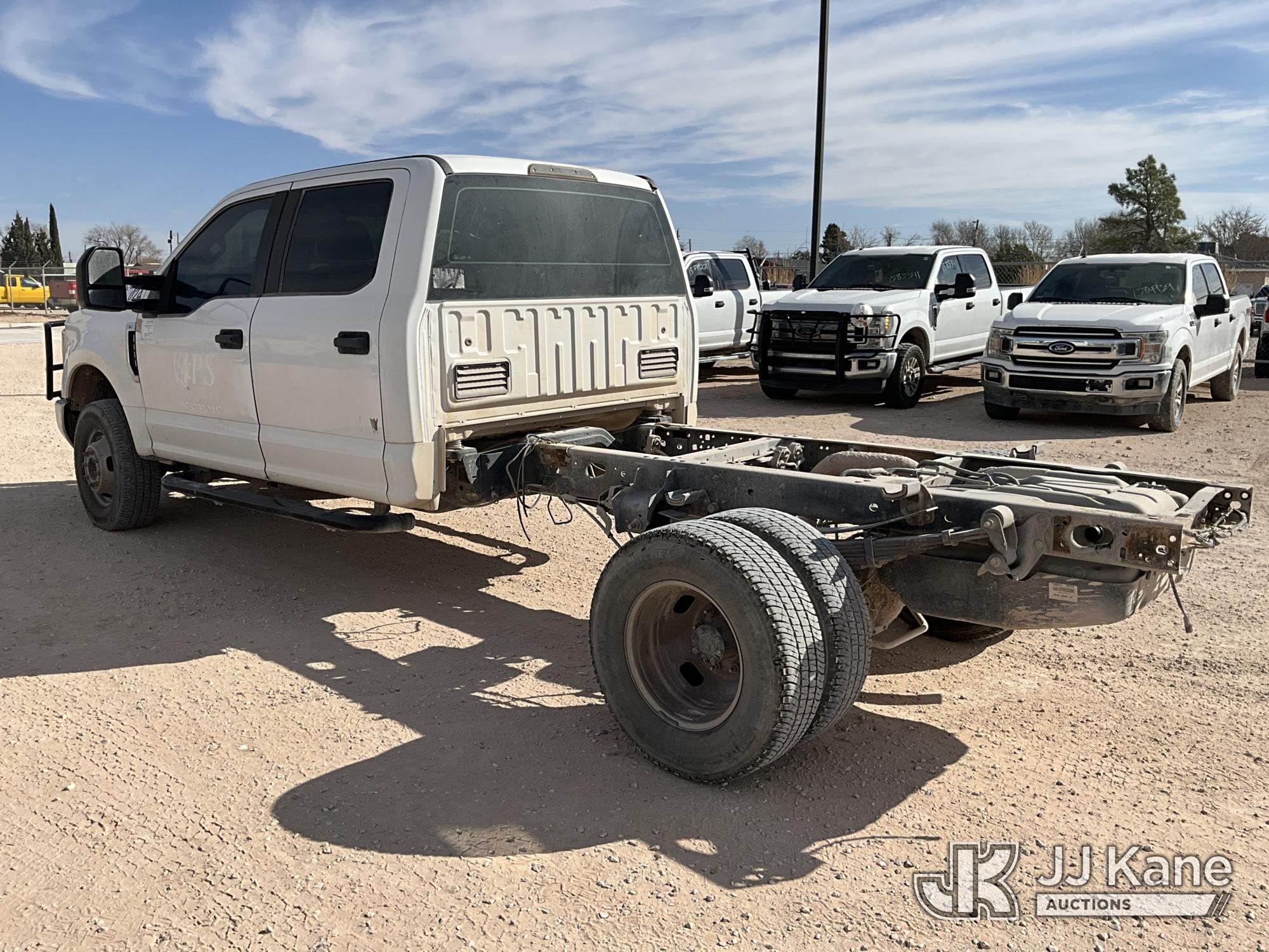 2019 Ford F-350 SD Crew-Cab Chassis, 8-cyl gas, 4wd, 6-Speed Automatic, A/C, (219,382 miles) (Runs & Moves) (Jump To Start, TPMS Light On, Powertrain Malfunction Indicator Light On, Cracked Windshield ) This is a Titled Item*