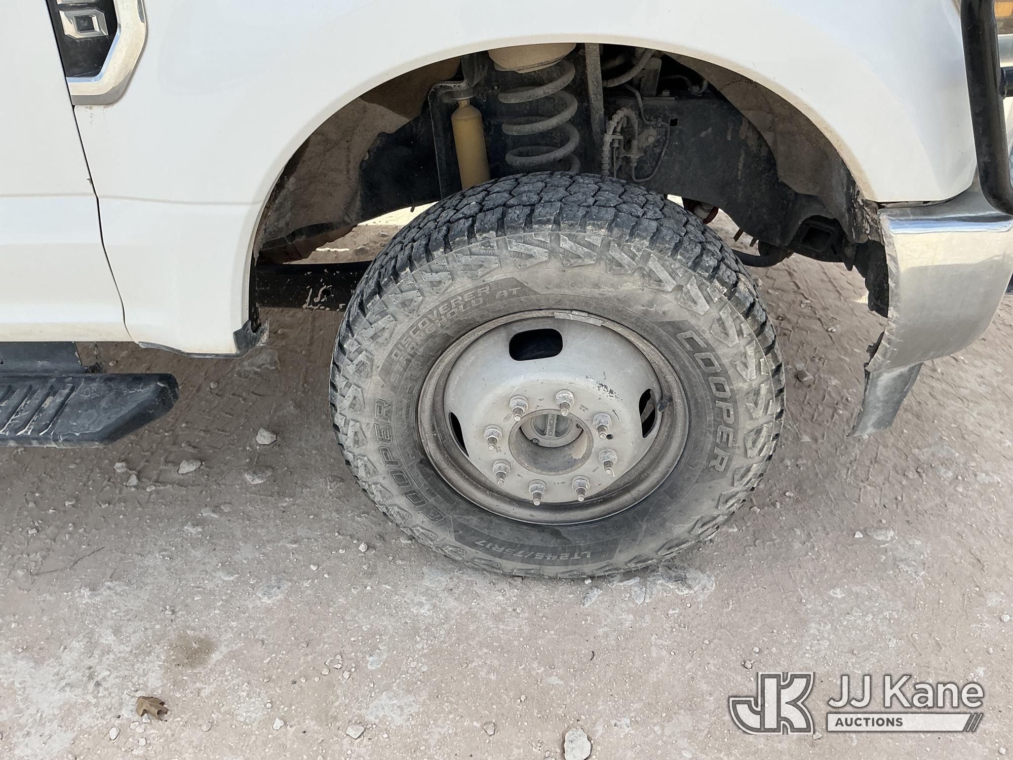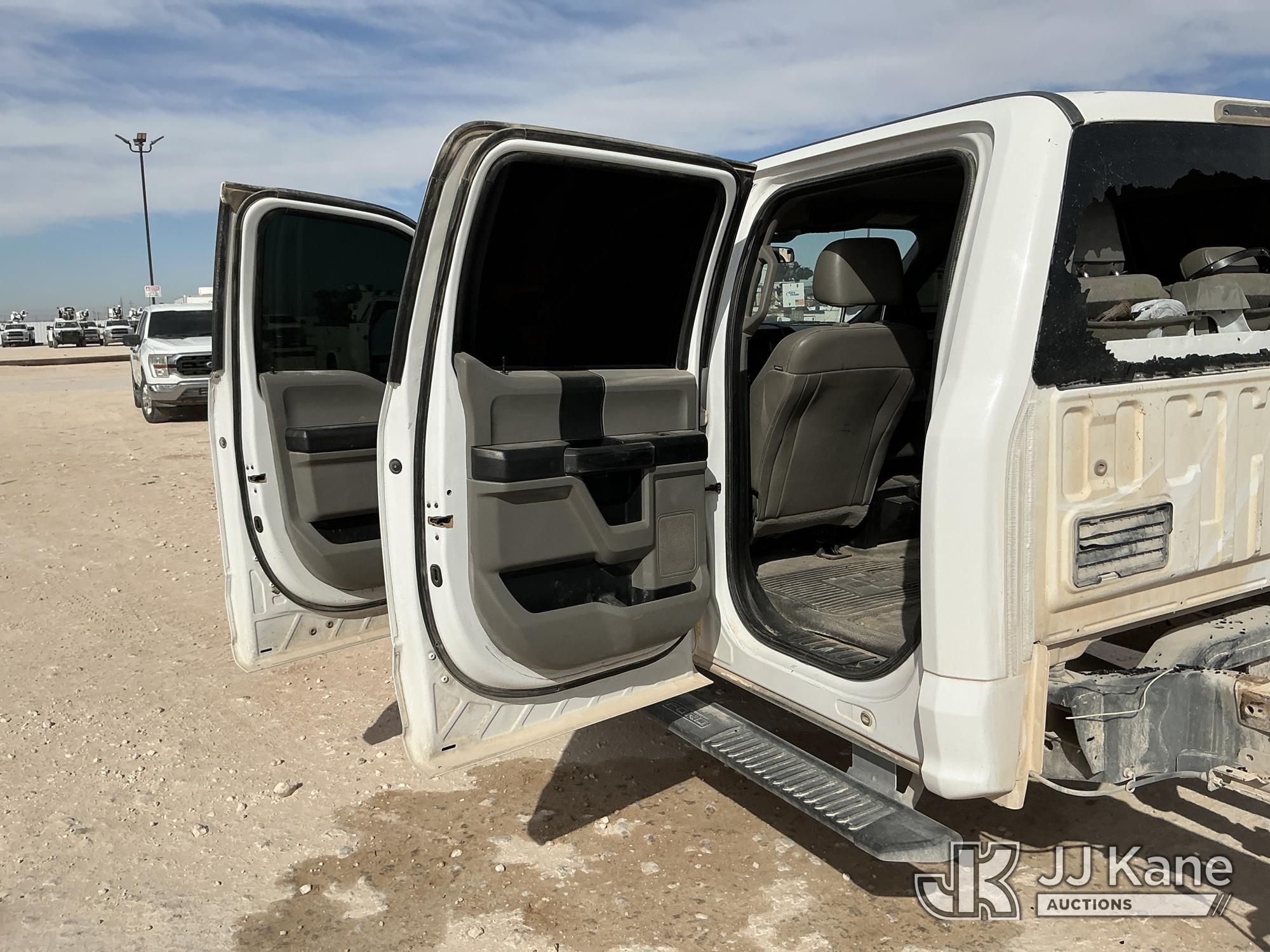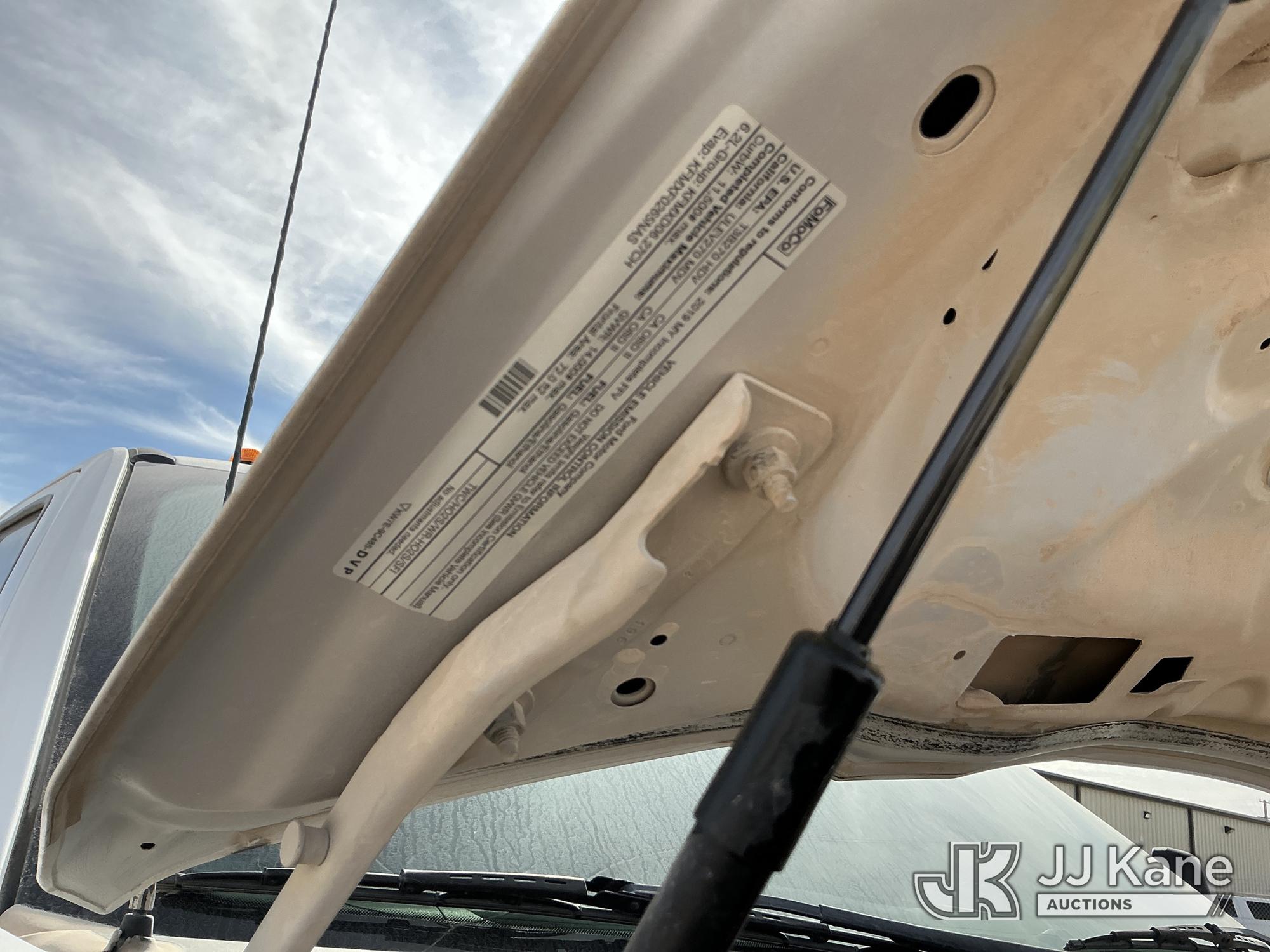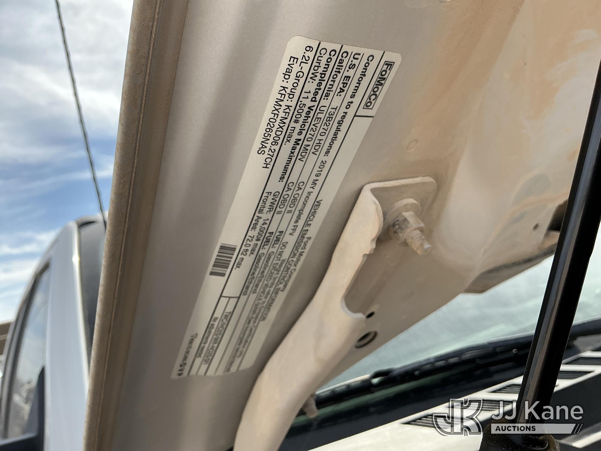2019 Ford F-350 SD Crew-Cab Chassis, 8-cyl gas, 4wd, 6-Speed Automatic, A/C, with Heavy Duty Front Bumper w/ Grill Guard, (259,501 miles) (Runs & Moves) (Jump To Start, Check Engine Light On, Engine Knocks While In Park, Windshield Cracked, Busted Rear Window, Paint & Body Damage) This is a Titled Item*