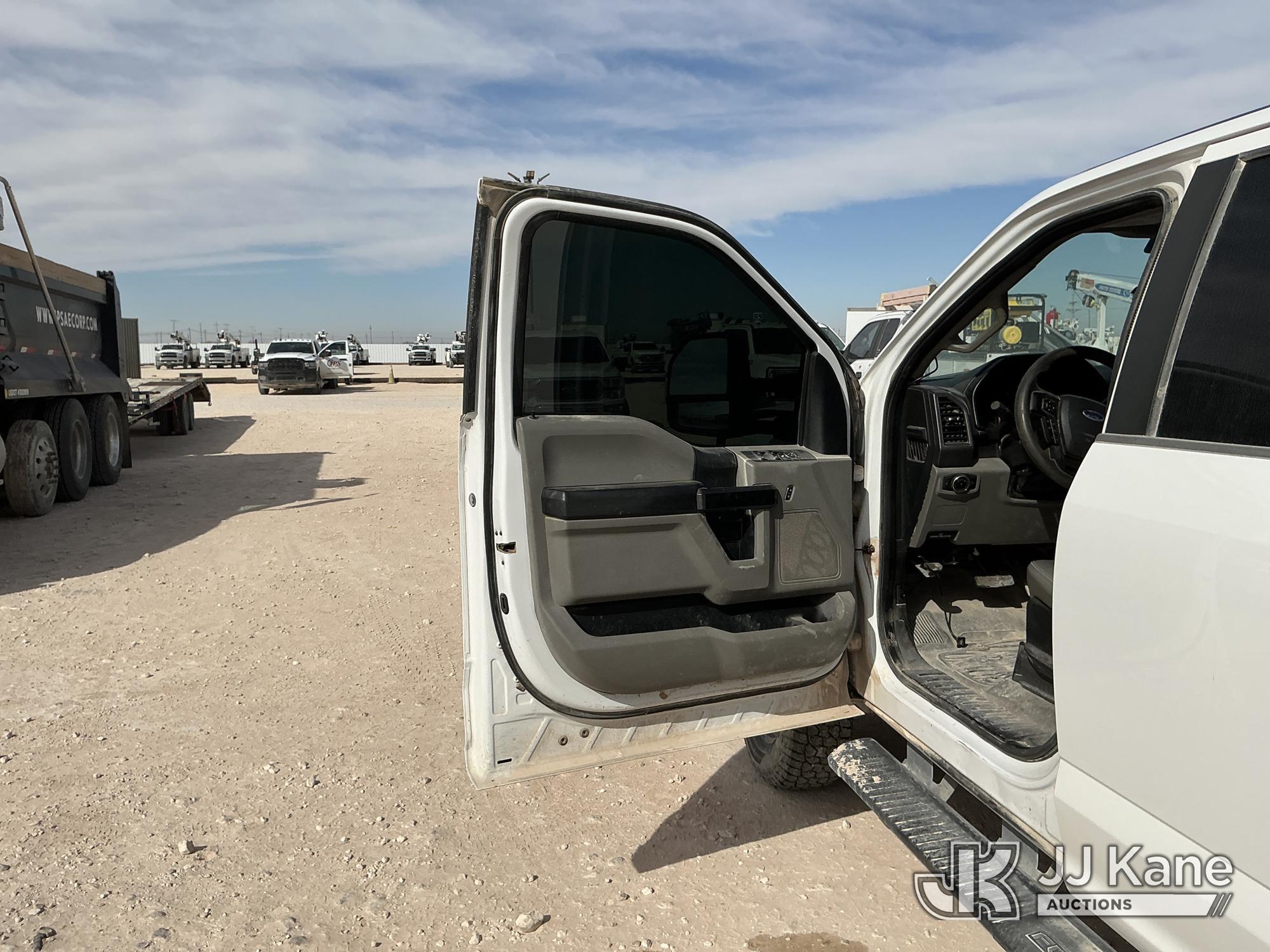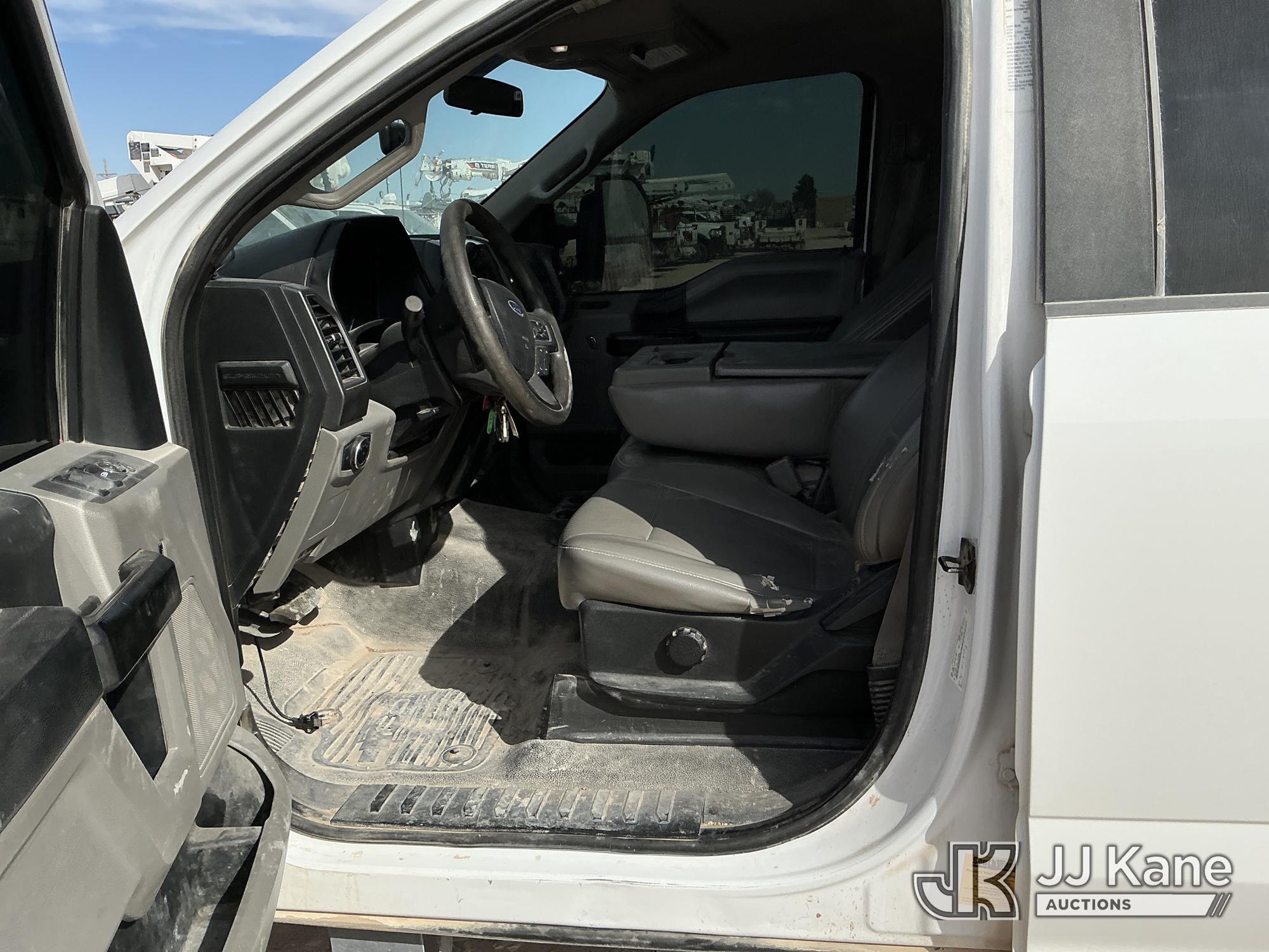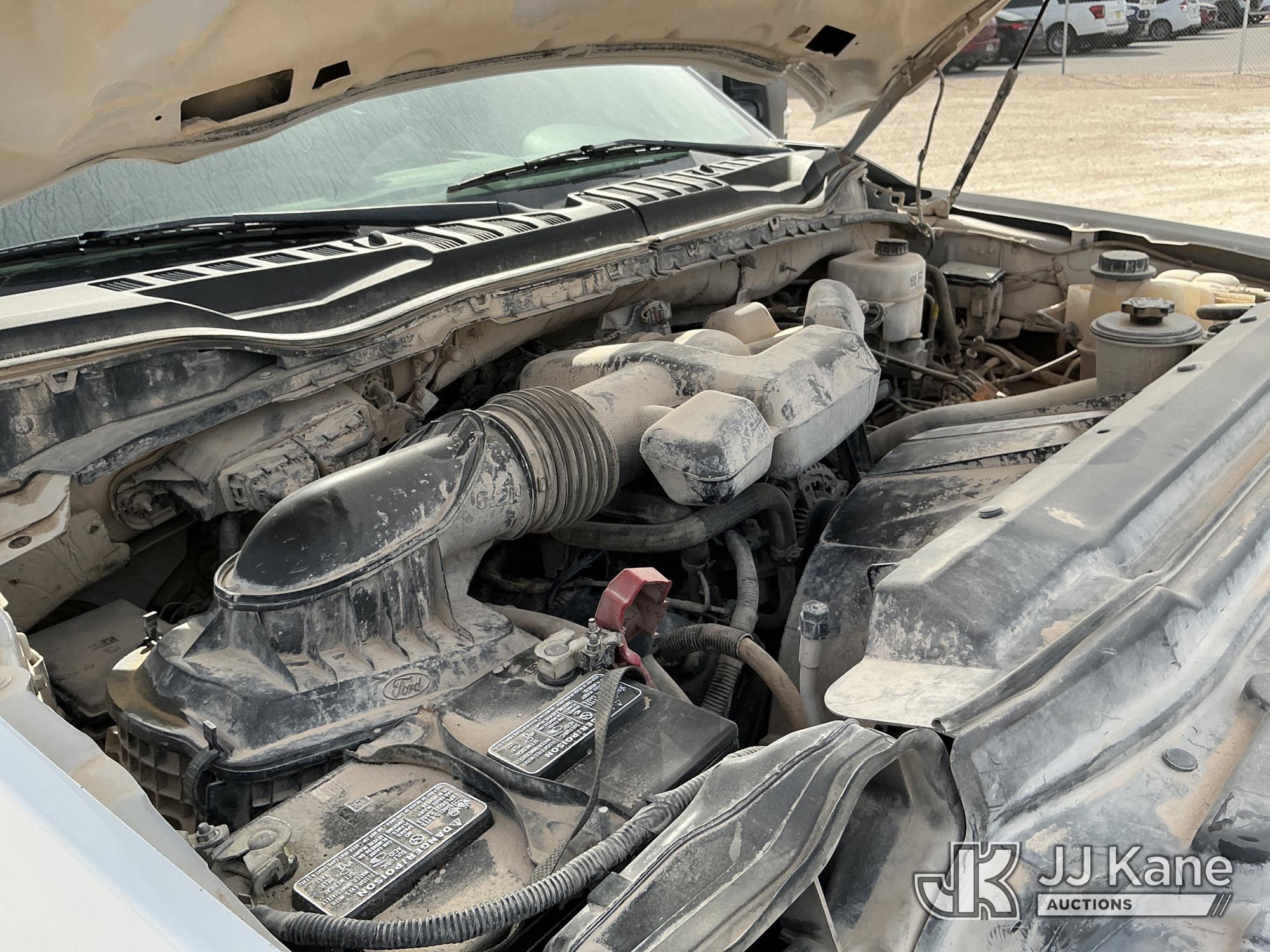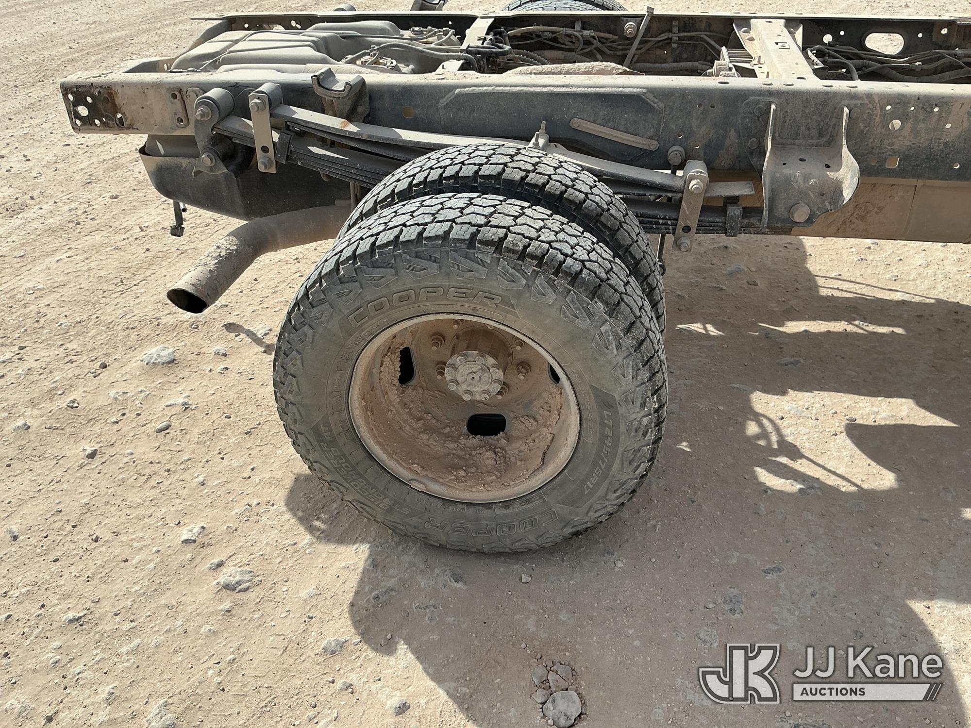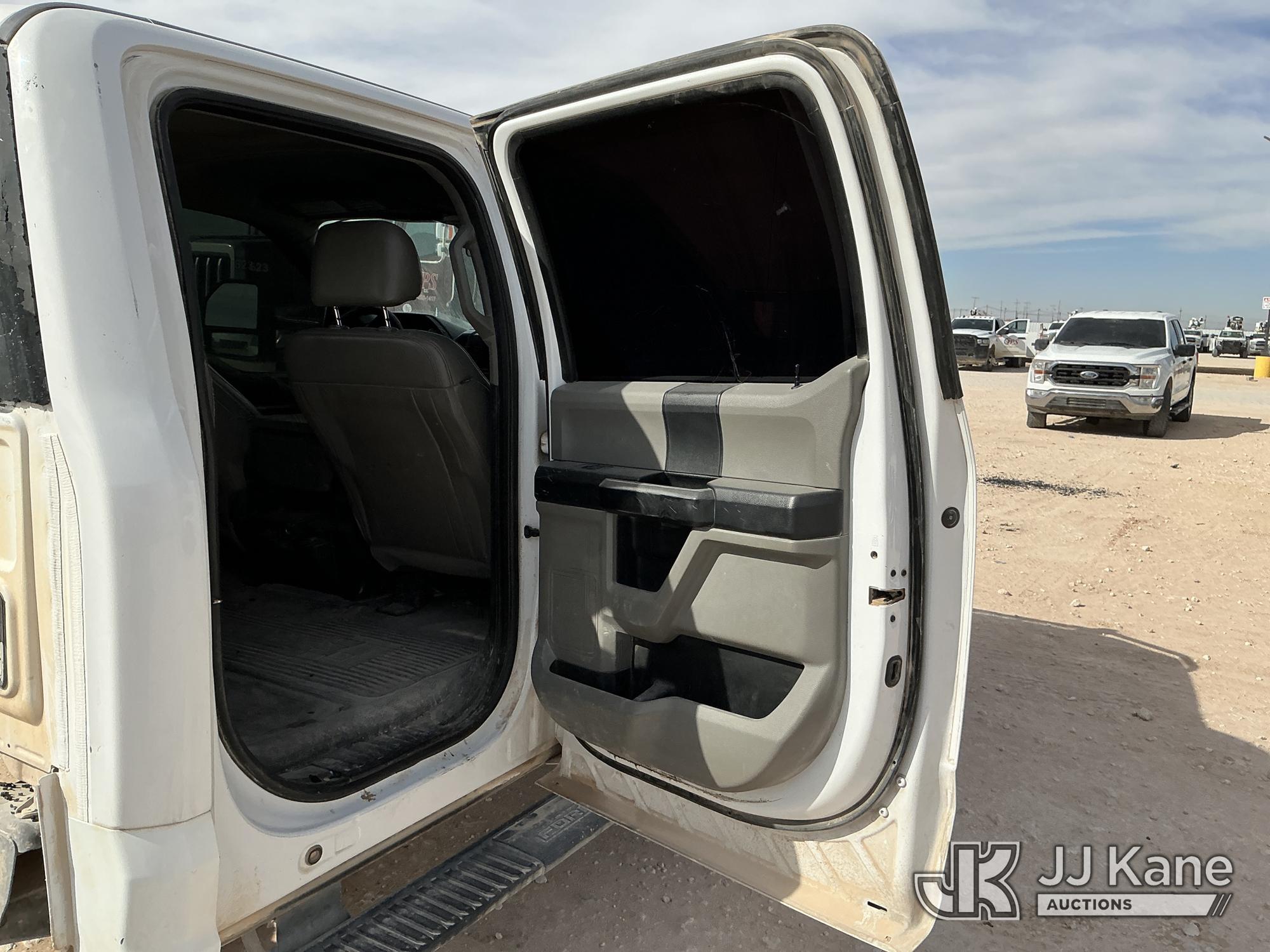 2019 Ford F-350 SD Crew-Cab Chassis, 8-cyl gas, 4wd, 6-Speed Automatic, A/C, with Heavy Duty Front Bumper w/ Grill Guard, (259,501 miles) (Runs & Moves) (Jump To Start, Check Engine Light On, Engine Knocks While In Park, Windshield Cracked, Busted Rear Window, Paint & Body Damage) This is a Titled Item*