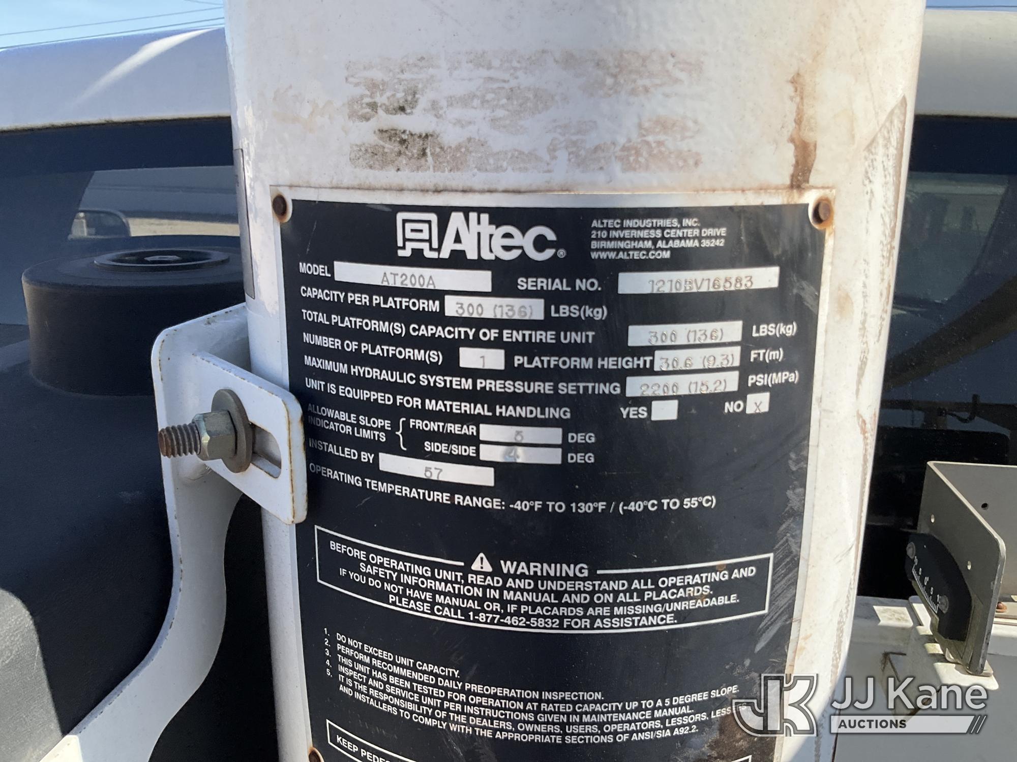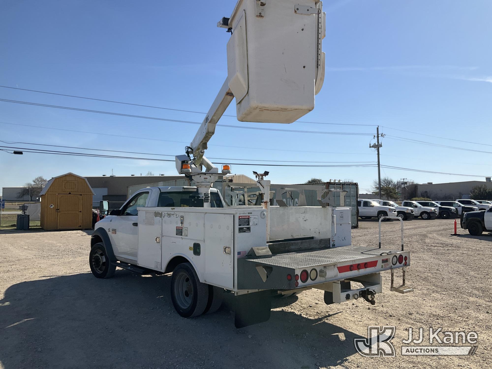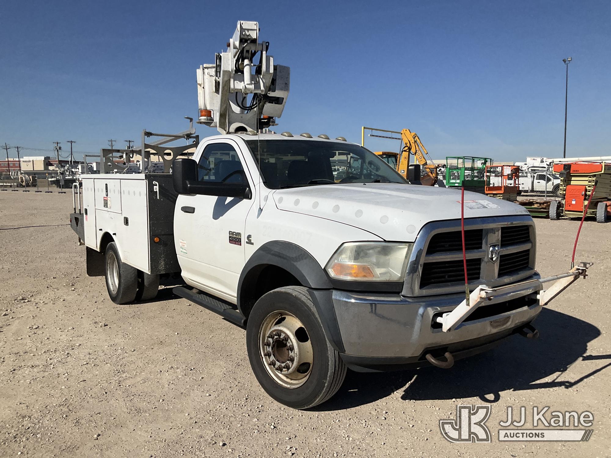 Altec AT200A, 35 ft, Telescopic Non-Insulated Bucket Truck s/n 1210BV6583, with single man bucket, mounted behind cab on 2011 Dodge Ram 4500 Service Truck, 6.7L diesel, RWD, Auto, A/C, (224,605 miles) (Runs, Moves & Upper Operates) (Jump To Start, Check Engine On) (Reads 1,479 hours) This is a Titled Item*
