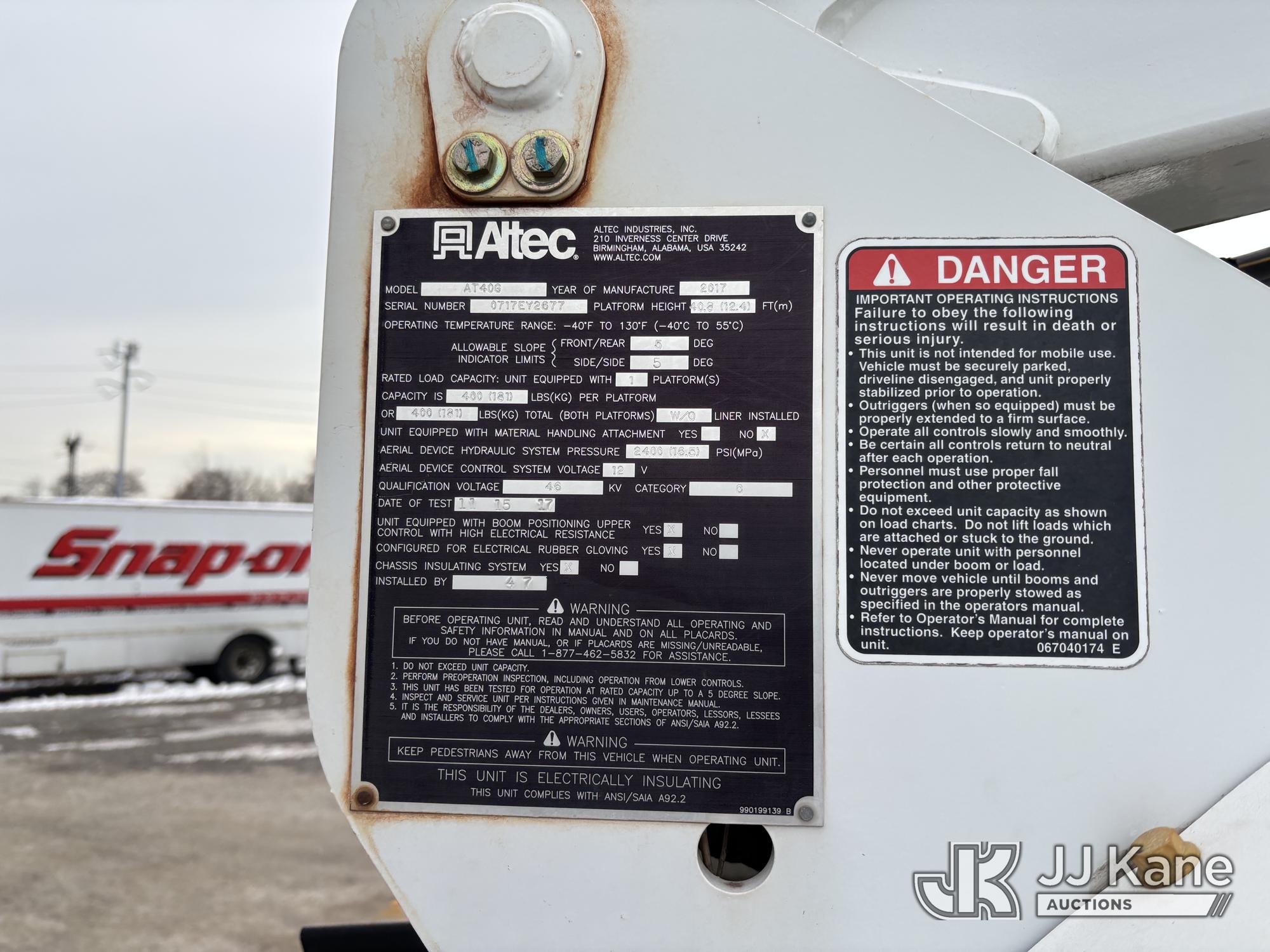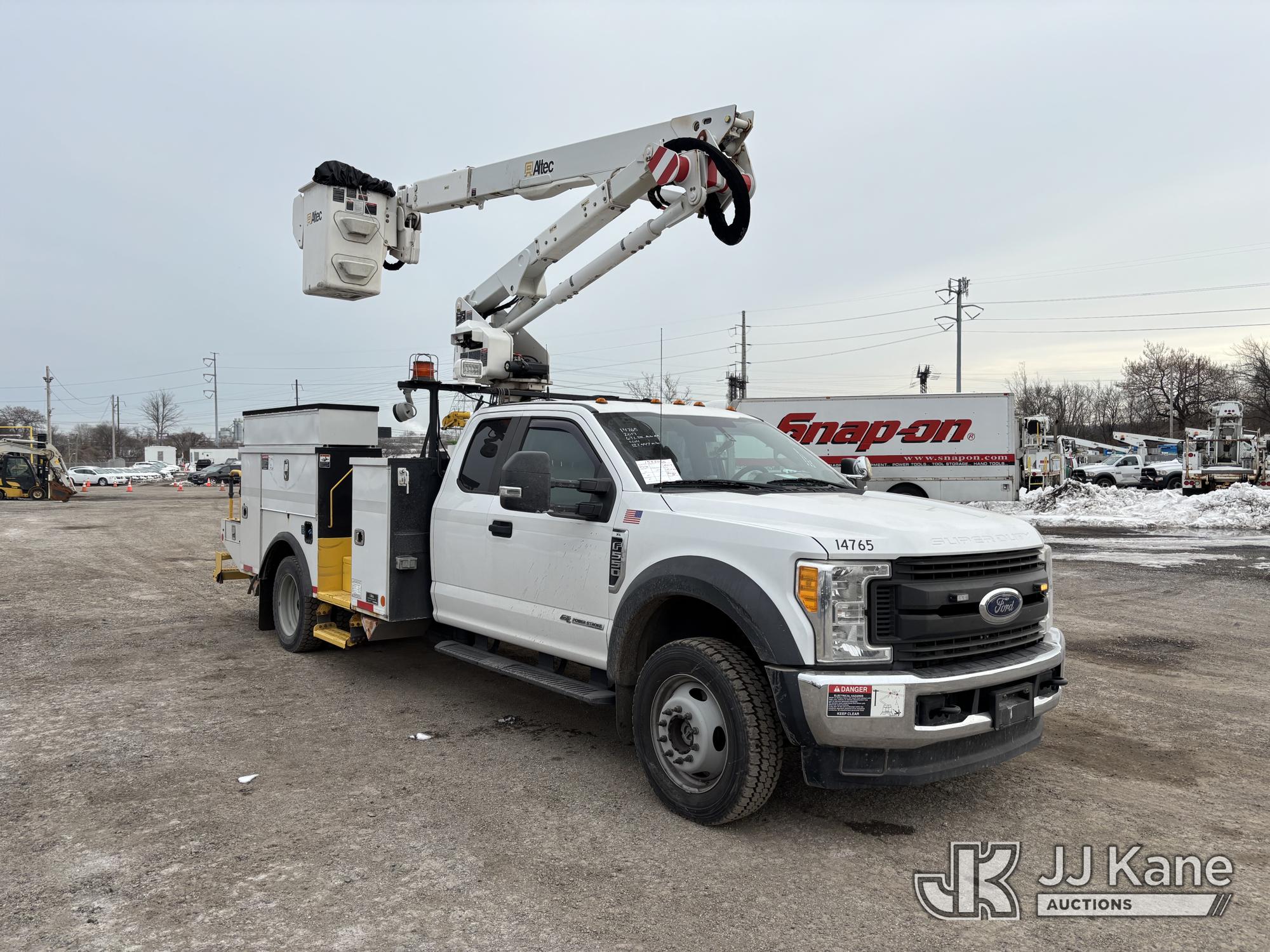 Altec AT40G, 45 ft, Articulating & Telescopic Bucket Truck s/n 0717EY2677, with single-man bucket, mounted behind cab on 2017 Ford F550 4x4 Extended-Cab Service Truck, 6.7L diesel, Auto, A/C, (121,447 miles) (Runs, Moves & Upper Operates, Check Engine Light On, Rust Damage) This is a Titled Item*