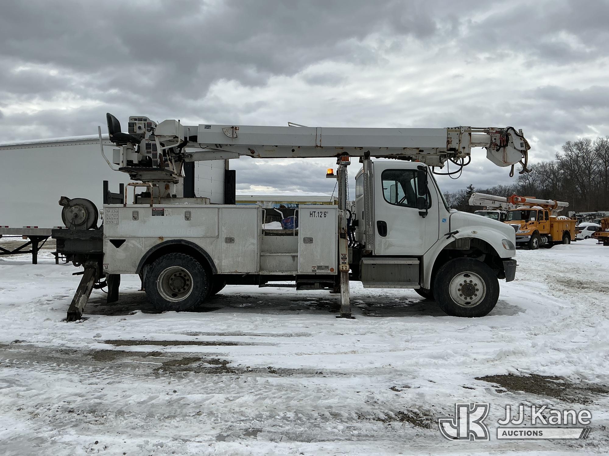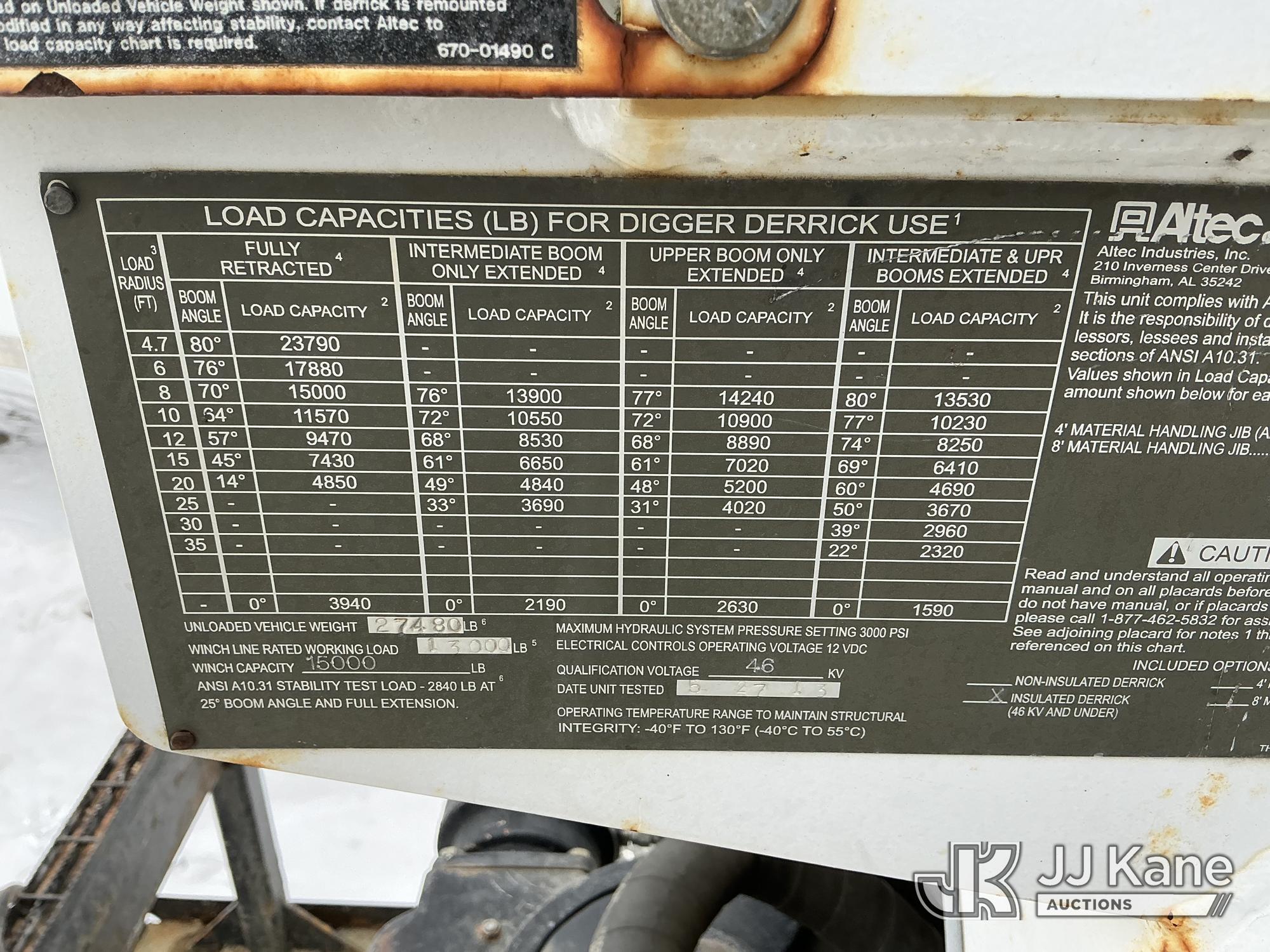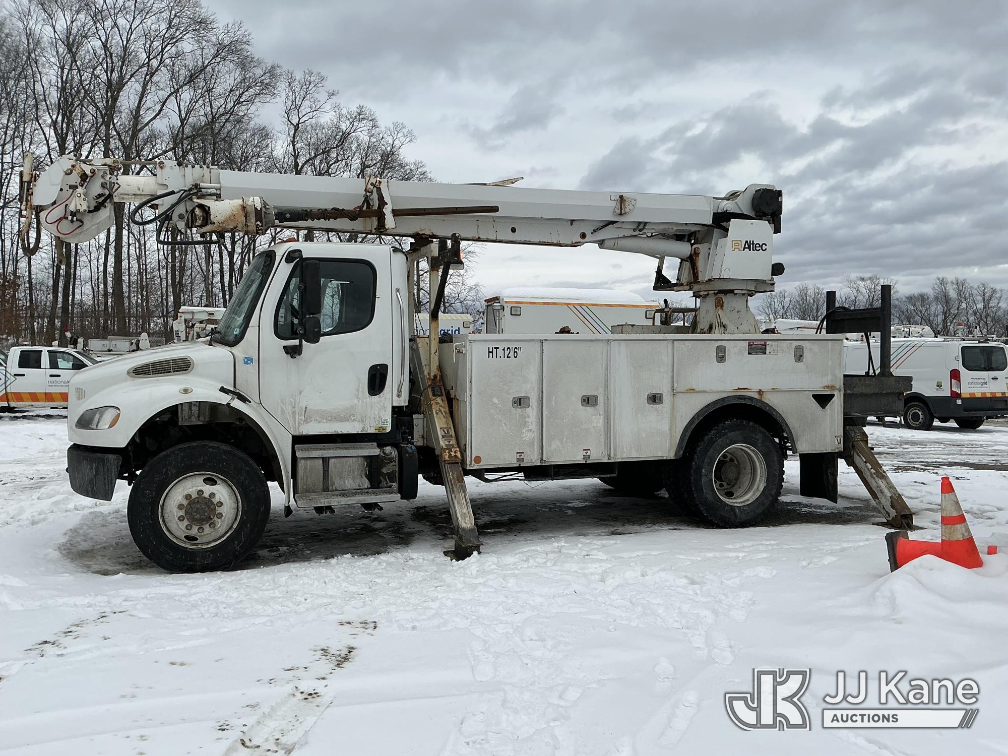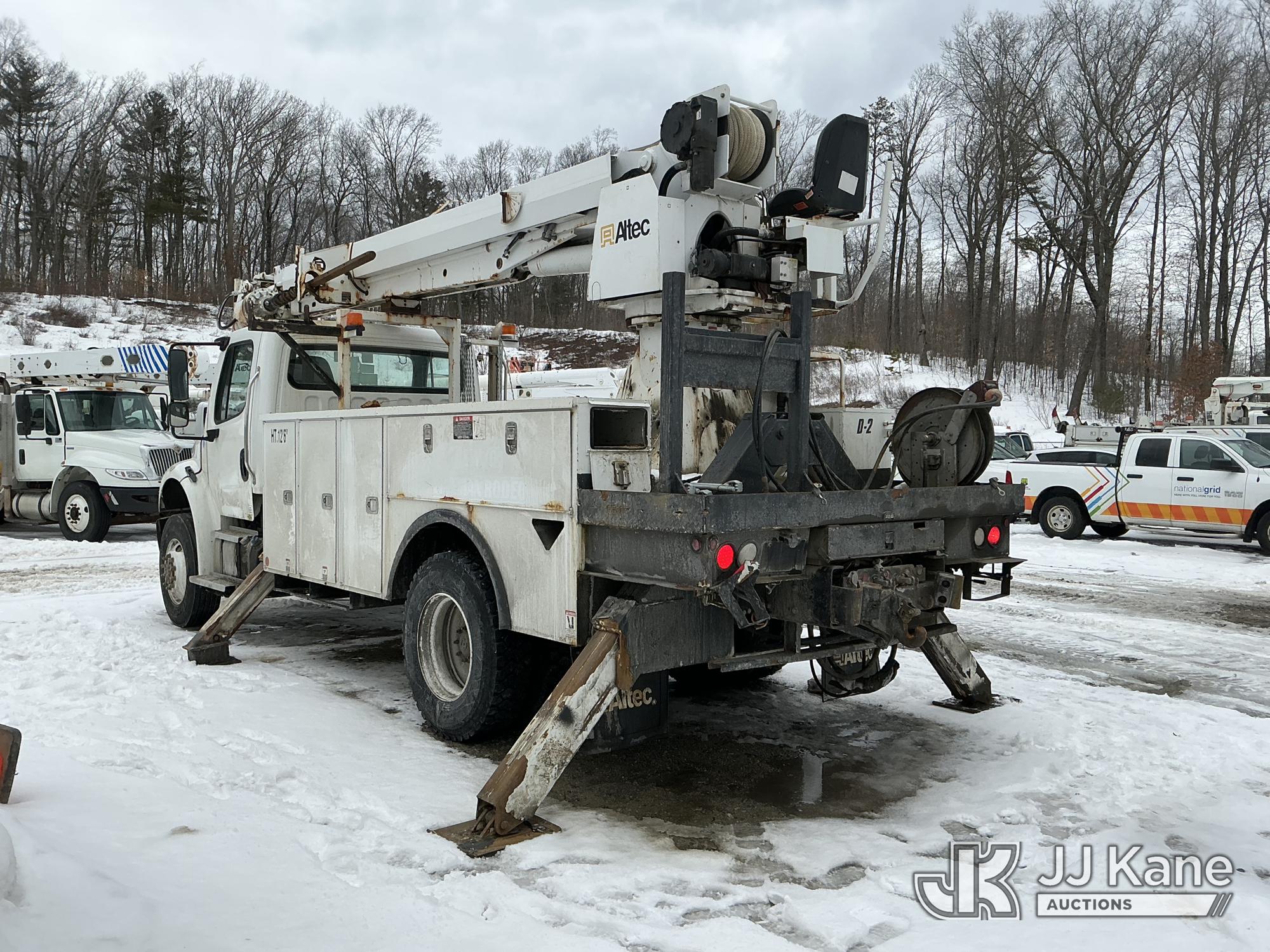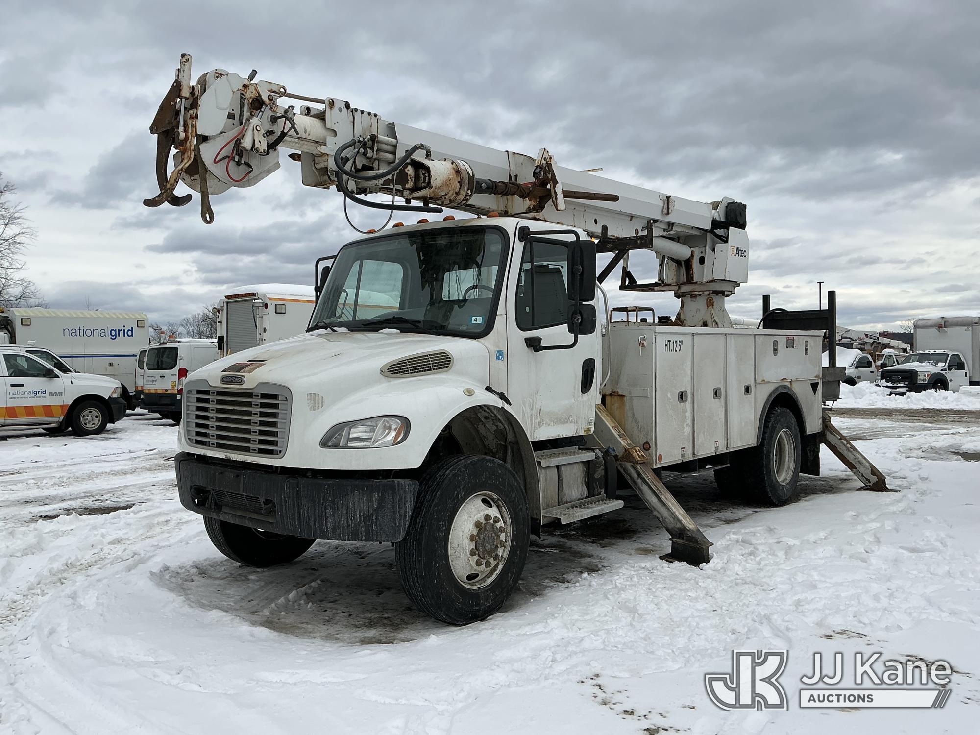 Altec DC47-TR, 23,790 Lb Digger Derrick s/n 0513EU0705, with 47 ft sheave height, 3-section hyd boom, 2 spd digger, heel winch, pole grabs, riding console & 4 hyd outriggers, rear mounted on 2014 Freightliner M2 106 4x4 Utility Truck, Cummins 6.7L diesel, Auto, A/C, (134,396 miles) (Runs & Outriggers Operates) (Does Not Move, No Response From Upper Controls, Upper Condition Unknown, Brake Air Leak, ABS Light On, Must Tow, Seller States: Rear End Issues) (Reads 9,239 hours) This is a Titled Item*