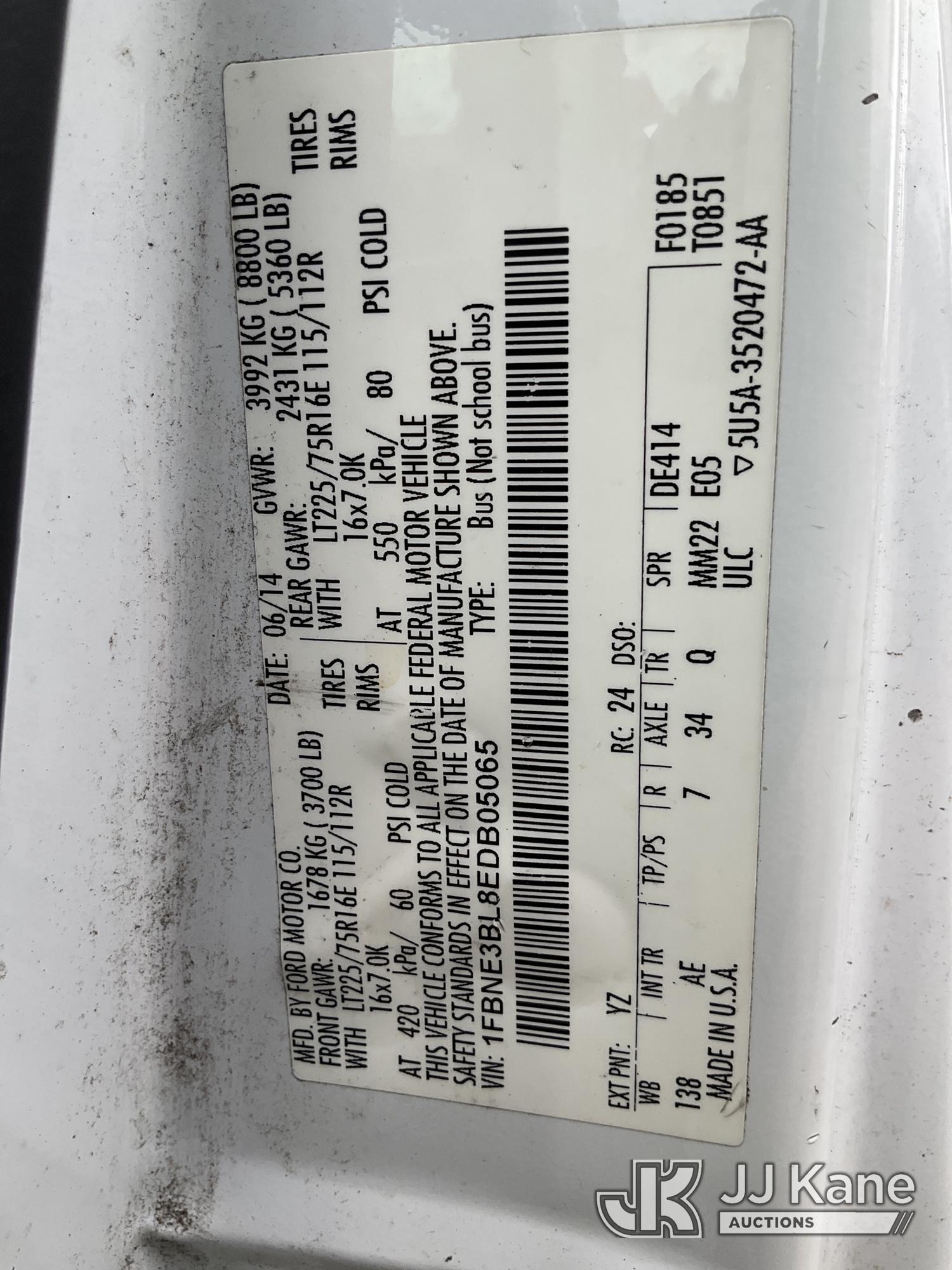 2014 Ford E350 Passenger Van, 8-cyl gas, RWD, Auto, A/C, (71,598 miles) (Runs & Moves) (Check Engine Light On, Body/Paint Damage) This is a Titled Item*