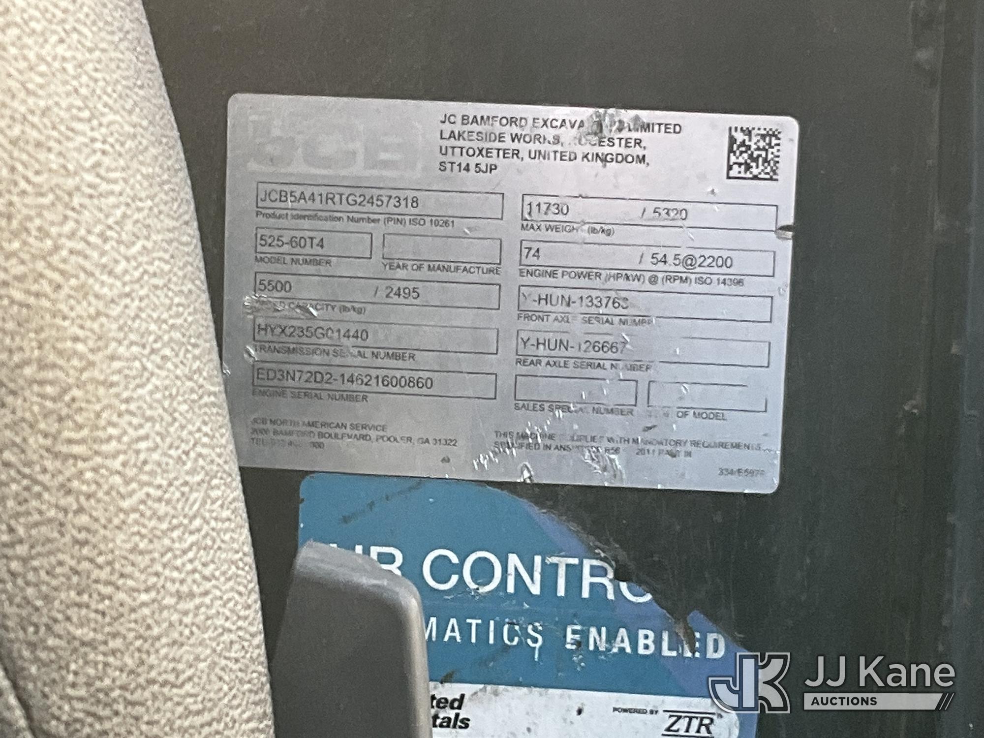 2017 JCB 525-60T4 Rough Terrain Telescopic Forklift, s/n 2457318, Kohler diesel, Shuttle, with 5,500 lb. lift capacity & EROPS w/A/C, (Not Running, Condition Unknown, Jump To Crank) (Seller States: Bad Transmission) (Reads 2,070 hours)*