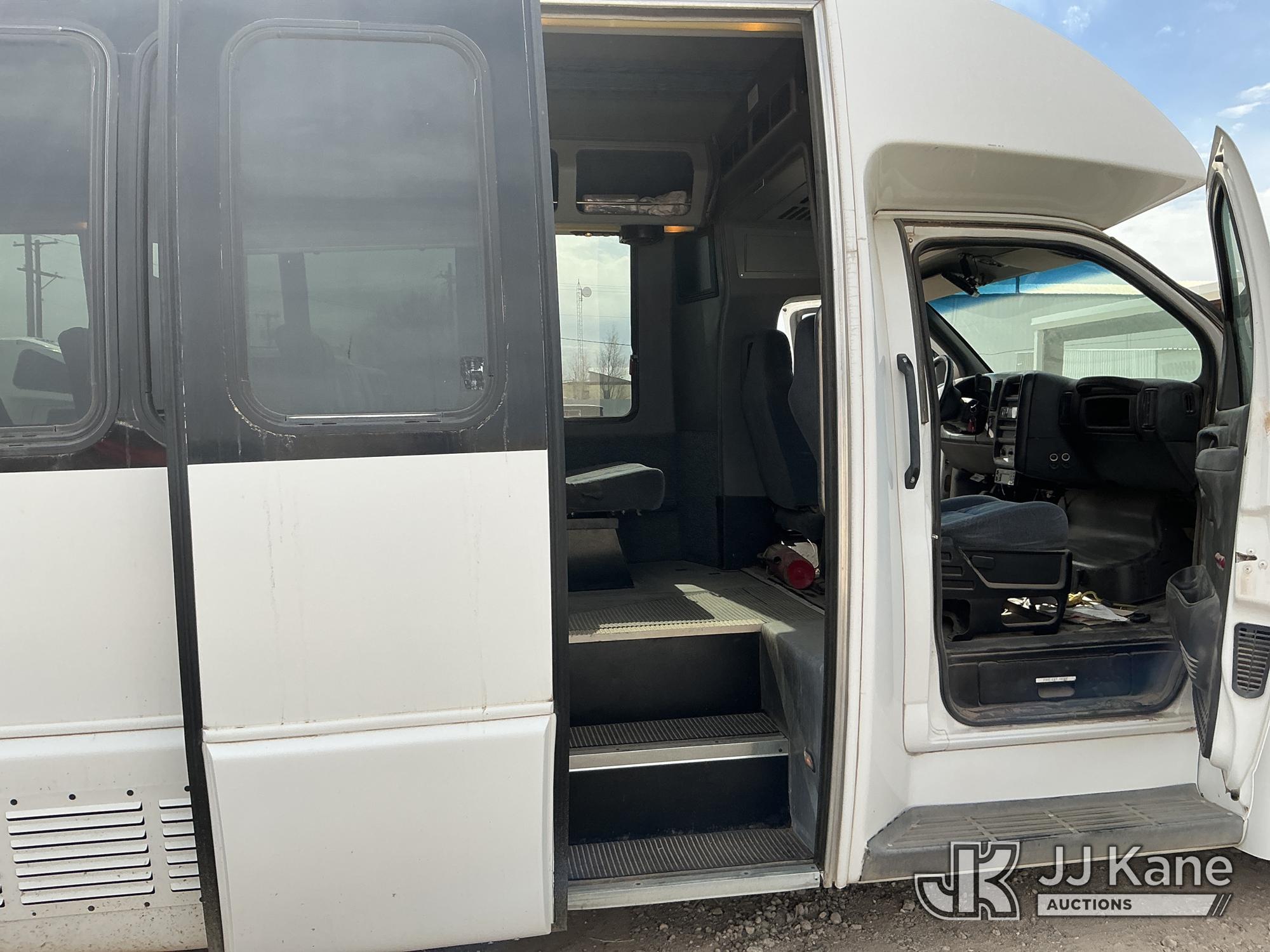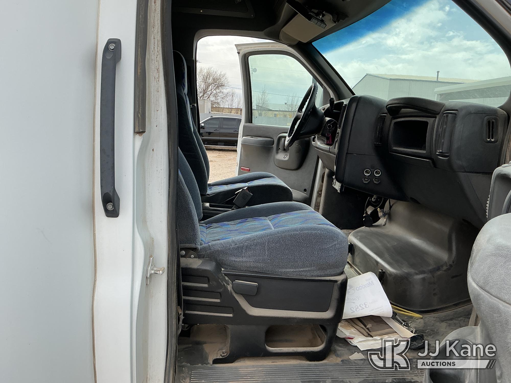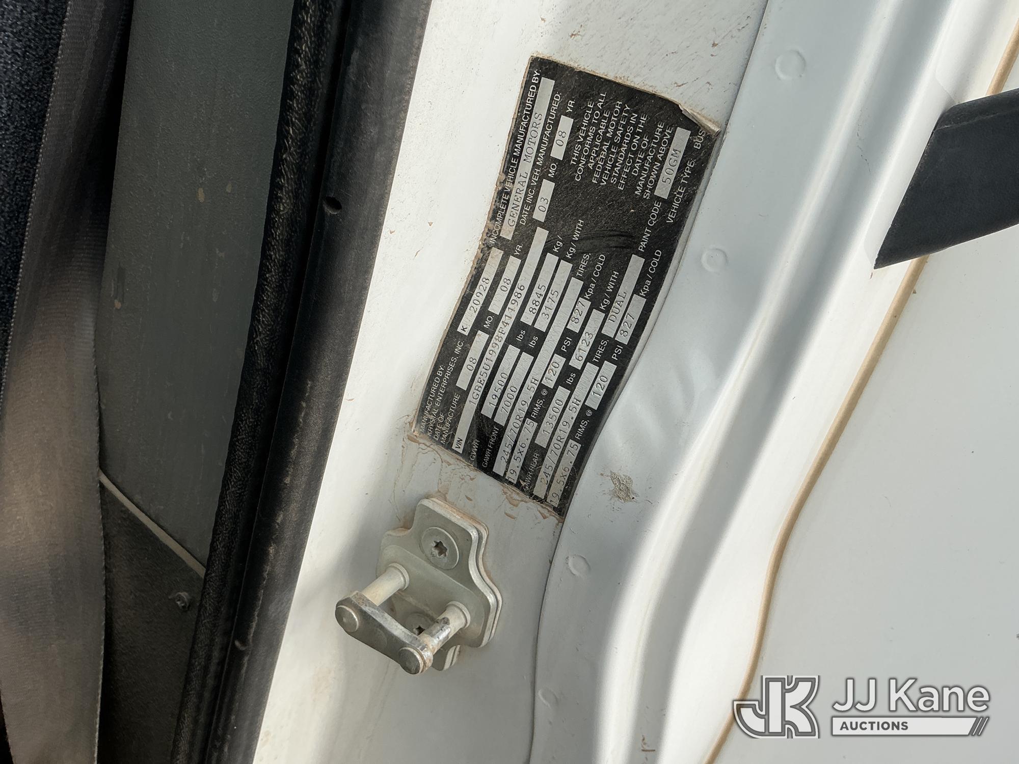 2008 Chevrolet C5U042 Bus, 4X2, diesel, Auto, A/C, with 32-person capacity., (191,201 miles) (Runs & Moves)(Jump To Start, Check Engine Light Is On, Transmission Light Is On, ABS Light Is On, Front Left Tire Is Flat, Body Has Scratches All Around, Right Rear Tail Light Is Damaged, Driver Side Mirror Assembly Is Damaged ) This is a Titled Item*