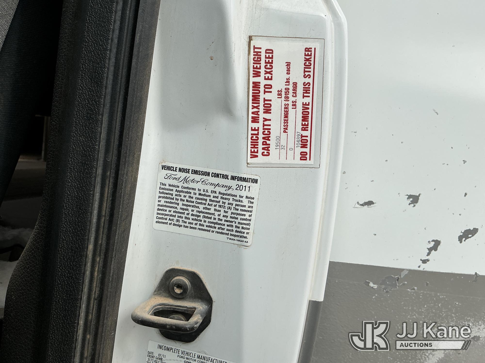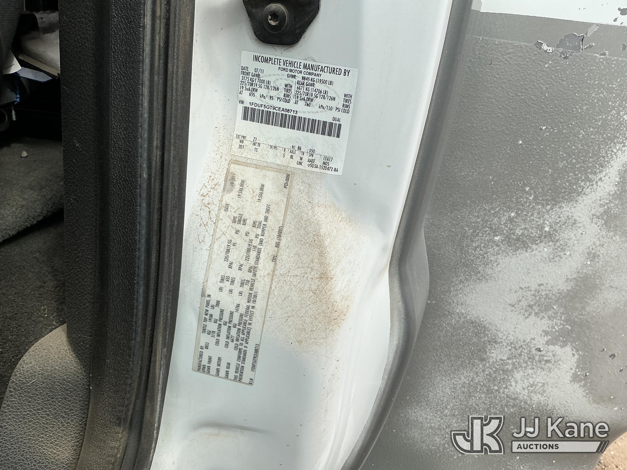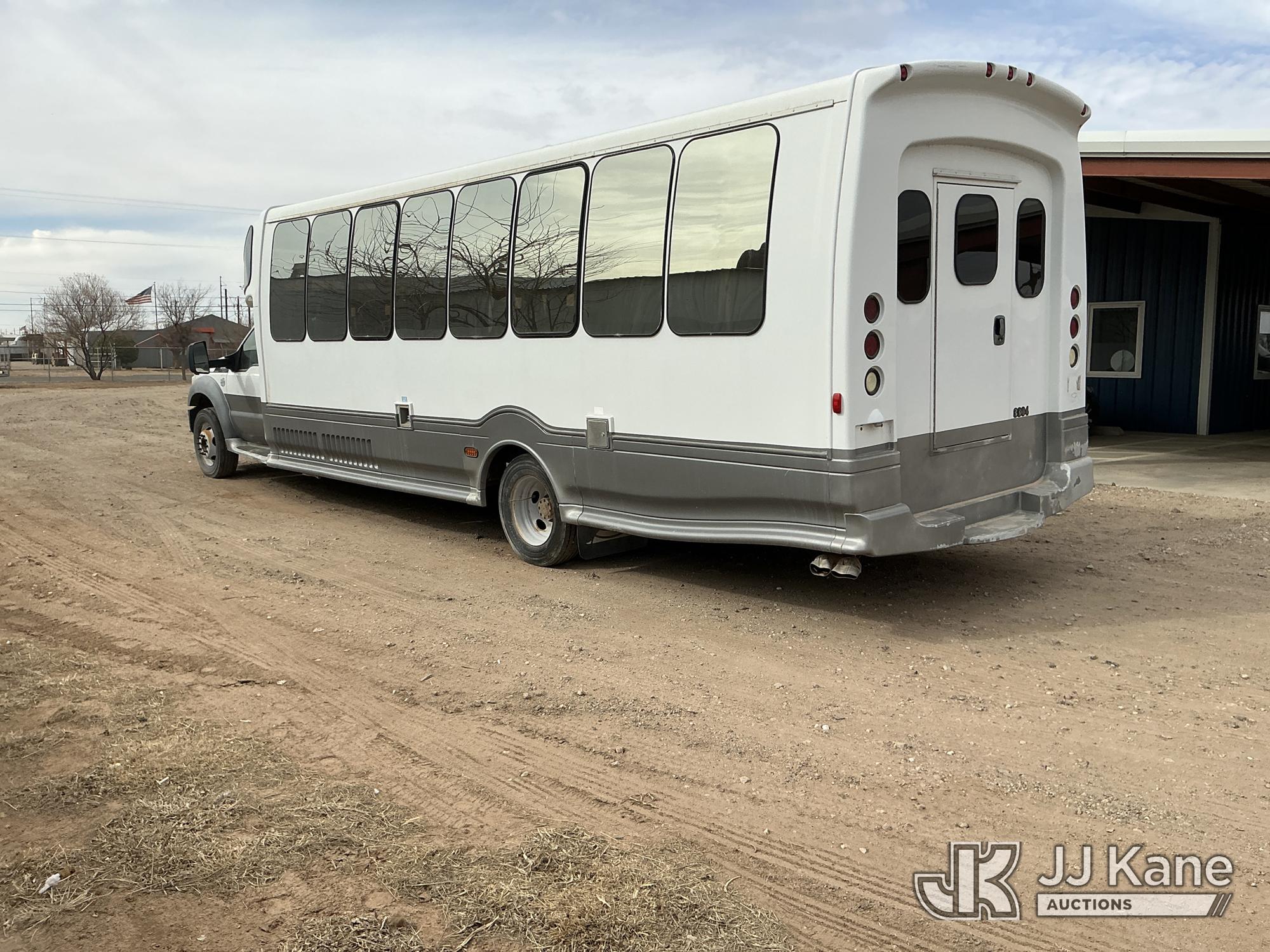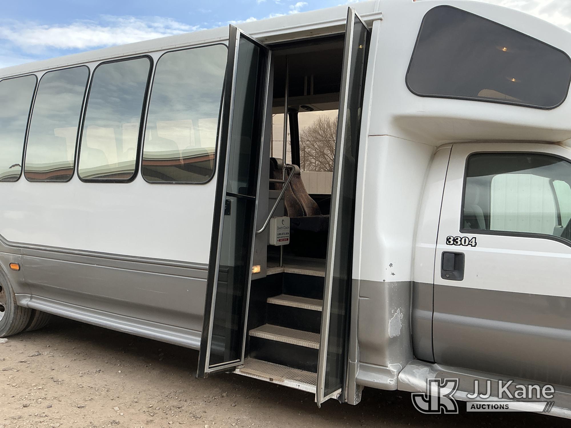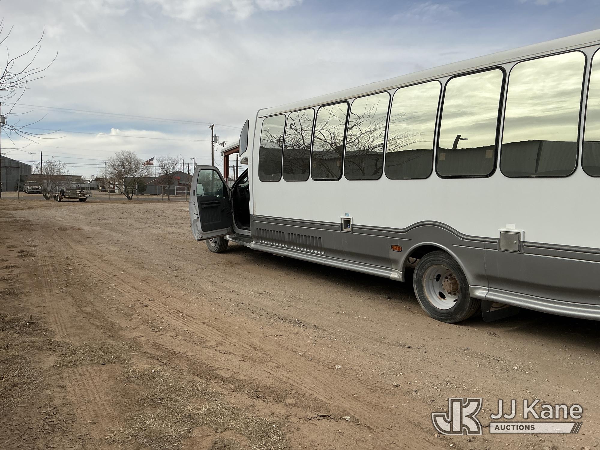 2012 Ford F-550 Regular Cab DRW 2WD Bus, 6.7L V8 OHV 16V DIESEL RWD, Auto, A/C, with 33 Person capacity, (202,652 miles) (Runs & Moves)(Jump To Start, Check Engine Light Is On, Windshield Cracked, Body Damage Scratches Paint Peeling And Other Damage At Right Rear, And The Rear Exhaust Pipe Is Damaged ) This is a Titled Item*