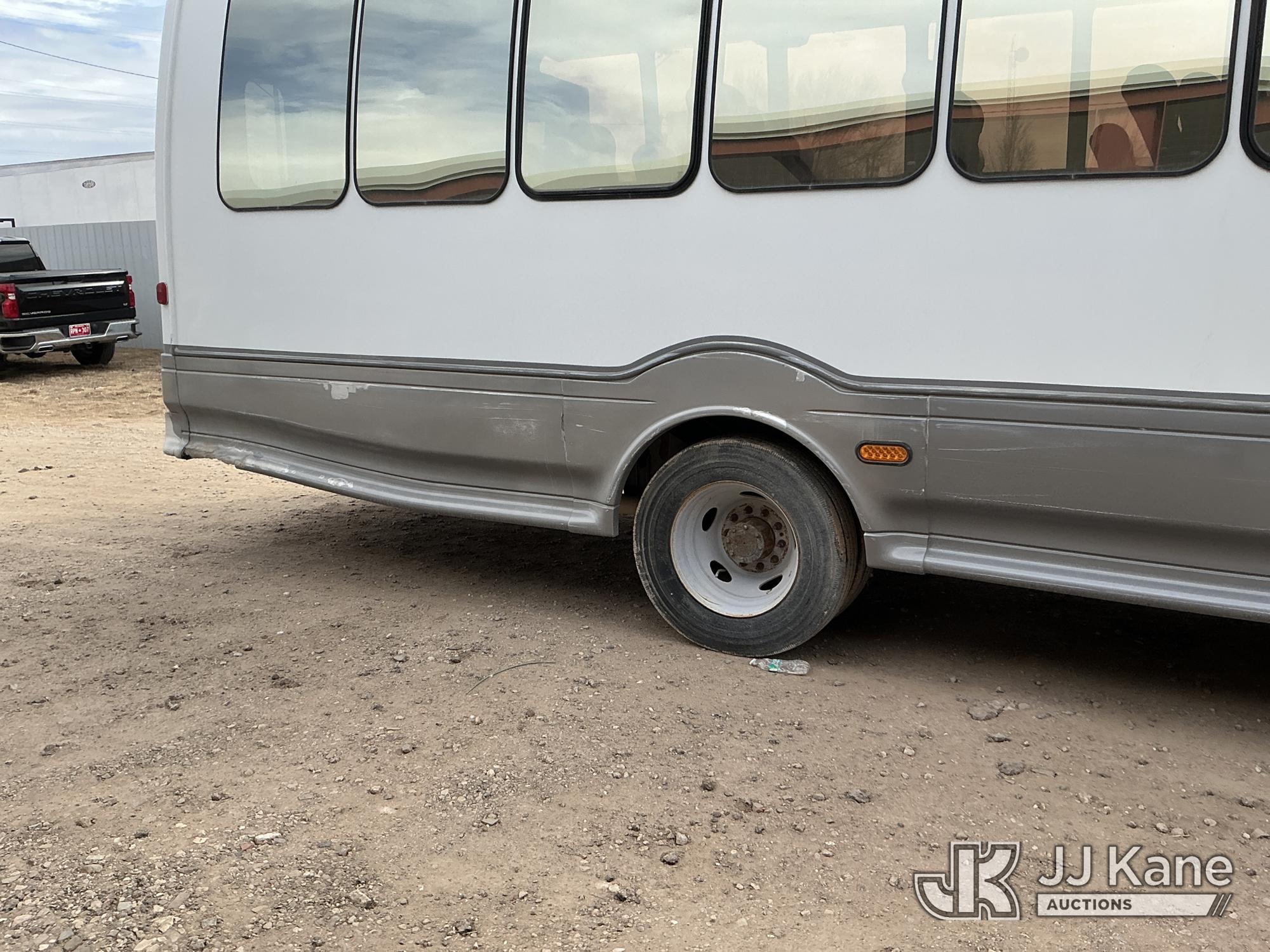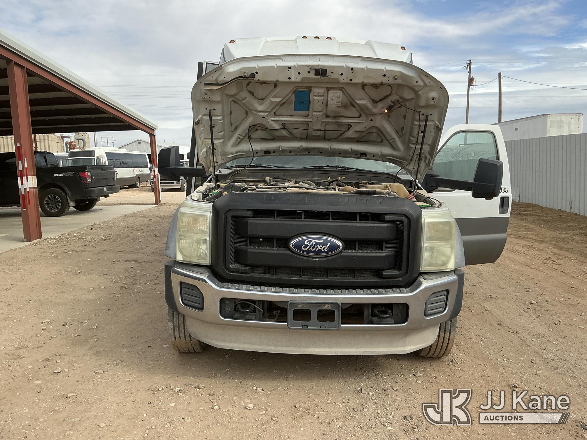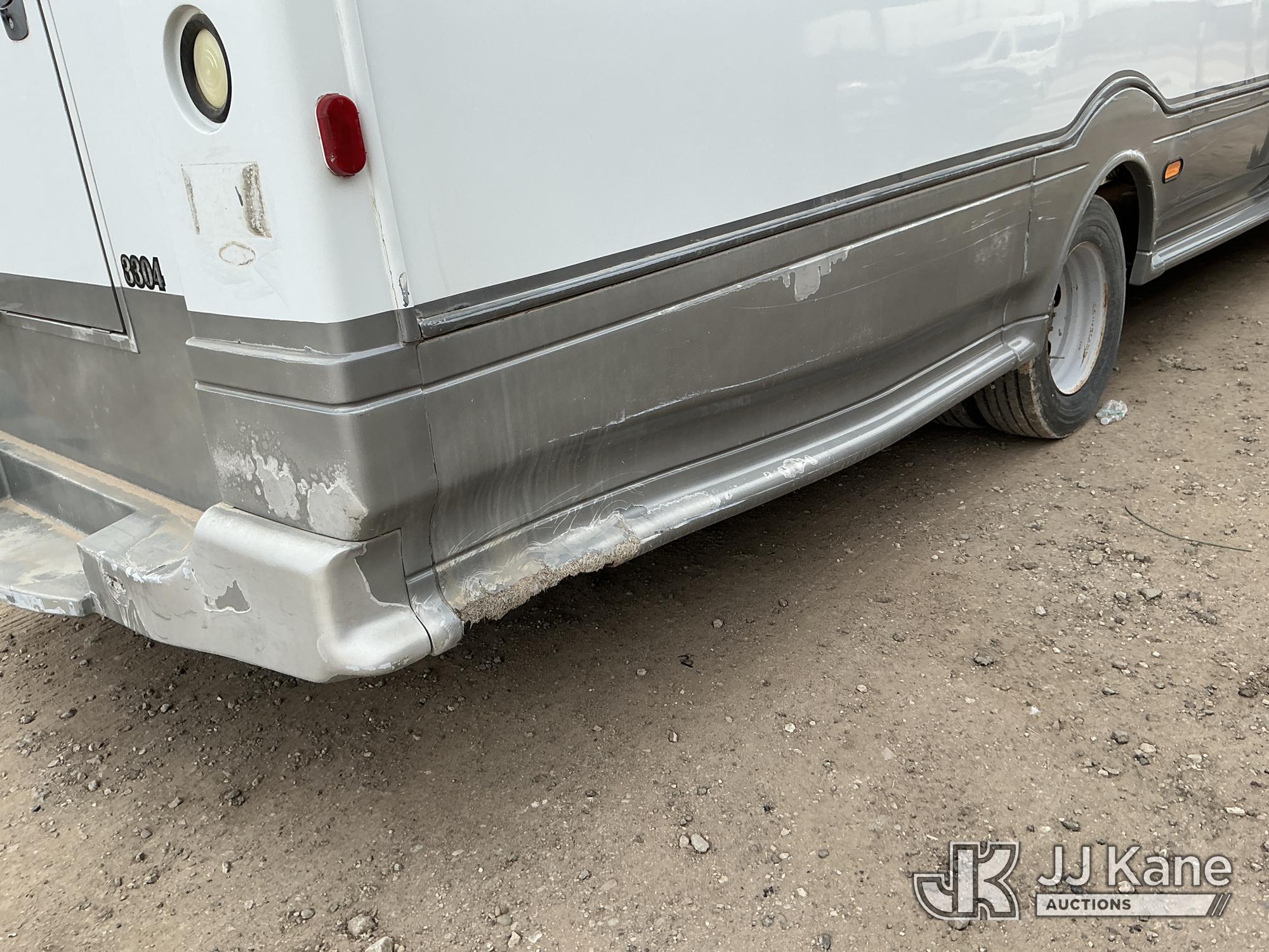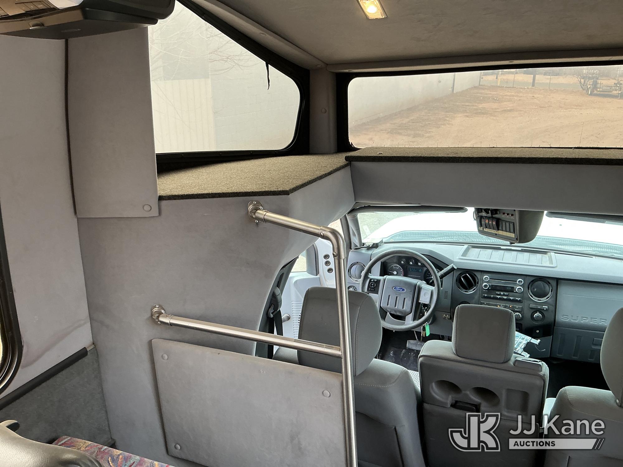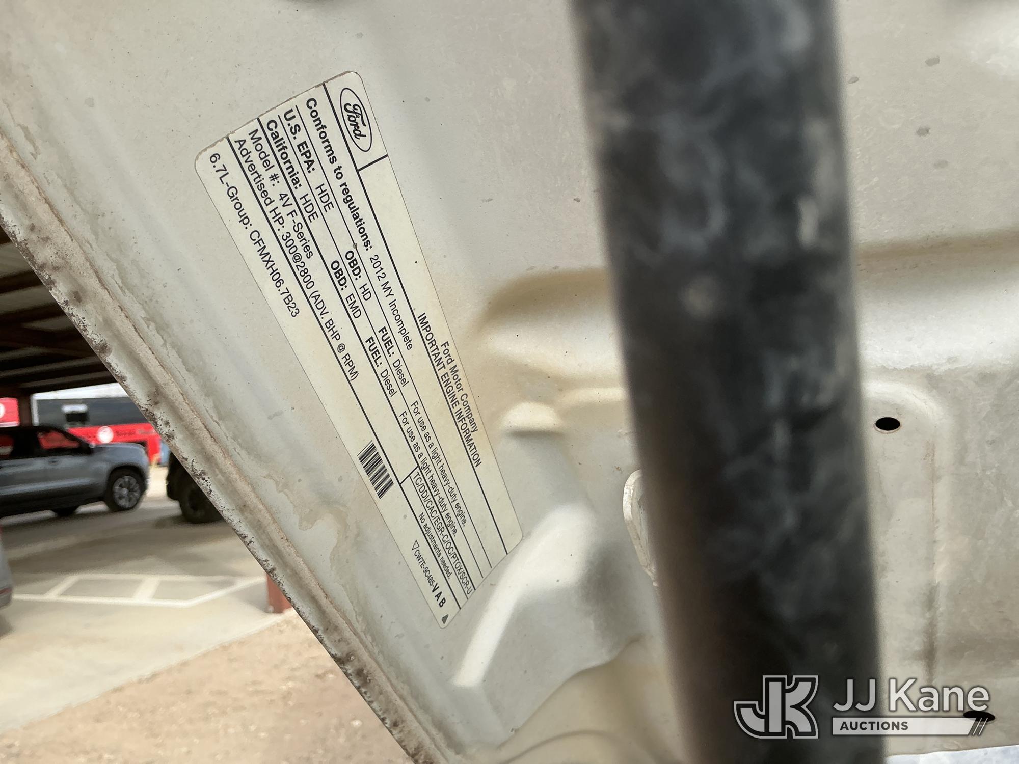 2012 Ford F-550 Regular Cab DRW 2WD Bus, 6.7L V8 OHV 16V DIESEL RWD, Auto, A/C, with 33 Person capacity, (202,652 miles) (Runs & Moves)(Jump To Start, Check Engine Light Is On, Windshield Cracked, Body Damage Scratches Paint Peeling And Other Damage At Right Rear, And The Rear Exhaust Pipe Is Damaged ) This is a Titled Item*