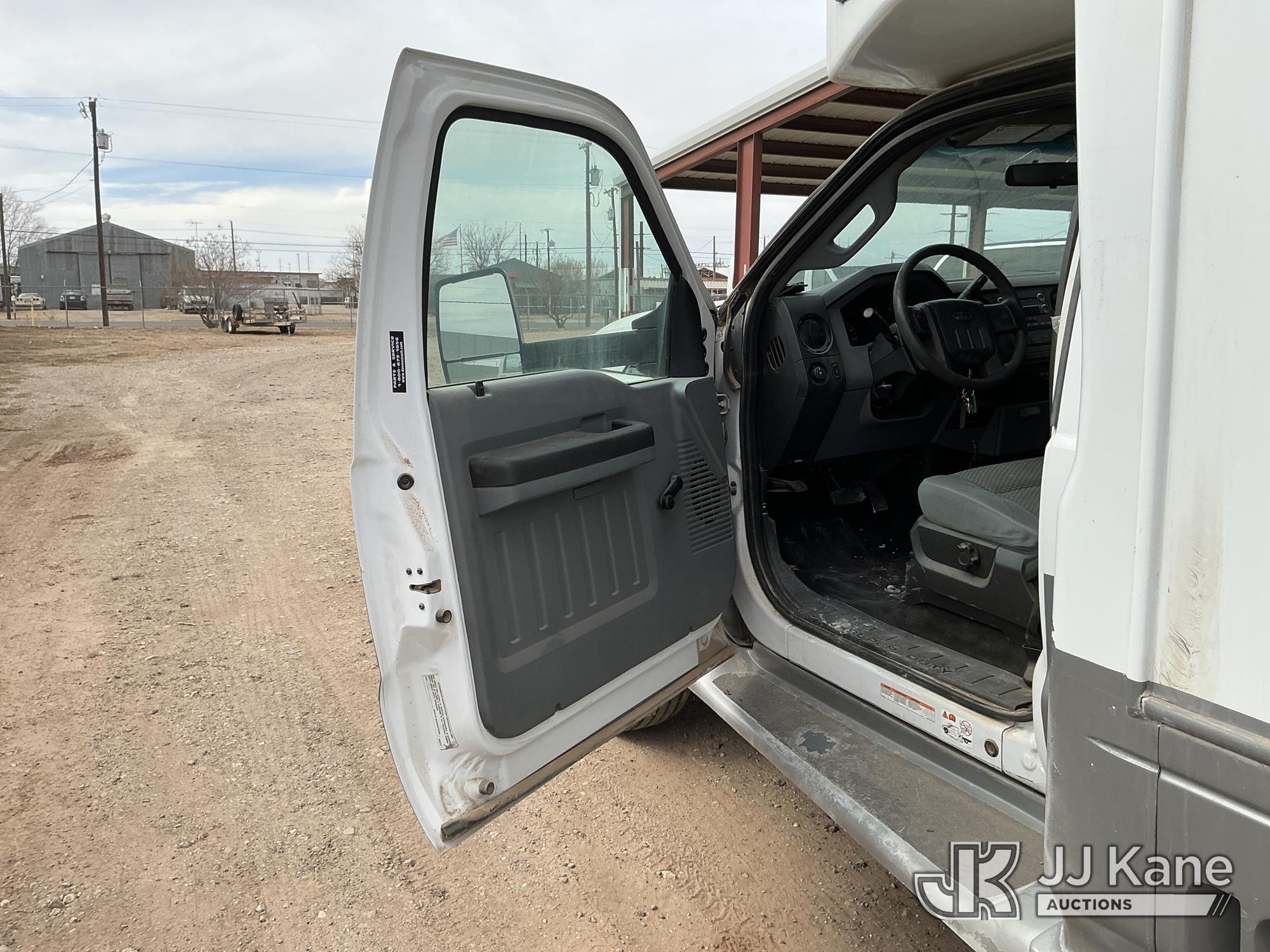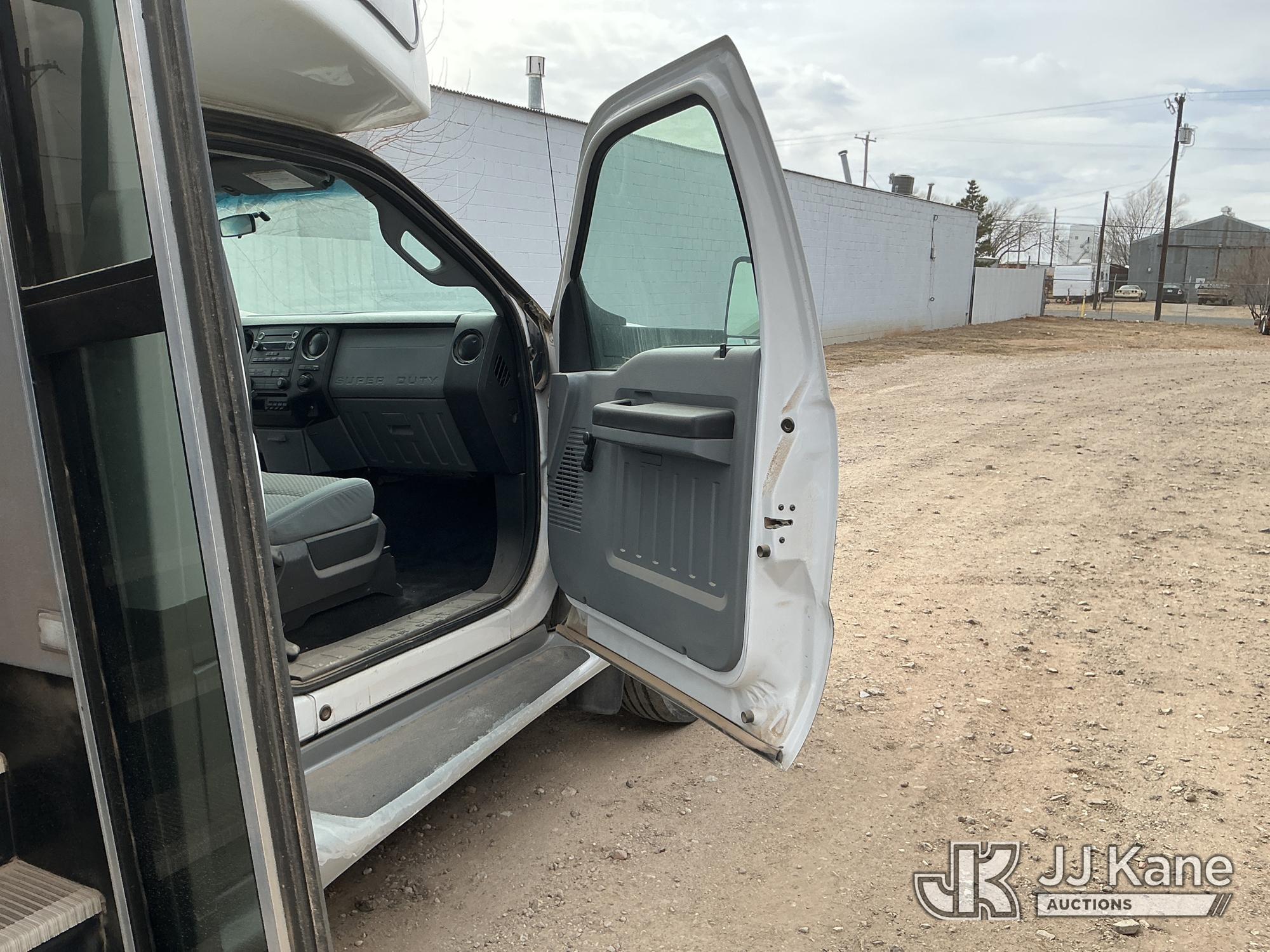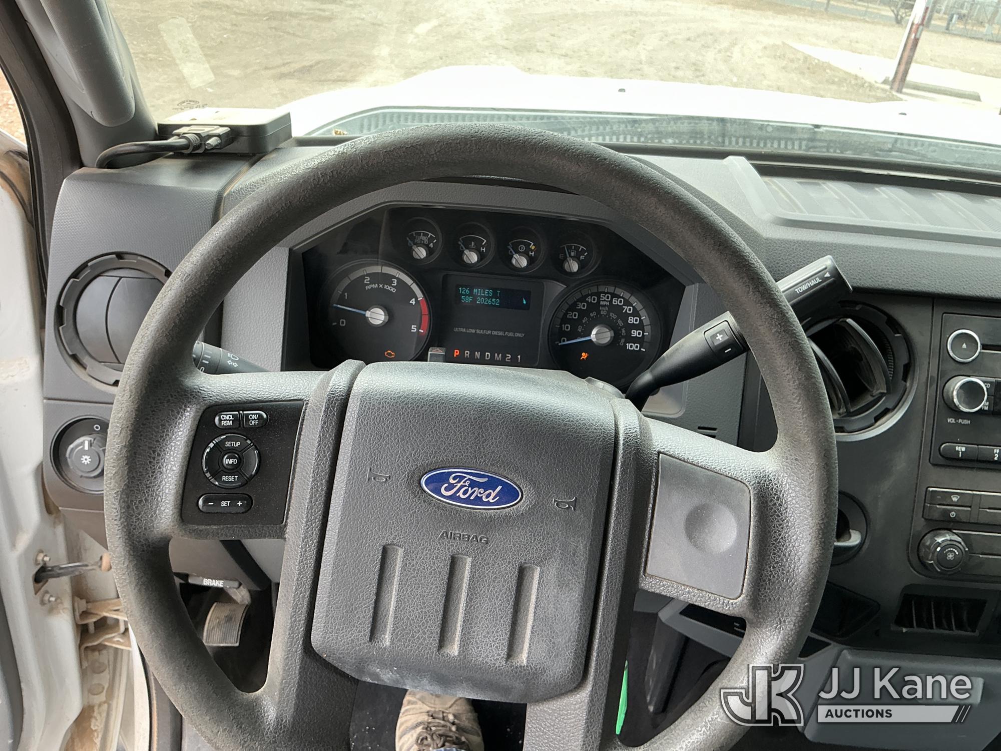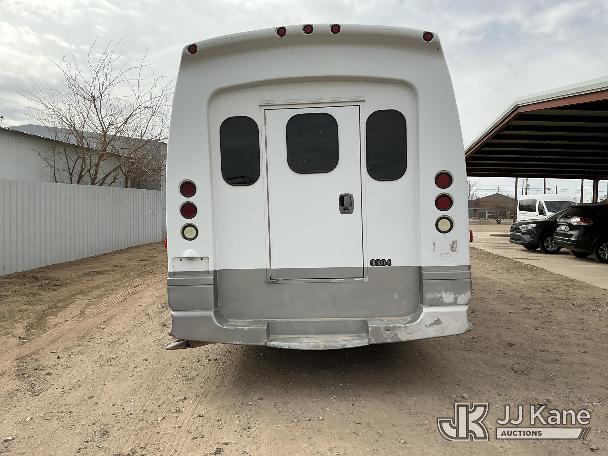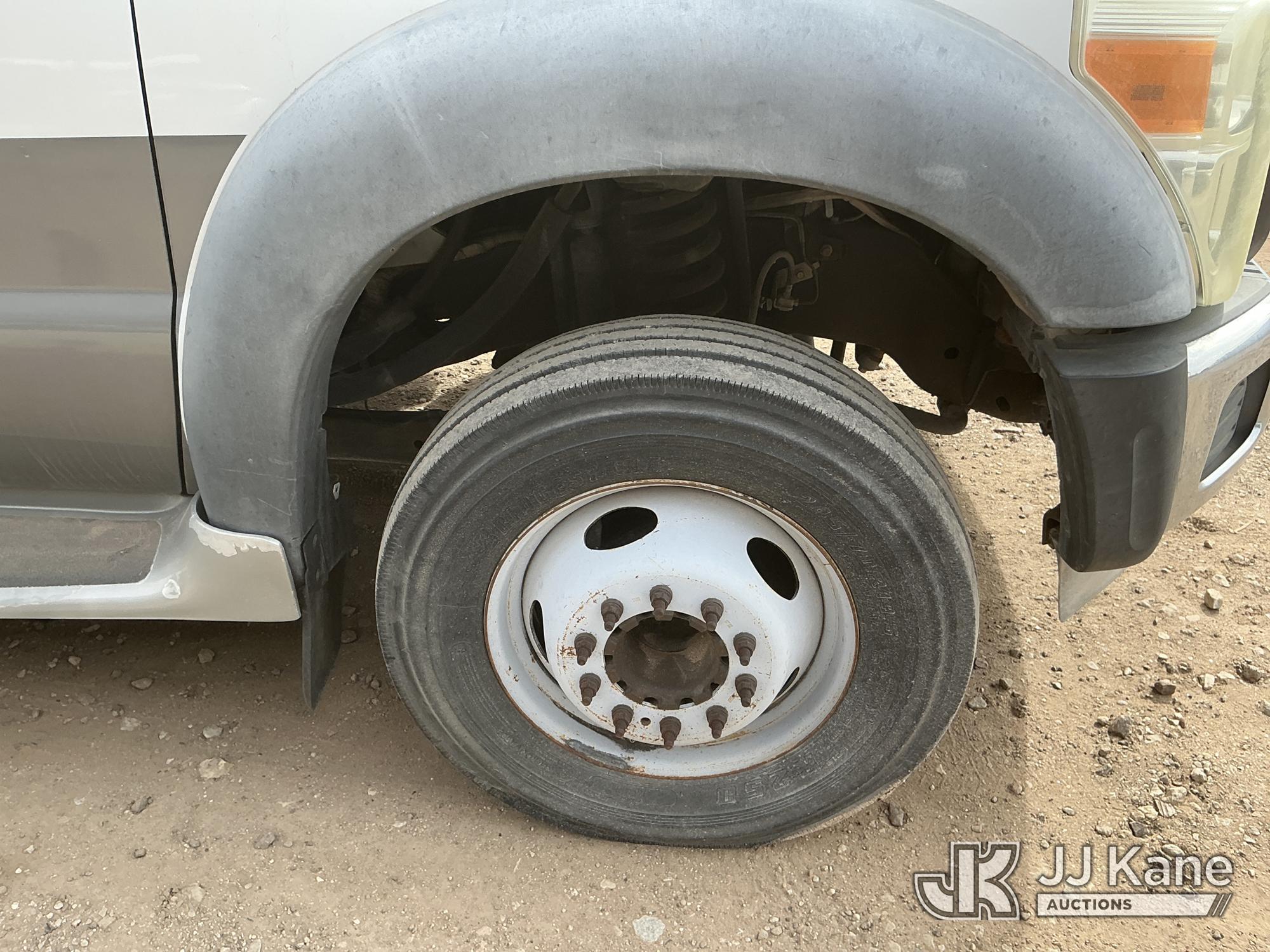 2012 Ford F-550 Regular Cab DRW 2WD Bus, 6.7L V8 OHV 16V DIESEL RWD, Auto, A/C, with 33 Person capacity, (202,652 miles) (Runs & Moves)(Jump To Start, Check Engine Light Is On, Windshield Cracked, Body Damage Scratches Paint Peeling And Other Damage At Right Rear, And The Rear Exhaust Pipe Is Damaged ) This is a Titled Item*