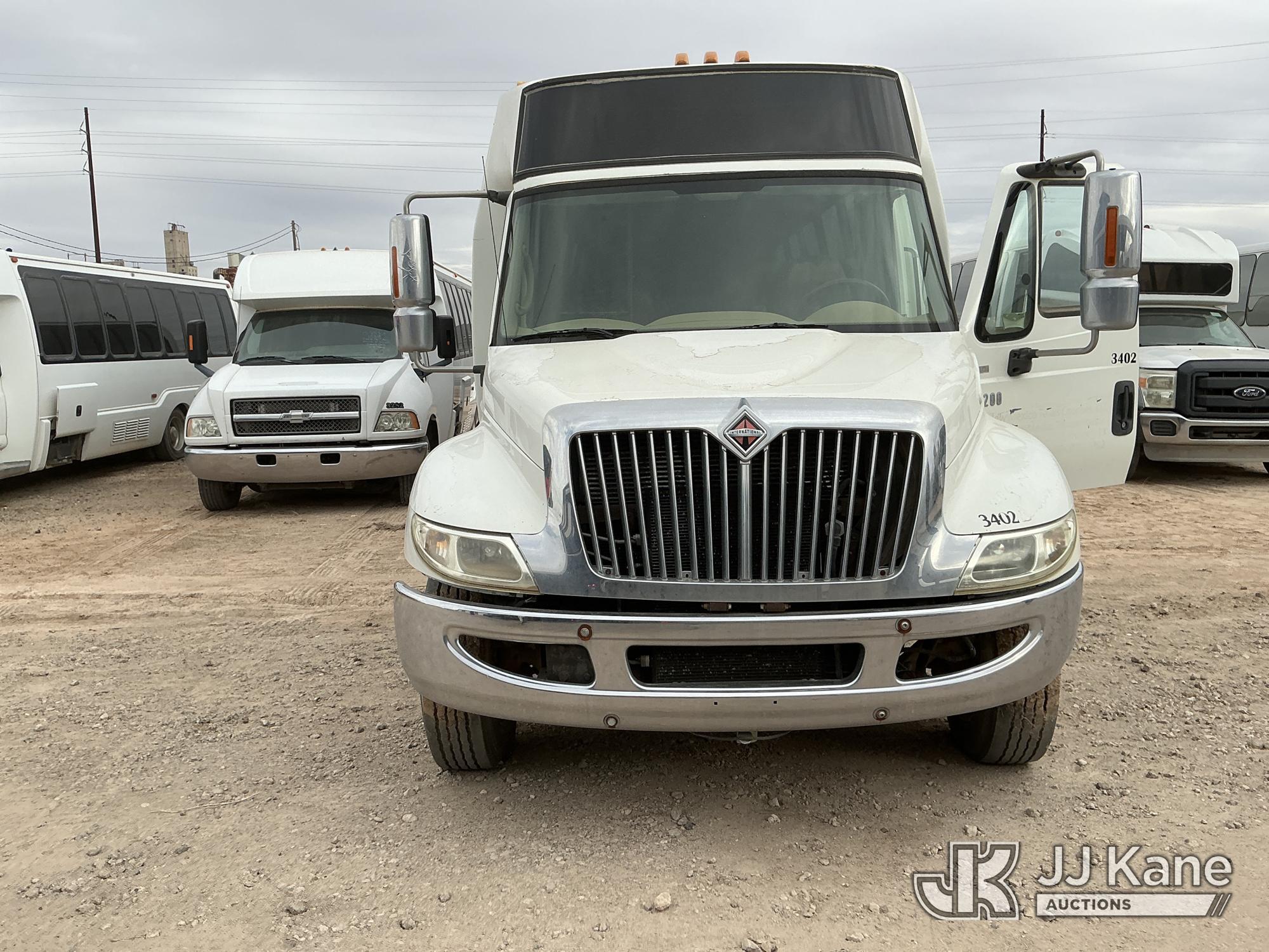 2008 International 3200 Passenger Bus, 7.6L diesel, 4X2, Auto, A/C, (244,407 miles) Krystal 3200 Shuttle. 34 Person Seating Capacity. (Runs & Moves)(Jump To Start, Left Rear Outer Tire Is Flat, Windshield Cracked, Front Bumper Is Bent On The Passenger Side Gap Between Bumper & Headlight Assembly, Body Has Damage All Around Paint Is Chipped & Scratches ) (Reads 7,125 hours) This is a Titled Item*