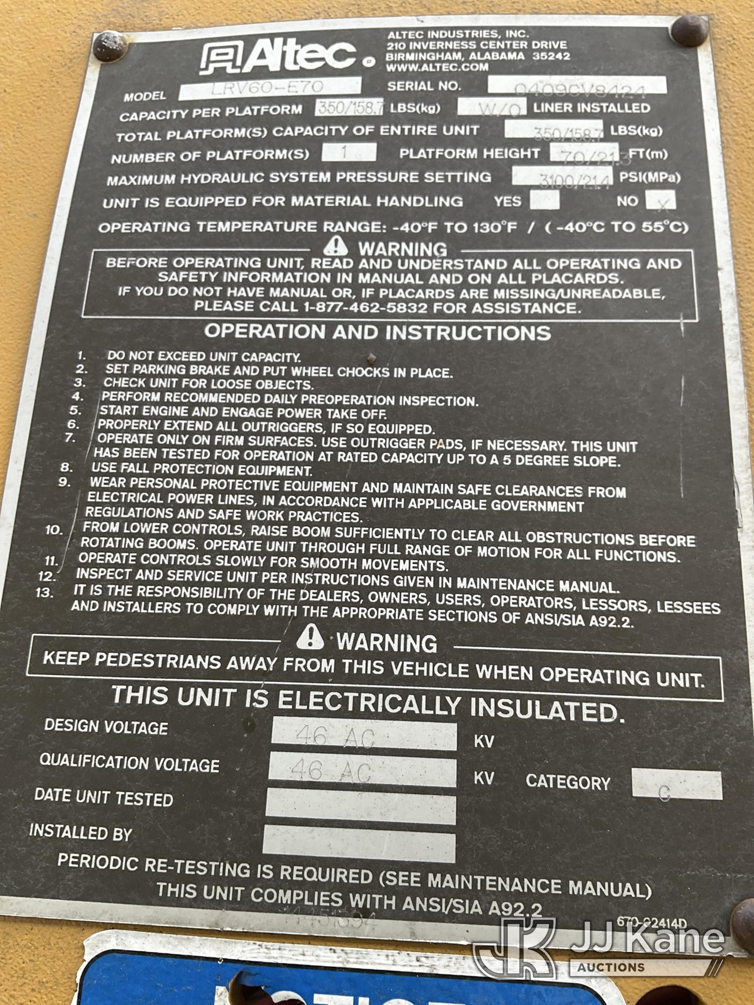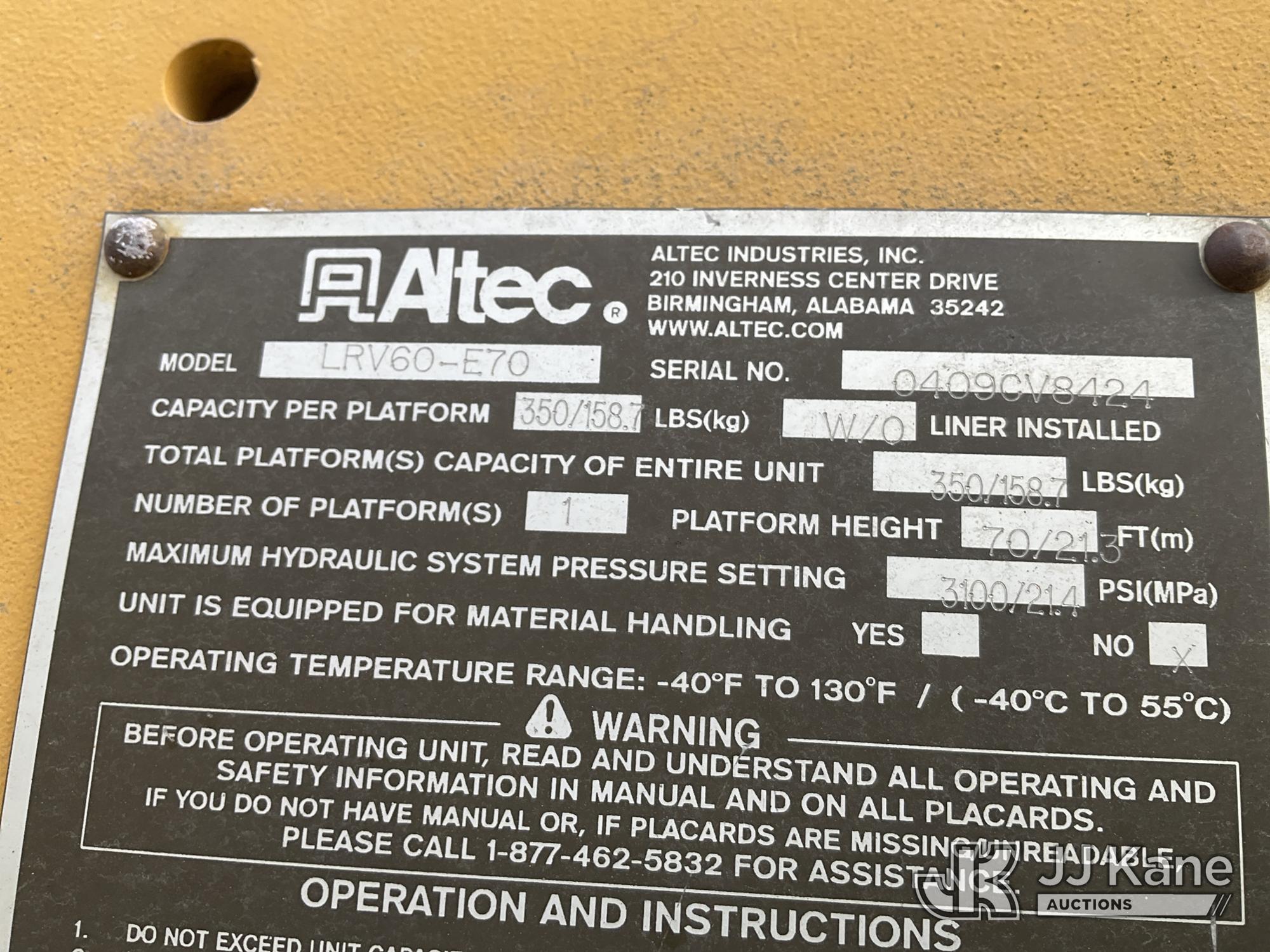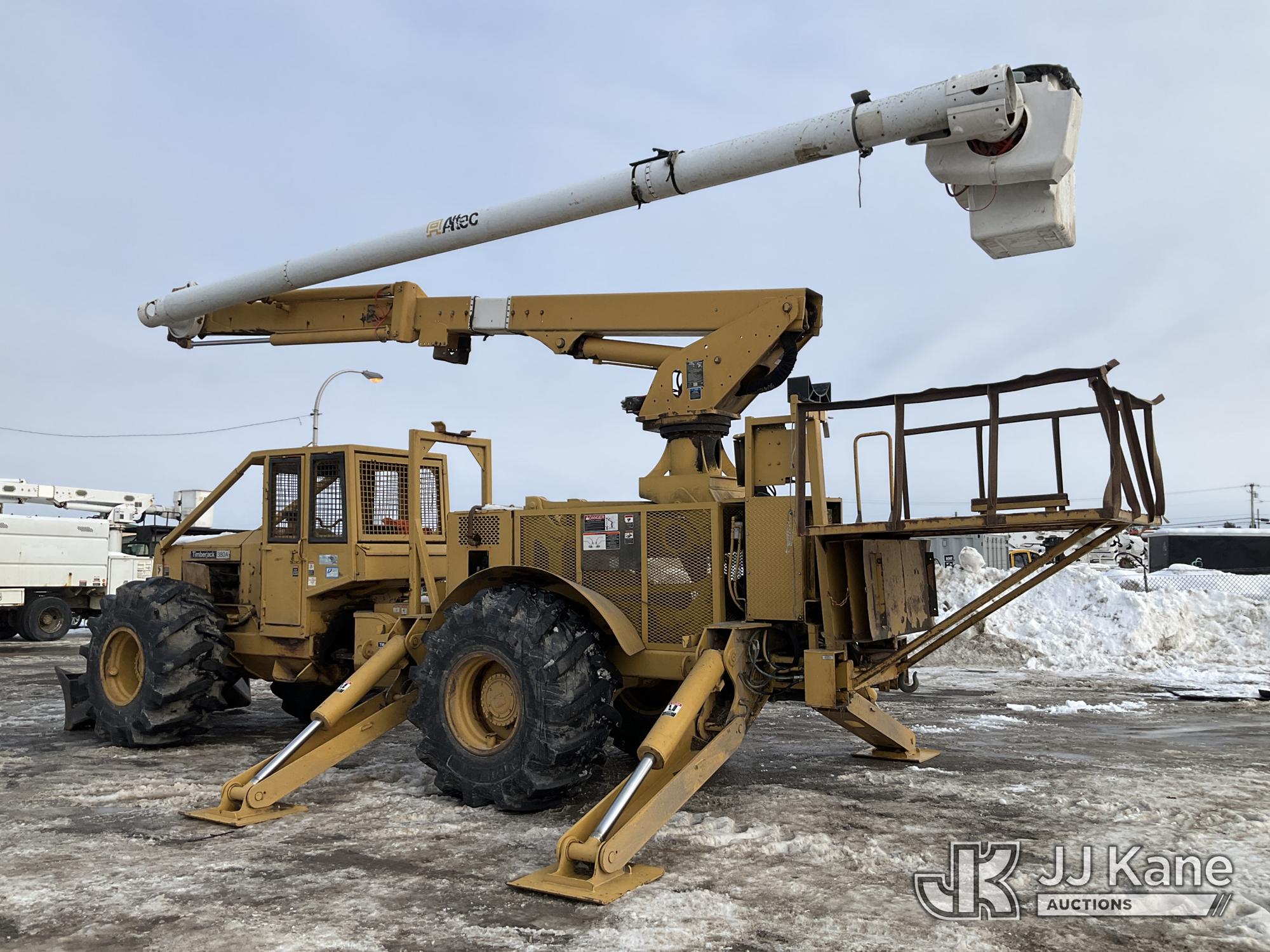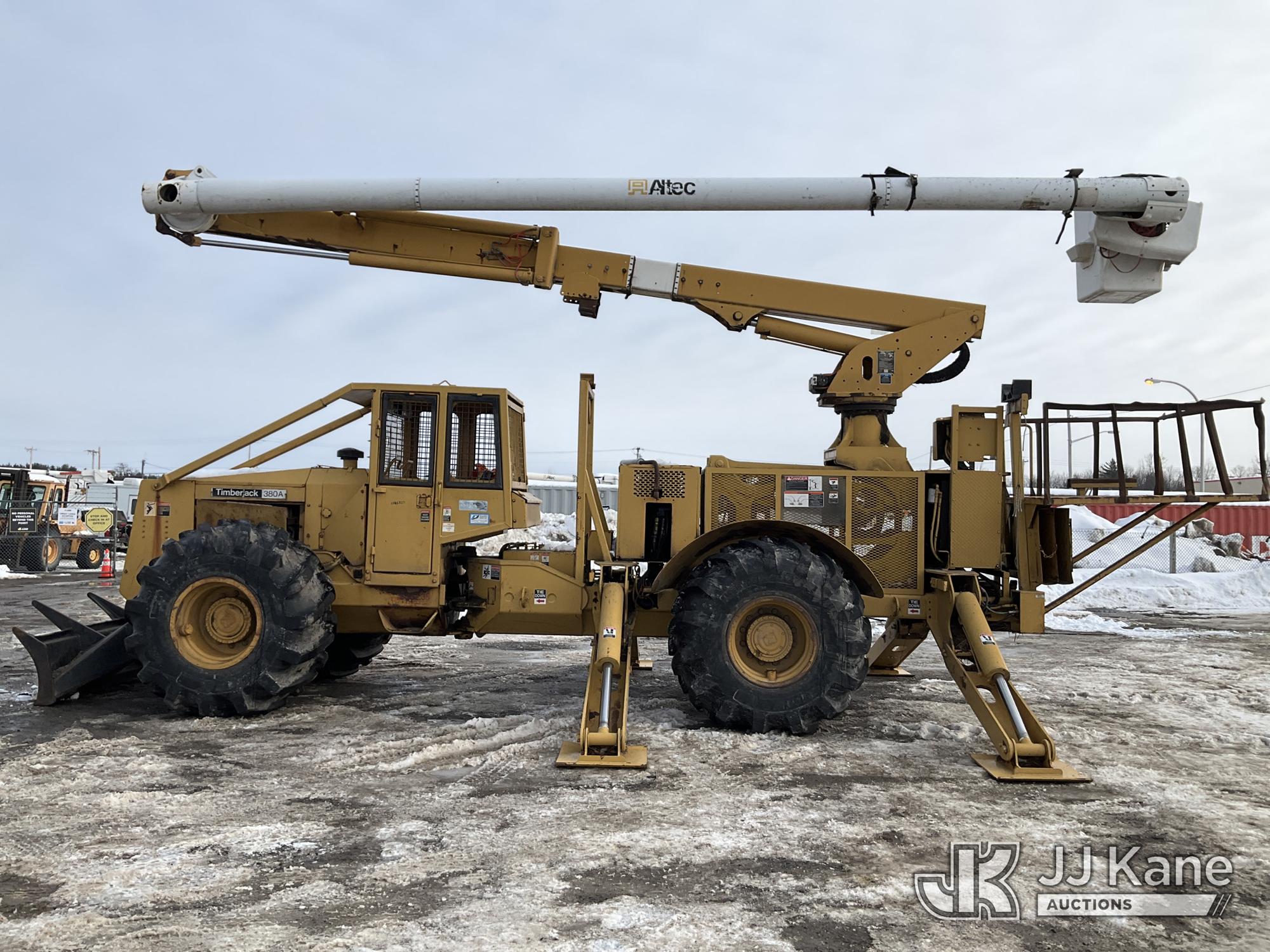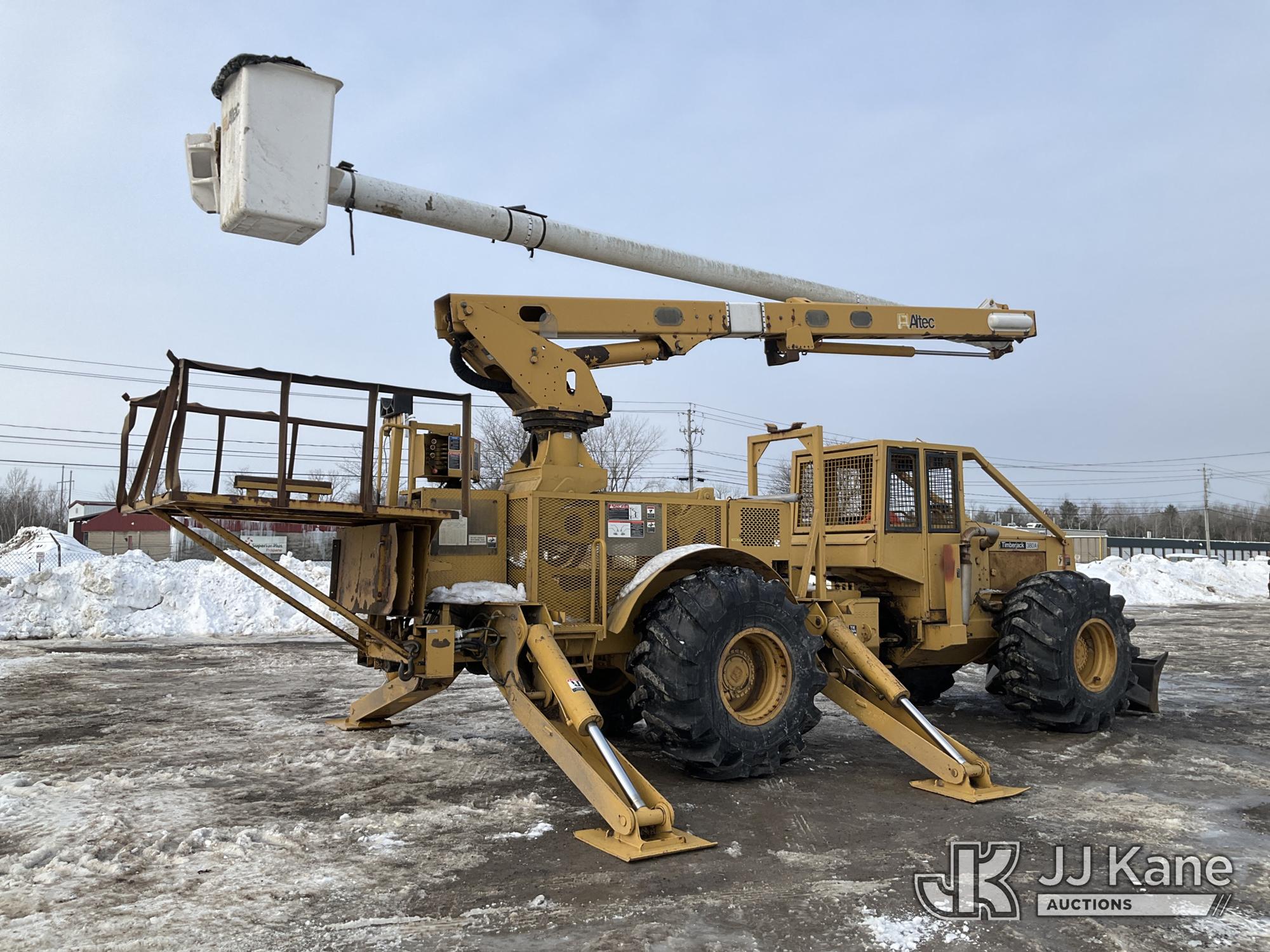 Altec LRV60, 75 ft, Over-Center Elevator Bucket s/n 0409CV8424 (2009), with Single Man Bucket & 4 Outriggers, mounted on 1986 Timberjack 380 s/n 356235, Cummins diesel, direct drive, with Rear winch, Front Push Blade, (Runs, Moves & Operates ) (Reads 3,325 hours)*