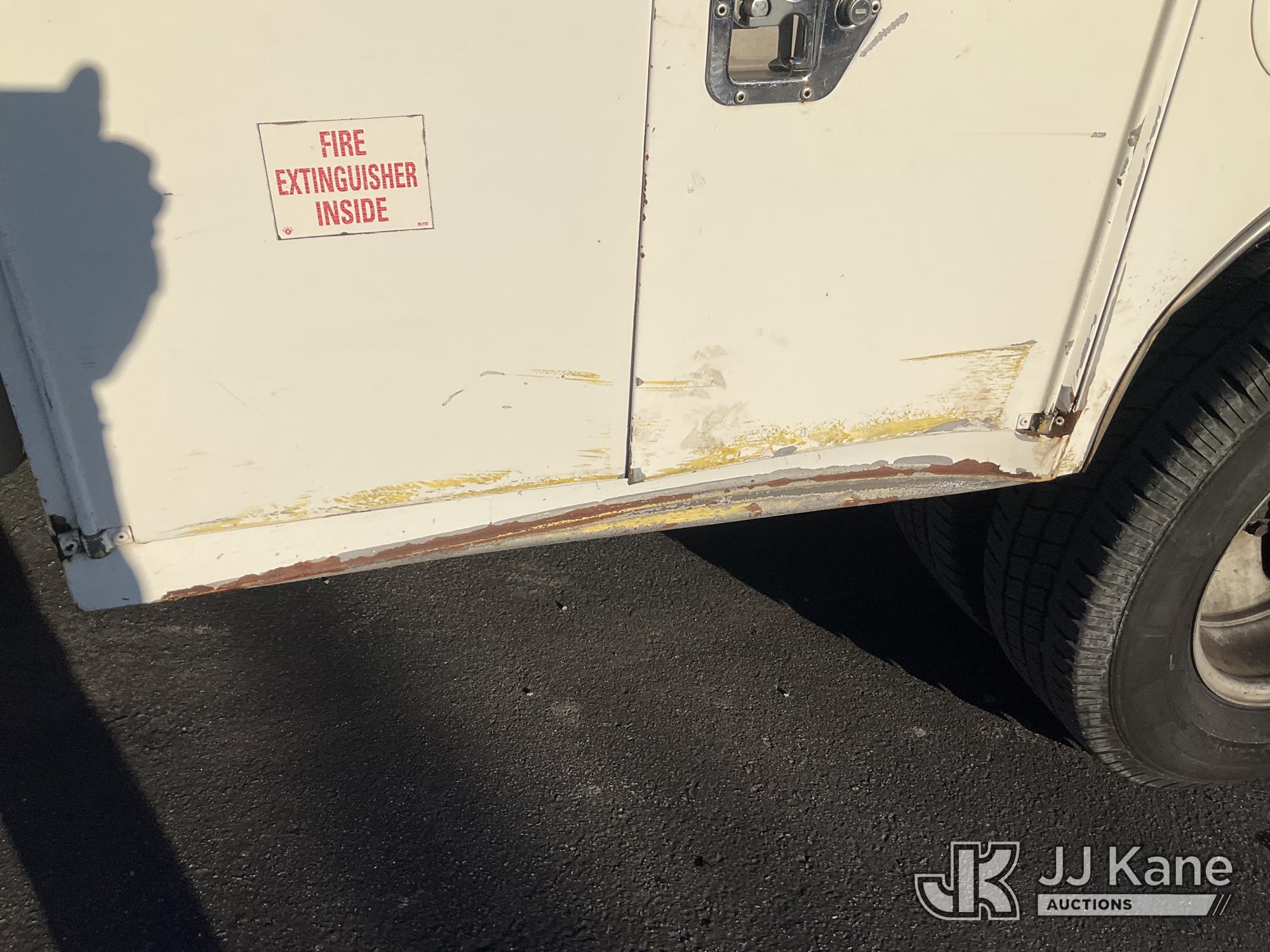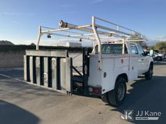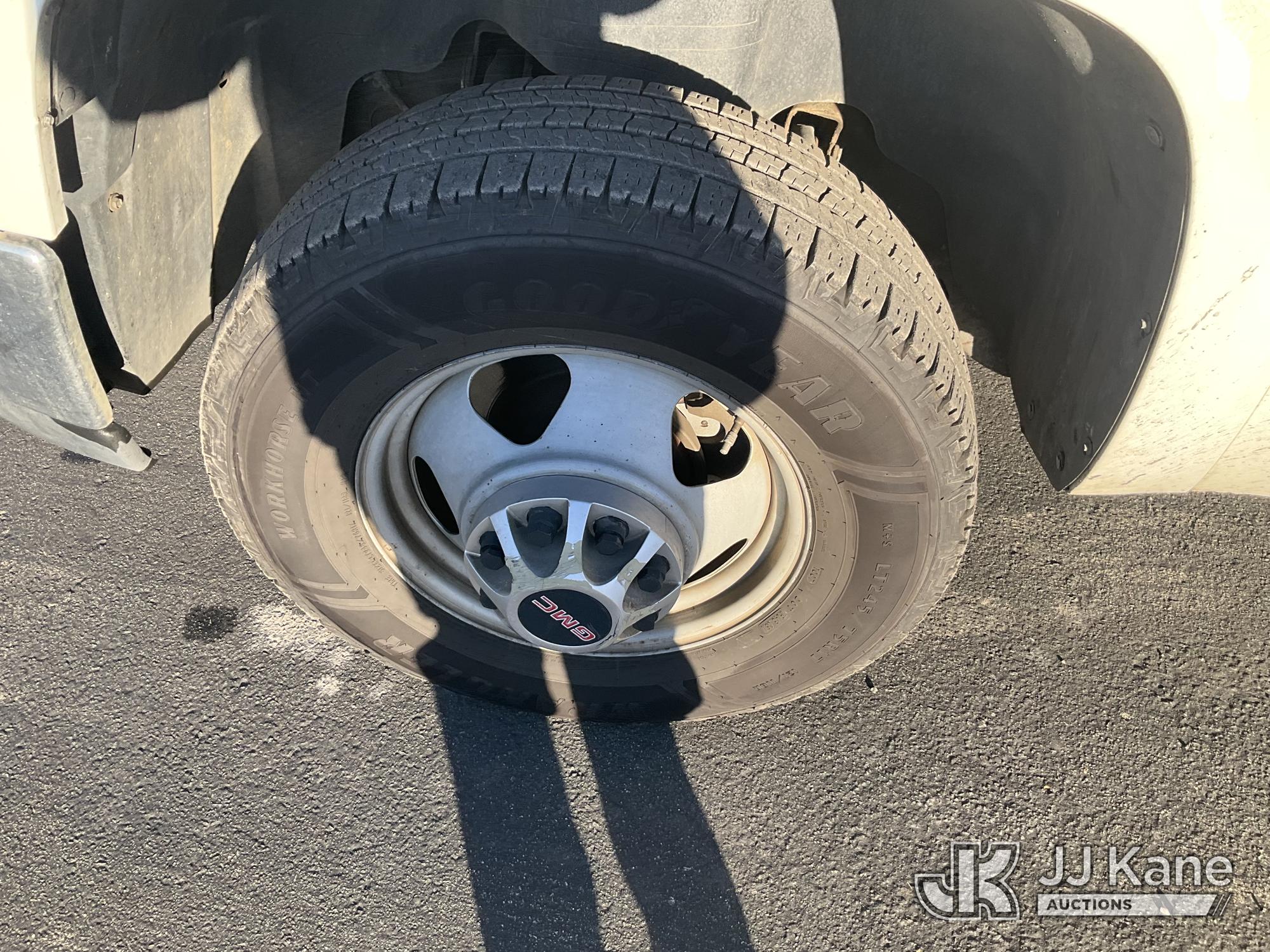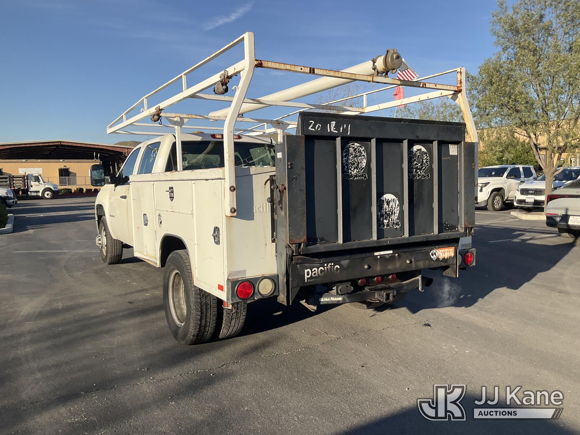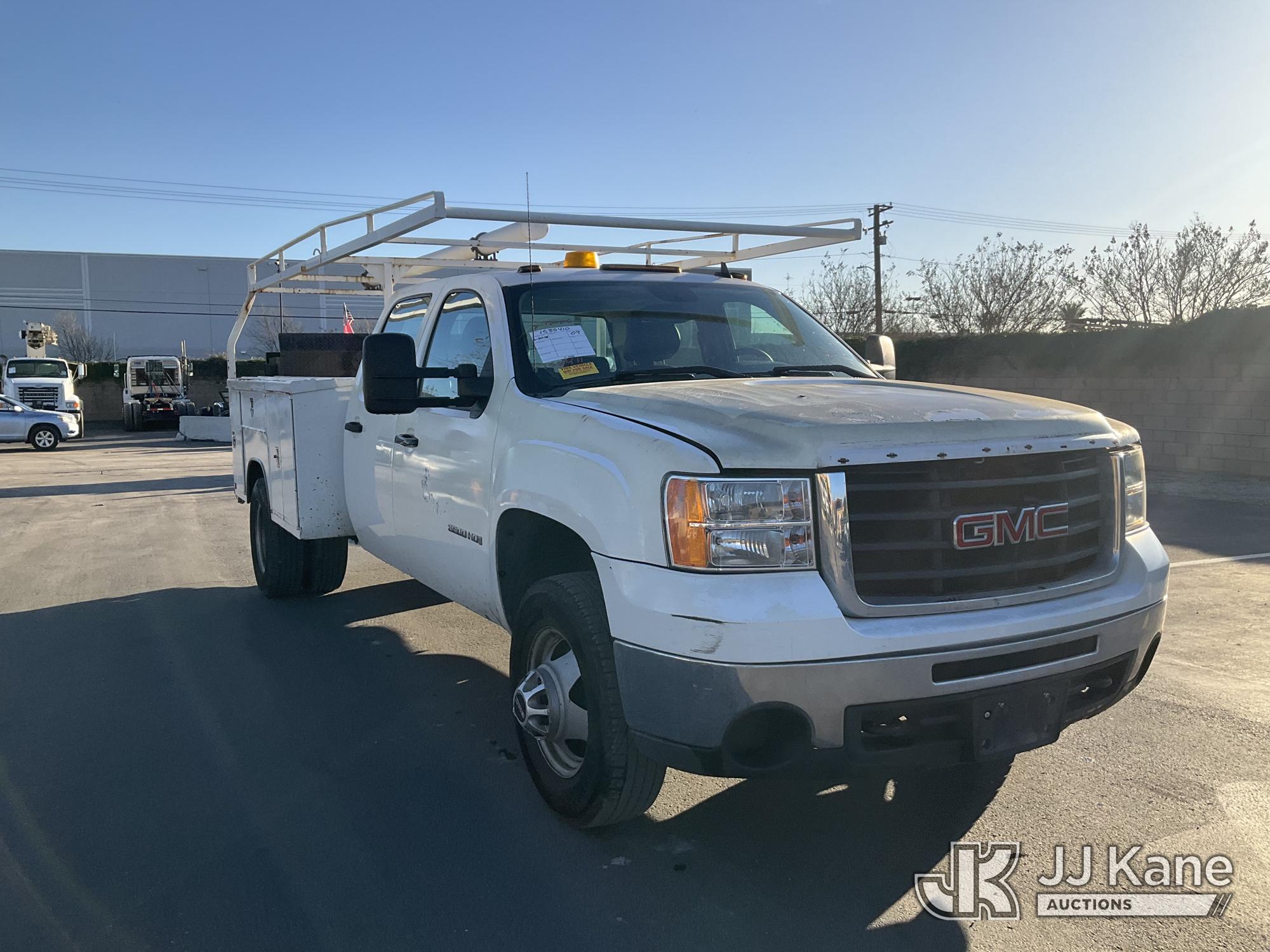 2009 GMC Sierra 3500HD Crew-Cab Service Truck, s/n 1GDJC73K99F158411, 6.0L V8 OHV 16V Gas, RWD, 6-Speed Automatic, A/C, with Tow Package, Lift Gate, Ladder Rack , (282,211 miles) (Runs, Moves, & Lift Gate Operates) (Air Bag Light On, Minor Damage To Bed) (Bidding Restricted to Licensed Vehicle Dealers Only), This is a Titled Item*