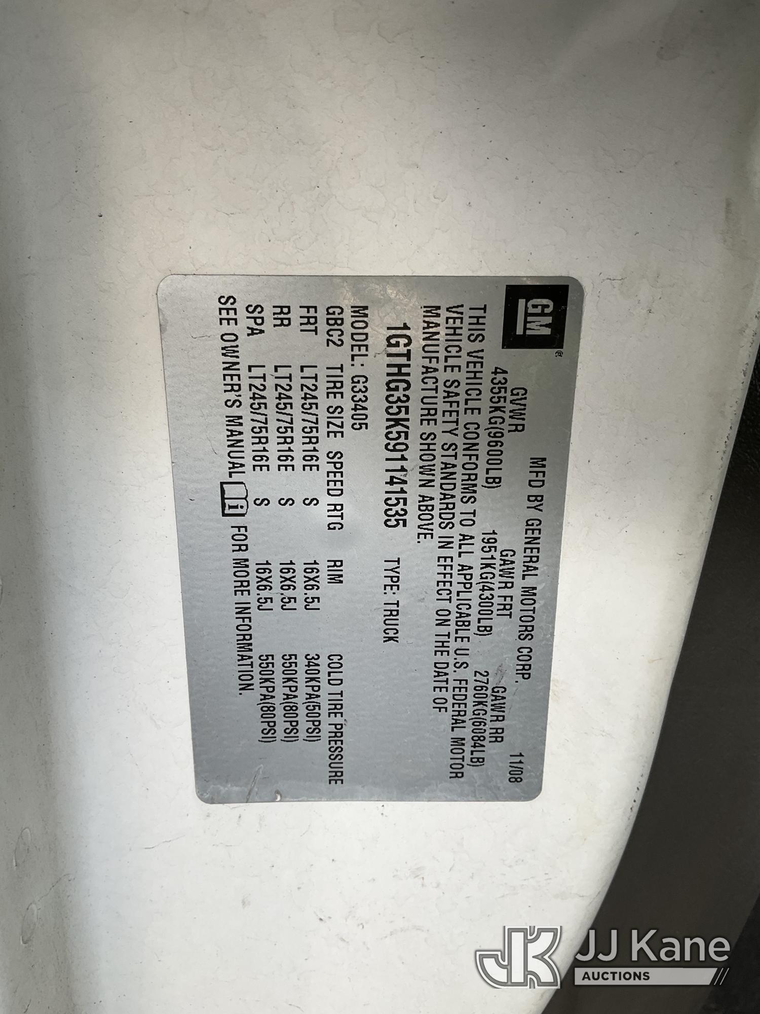2009 GMC Savana G3500 Cargo Van, s/n 1GTHG35K591141535, 8-cyl gas, 4-Speed Automatic, A/C, with Tow package, (82,234 miles) (Runs & Moves) This is a Titled Item*