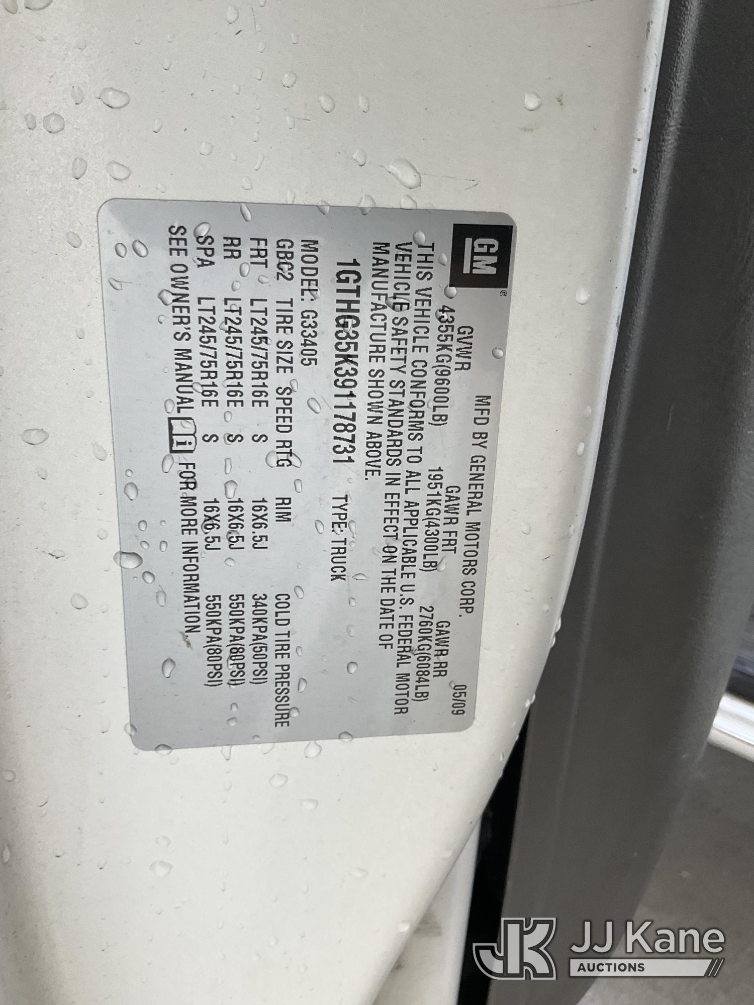 2009 GMC Savana G3500 Cargo Van, s/n 1GTHG35K391178731, 8-cyl gas, 4-Speed Automatic, A/C, with Tow package, (163,527 miles) (Runs & Moves) This is a Titled Item*