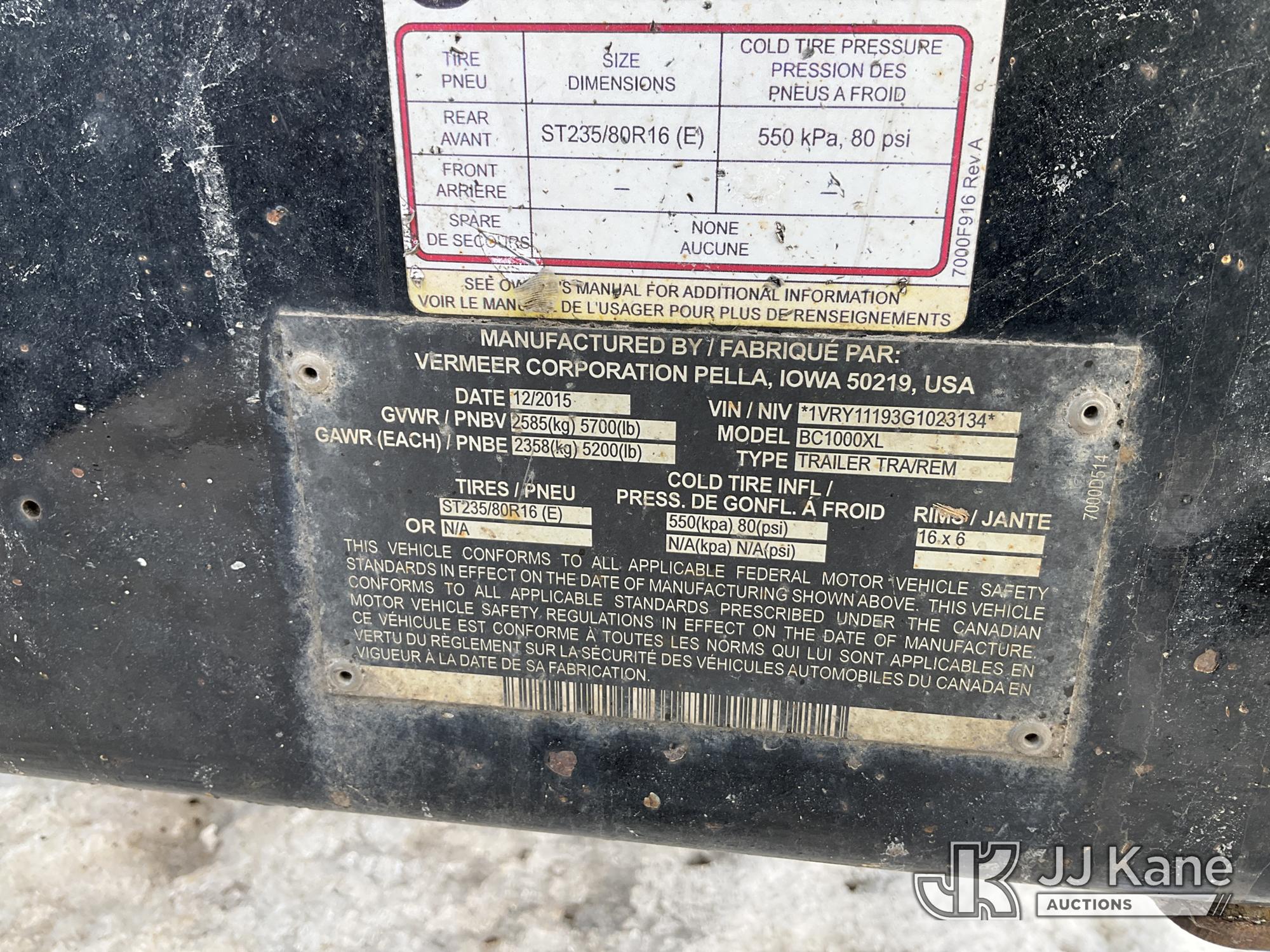 2016 Vermeer BC1000XL Portable Chipper (12in Drum), Deutz diesel, Trailer Mounted (Runs, Seller States: Needs Engine Work, Rust Damage) (Reads 2,923 hours) This is a Titled Item*