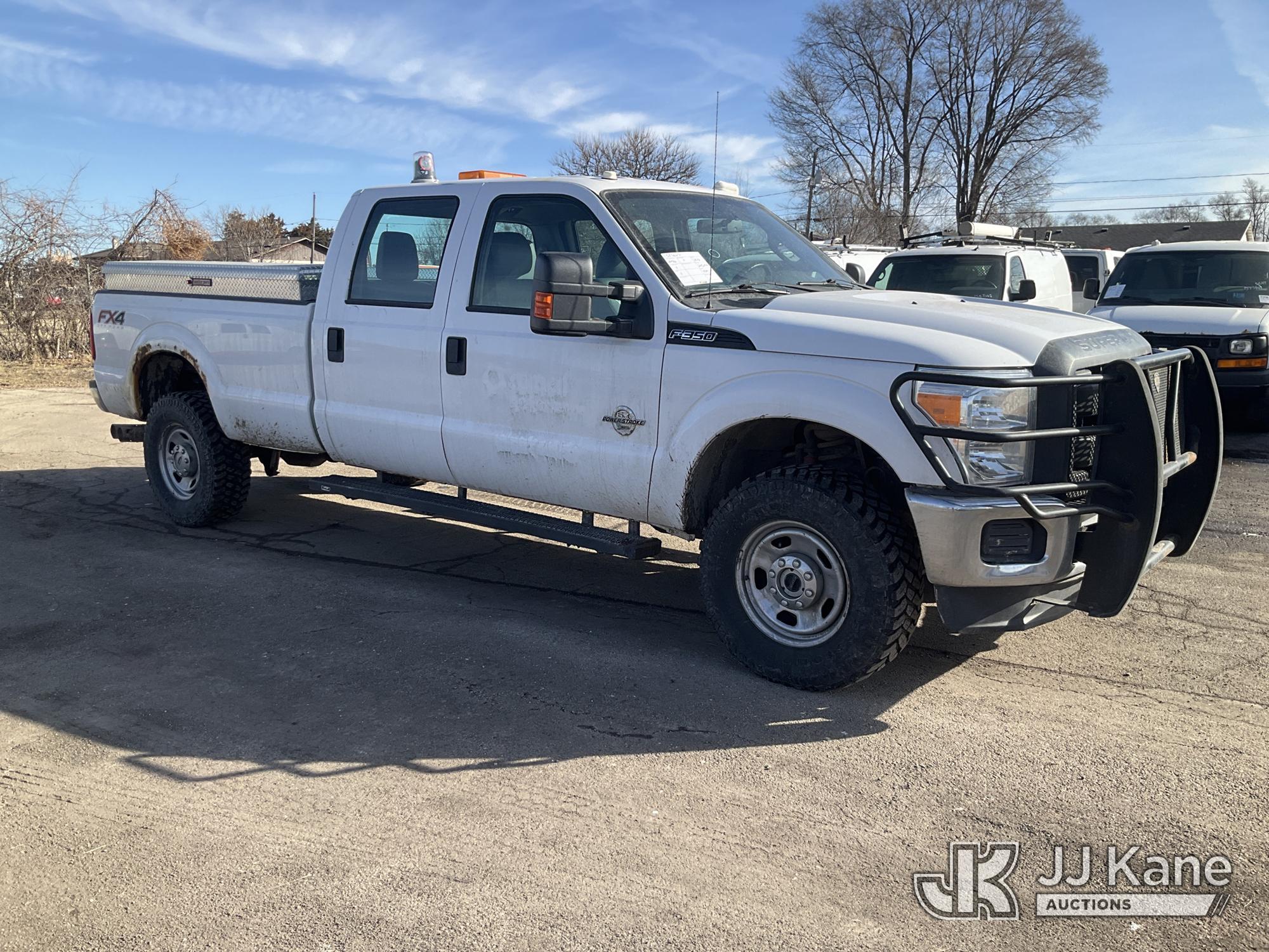 2016 Ford F-350 SD Crew-Cab Pickup Truck, 6.7L Diesel 4wd, 6-Speed Automatic, A/C, with Heavy Duty Front Bumper w/ Grill Guard, (225,242 miles) (Runs & Moves) (Rust Damaged, Chipped Windshield) (Reads 11,609 hours) This is a Titled Item*