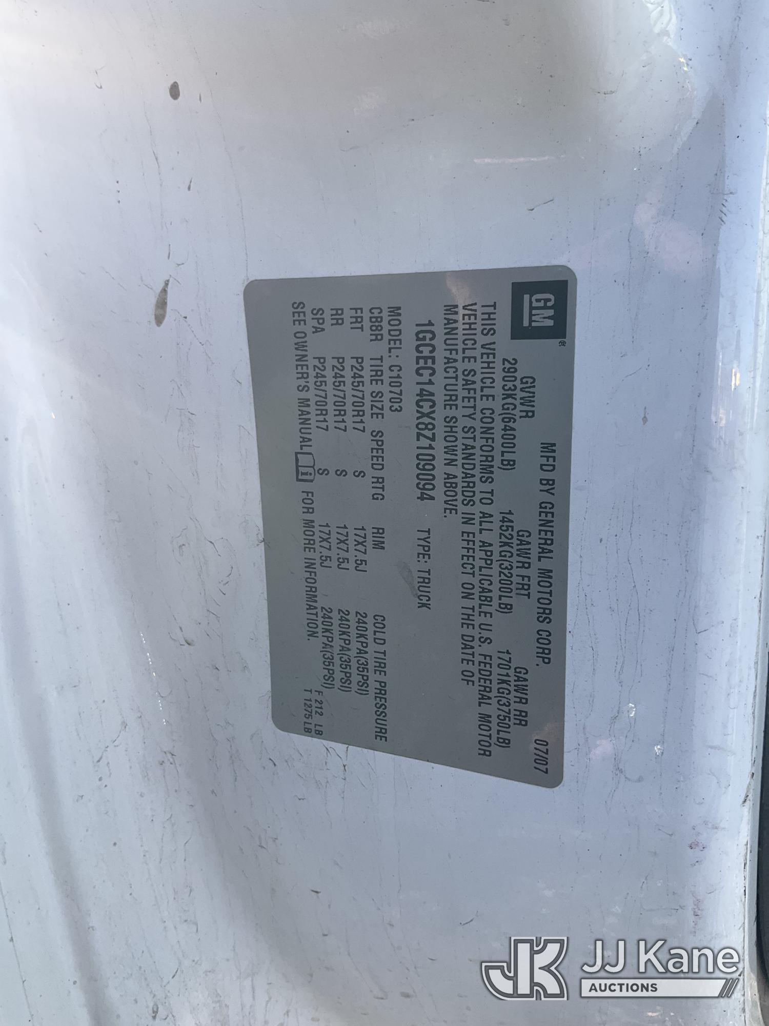 2008 Chevrolet Silverado 1500 Pickup Truck, 4.8L V8 OHV 16V gas, RWD, 4-Speed Automatic, A/C, (85,377 miles) (Runs & Moves) This is a Titled Item*