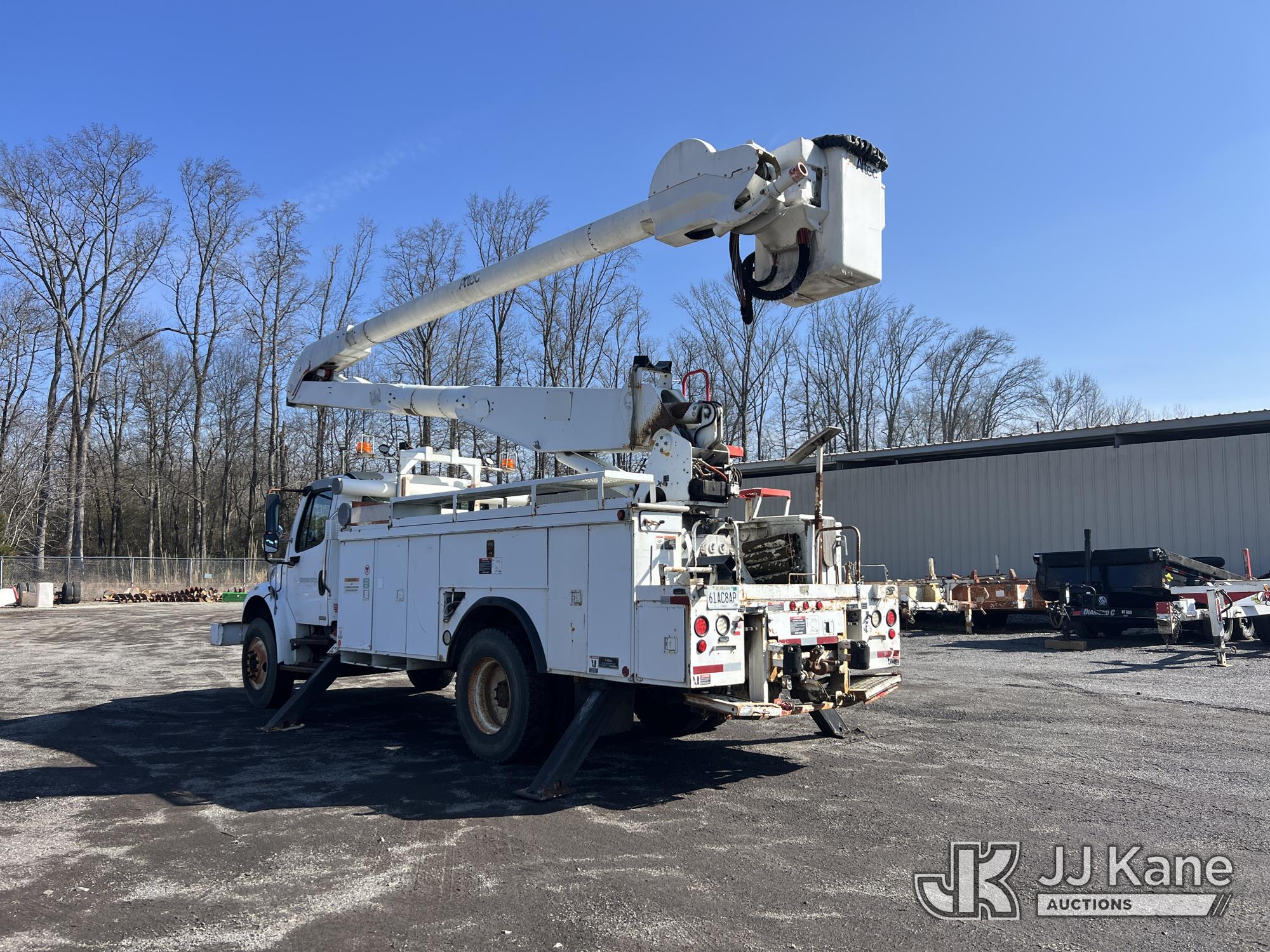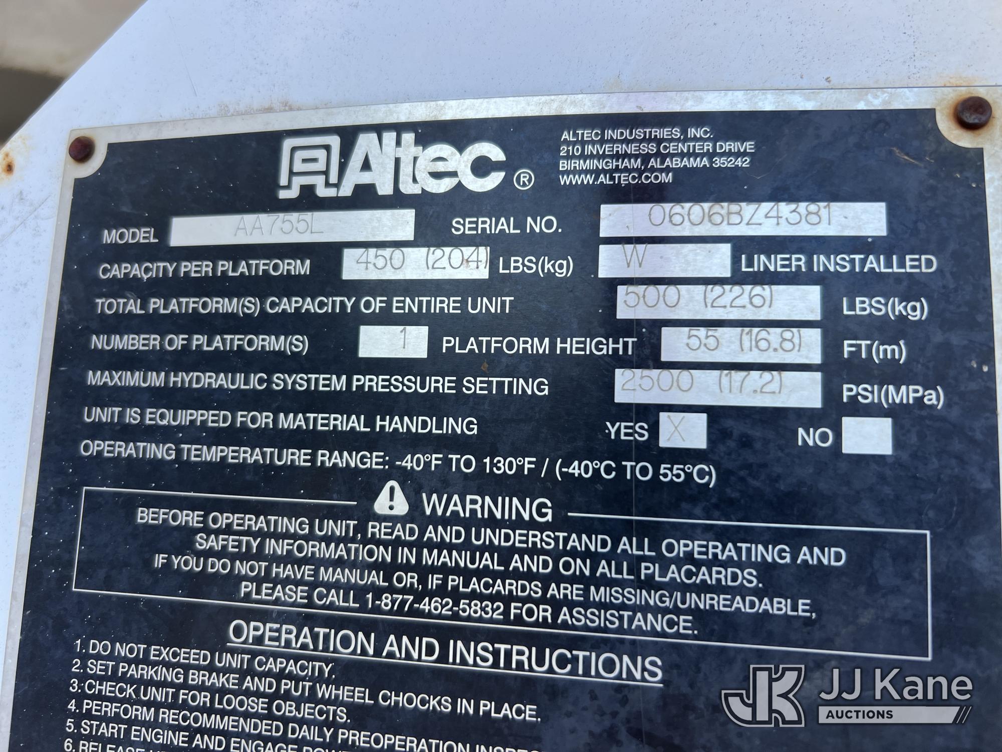 Altec AA755L-MH, 60 ft, Material Handling Bucket Truck s/n 0606BZ4381, with single-man bucket, rear mounted on 2007 Freightliner M2 106 Utility Truck, Cat 3126 diesel, Auto, A/C, with front winch, (123,046 miles) (Runs, Moves & Upper Operates) This is a Titled Item*