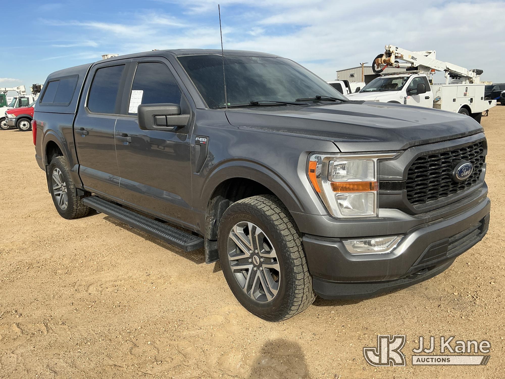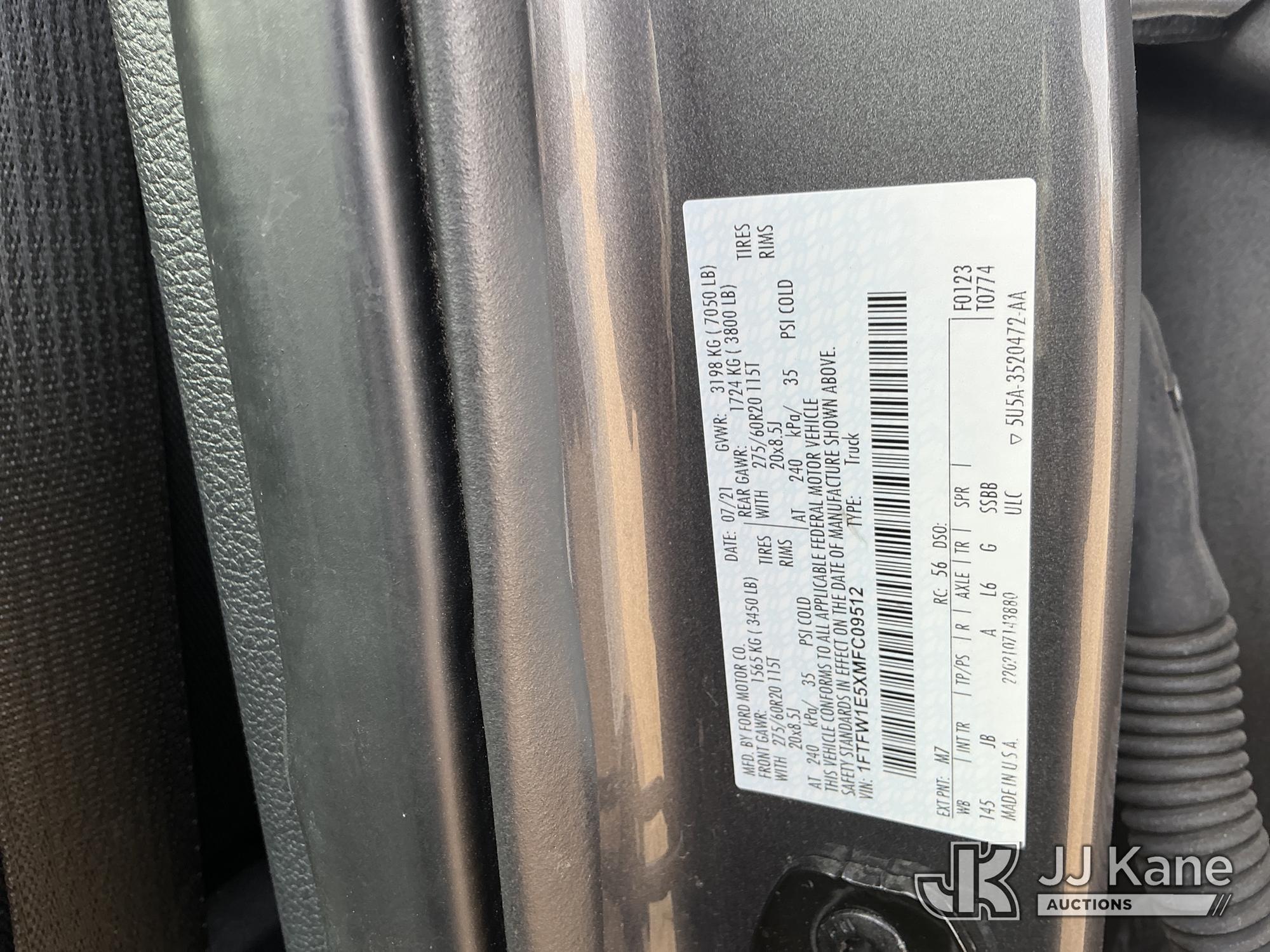 2021 Ford F-150 Crew-Cab Pickup Truck, 8-cyl gas, 4wd, 6-Speed Automatic, A/C, with Enclosed Bed Box, (73,686 miles) (Runs & Barely Moves) (Jump To Start, Shuts Off When Jump Removed, Hard To Steer, Runs Rough, Steering Assist Fault, Service Advance Trac, Low Engine Oil Pressure, & Check Engine Lights On: Conditions Unknown) (Non Drive Away Removal Only: Safety Inspect) (Reads 2,419 hours) This is a Titled Item*