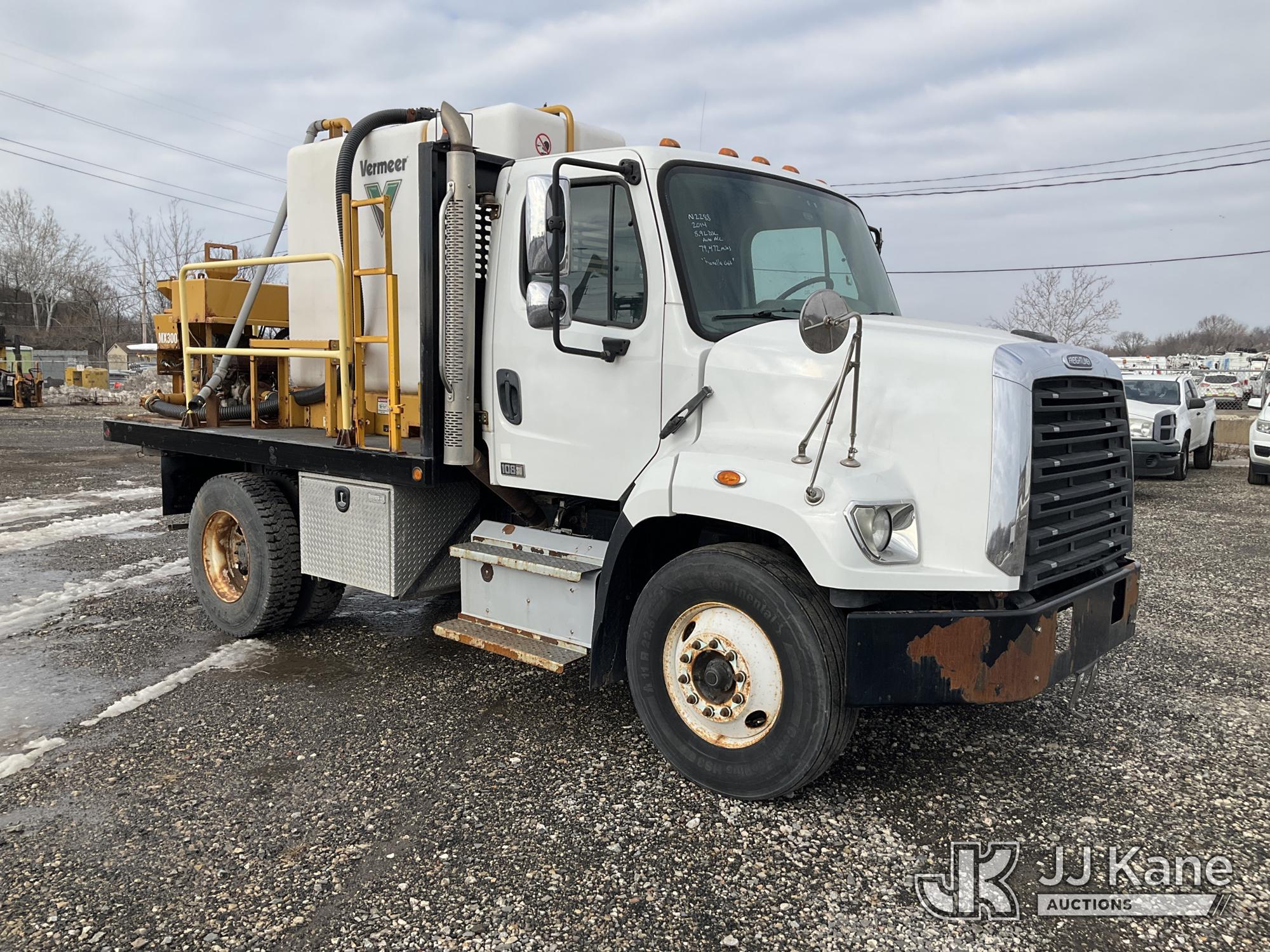 2014 Freightliner 108SD Flatbed Directional Drill Support Truck, 8.9L diesel, Auto, A/C, with Vermeer MX300 Mud Mixing Unit. S/N 1VRM08068KF000123, Gas Pwrd. 711hrs, (79,472 miles) (Danella Unit) (Runs & Moves, Jump To Start, Check Engine Light On, Body Damage) This is a Titled Item*