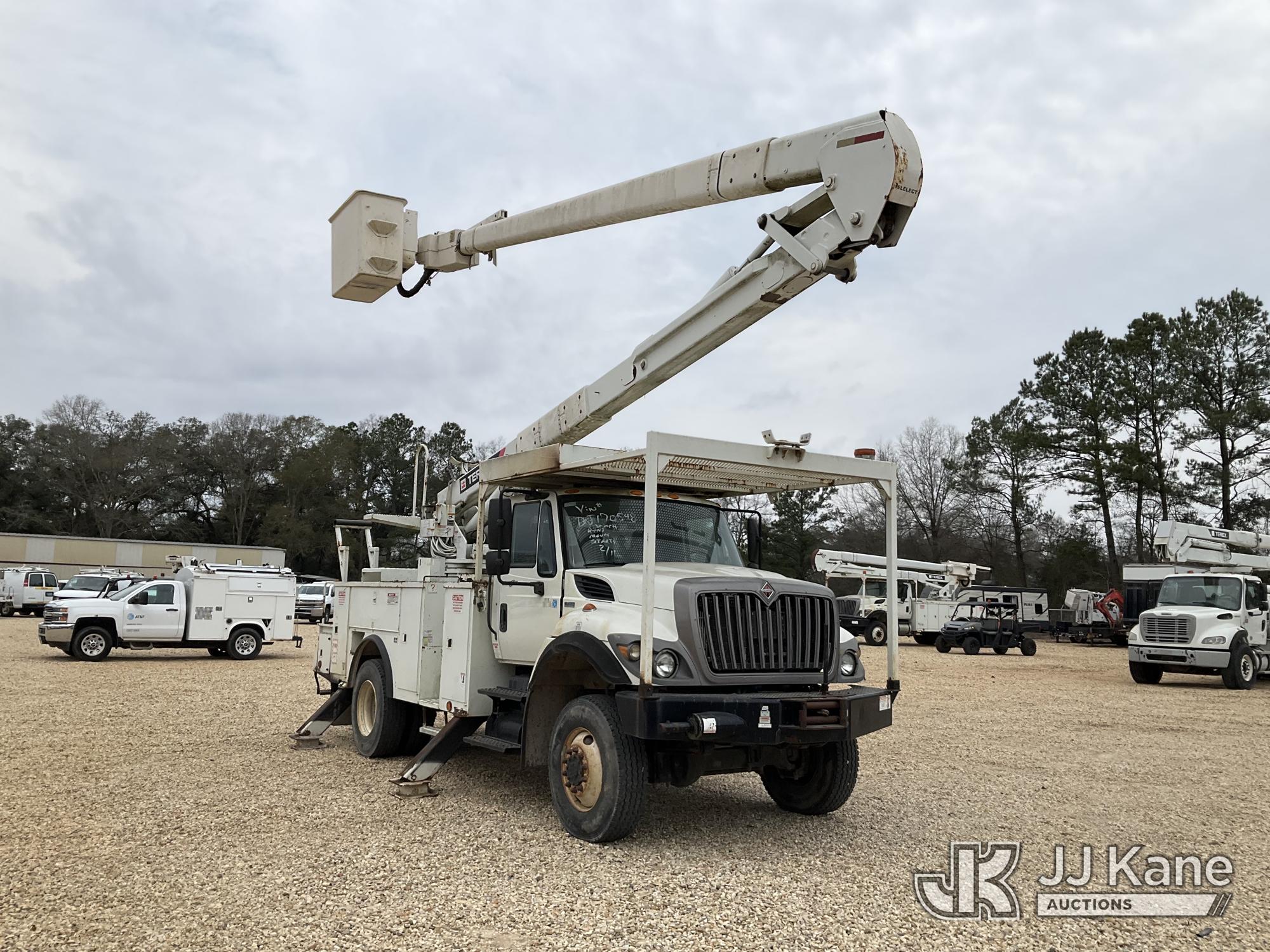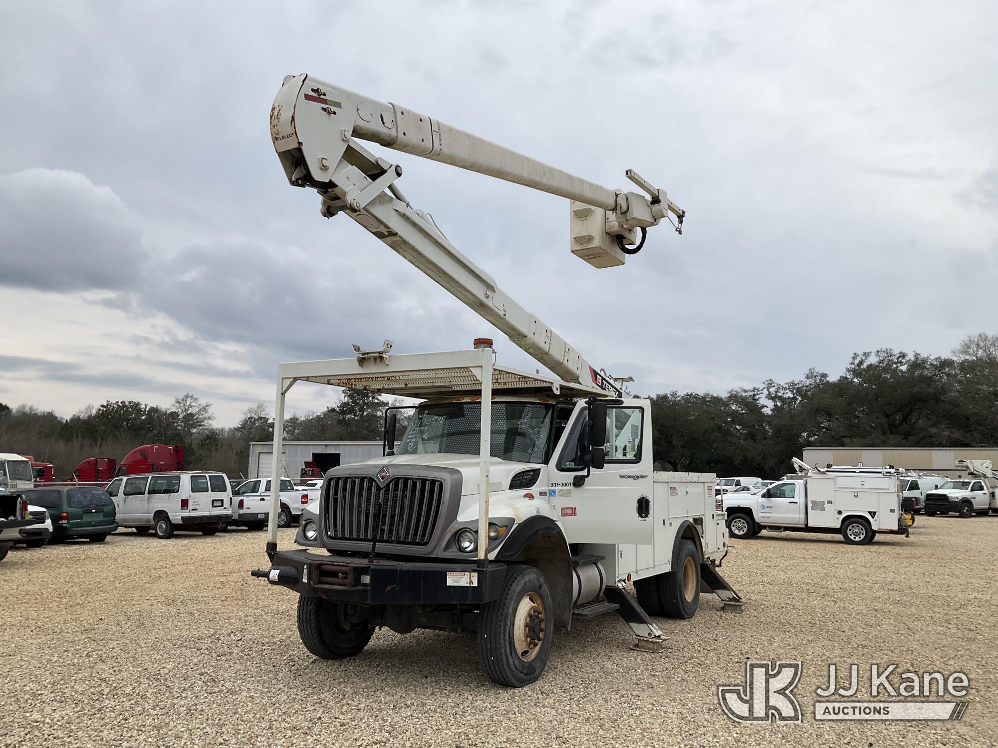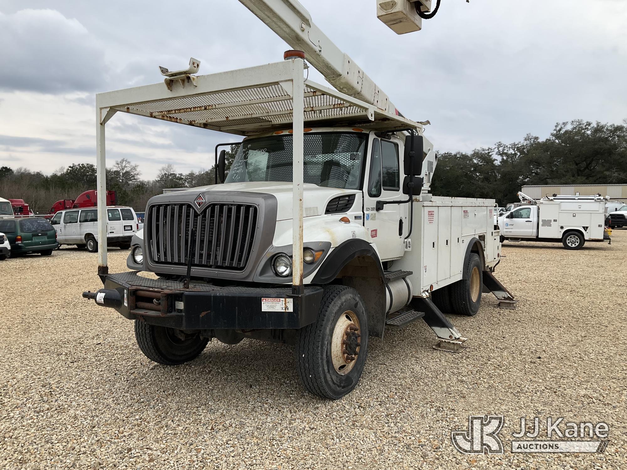 HiRanger 5TC-55MH, 60 ft, Material Handling Bucket Truck s/n 2120446910, with two-man bucket, rear mounted on 2013 International 7300 4x4 Utility Truck, 7.6L L6 diesel, 6-spd, A/C, with front winch, (90,122 miles) (Runs, Moves & Upper Operates) This is a Titled Item*
