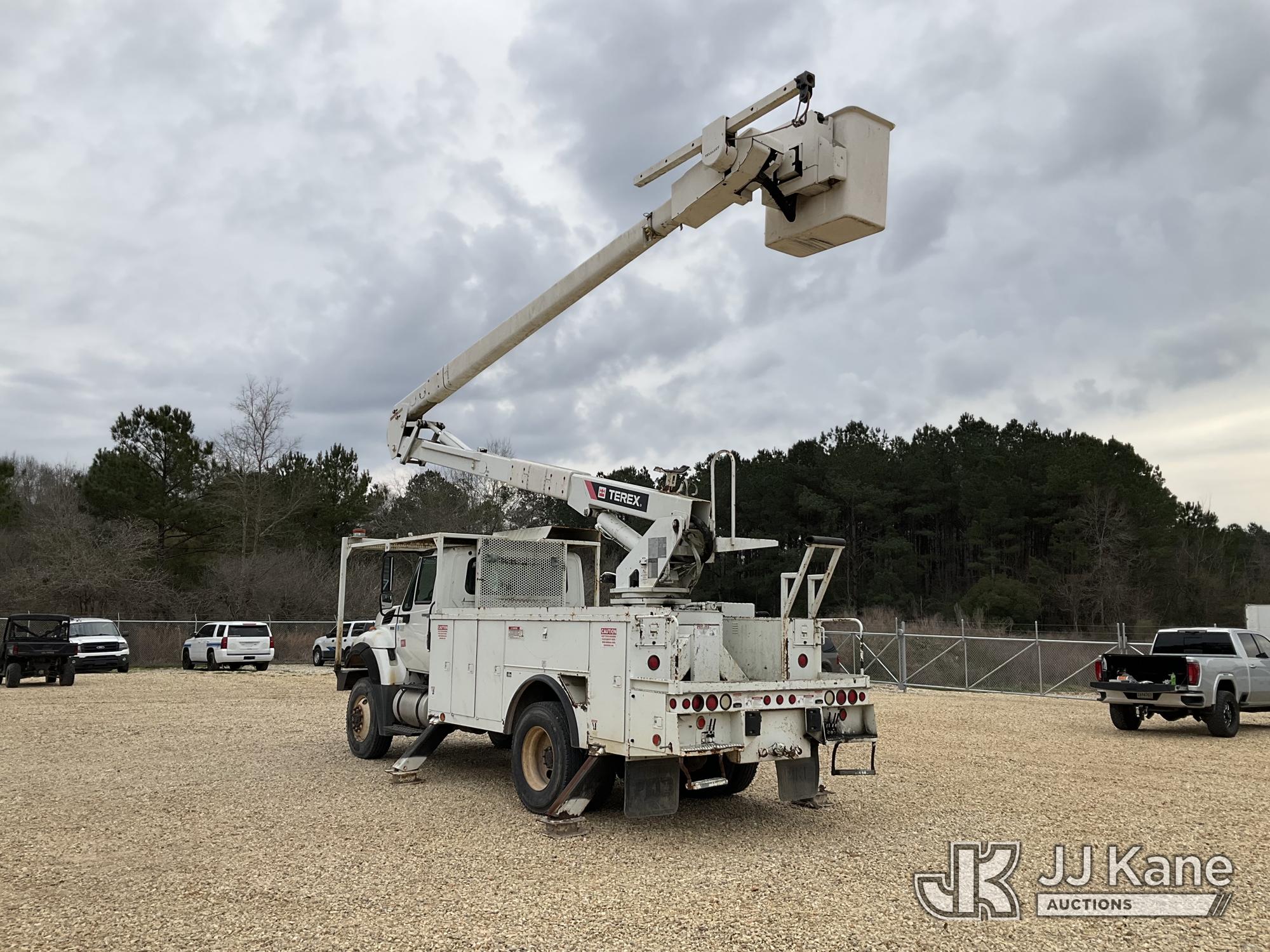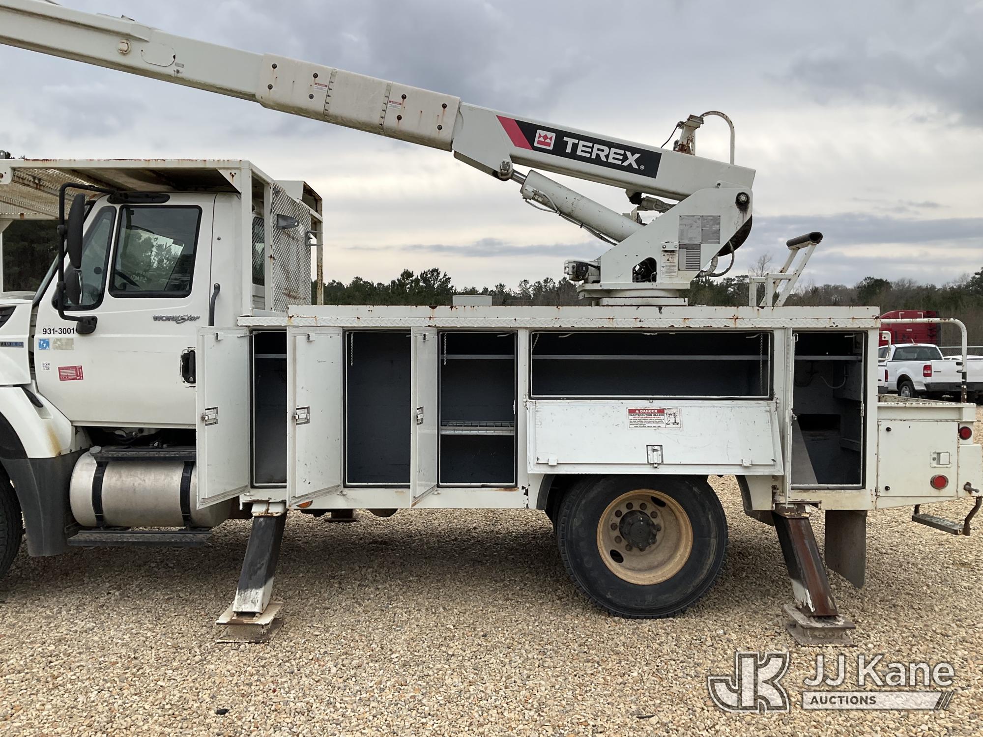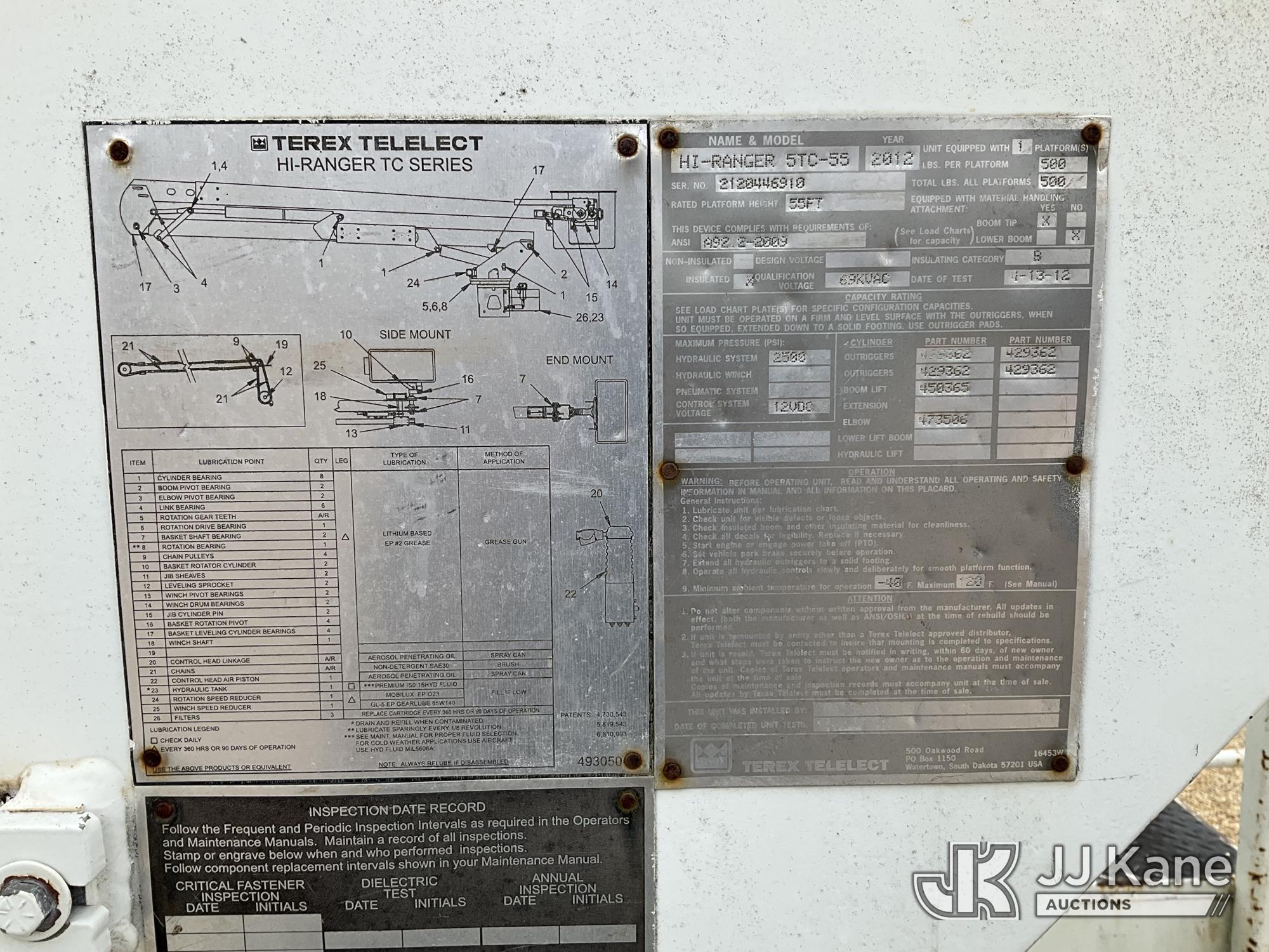 HiRanger 5TC-55MH, 60 ft, Material Handling Bucket Truck s/n 2120446910, with two-man bucket, rear mounted on 2013 International 7300 4x4 Utility Truck, 7.6L L6 diesel, 6-spd, A/C, with front winch, (90,122 miles) (Runs, Moves & Upper Operates) This is a Titled Item*