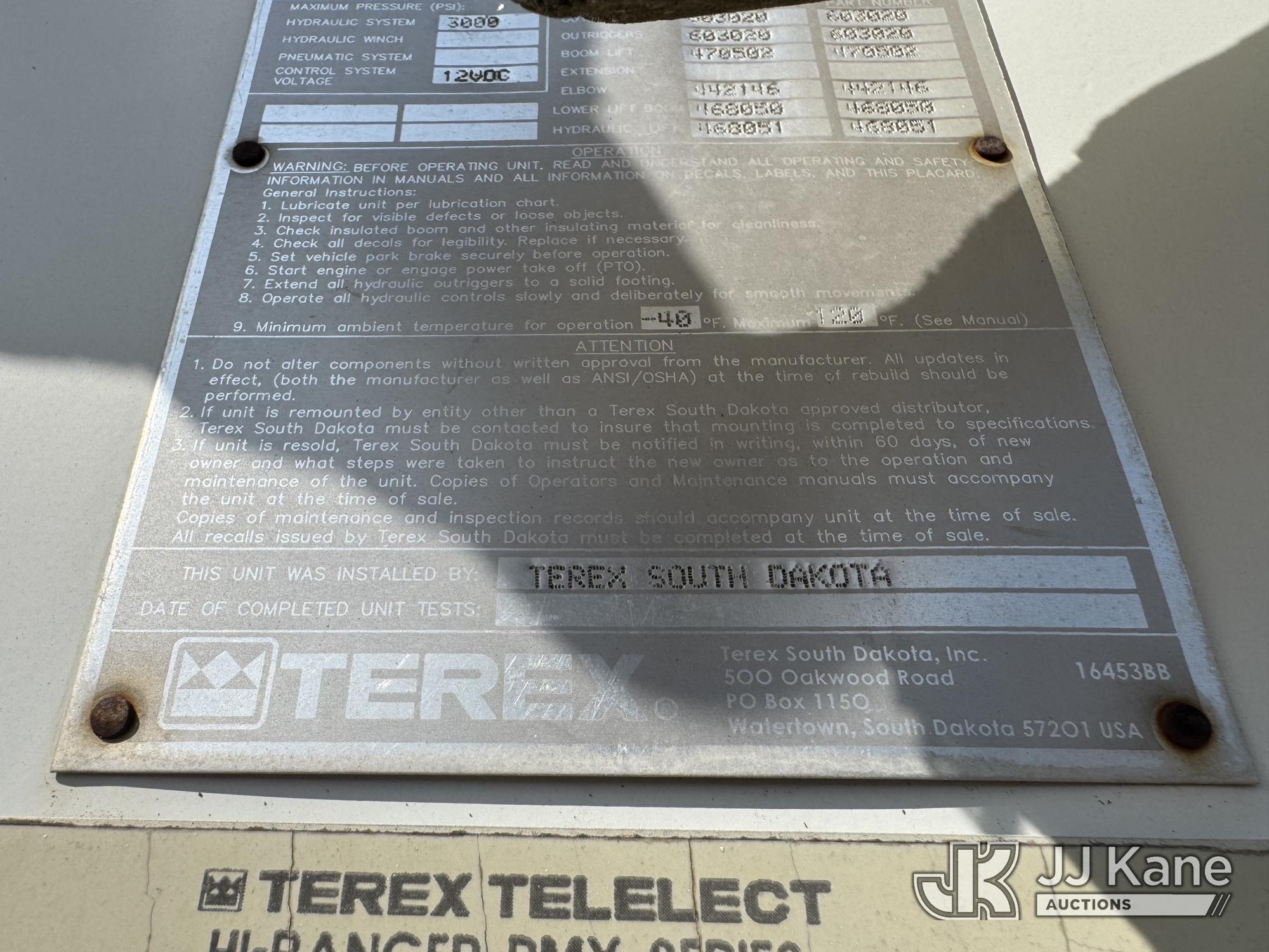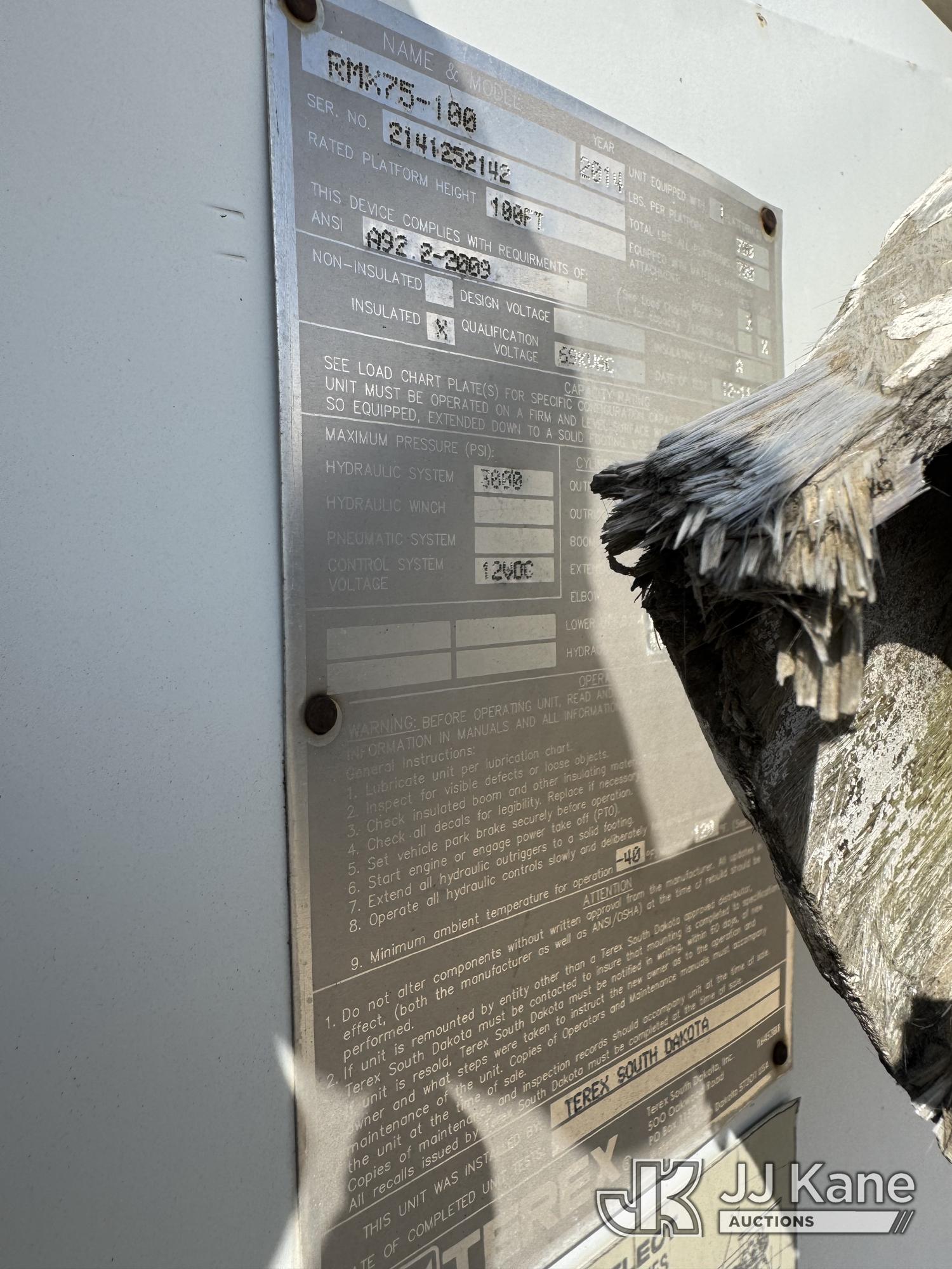 Terex RMX75/100, 105 ft, Double-Elevator Material Handling Bucket Truck s/n 2141252142, with Two-Man Bucket, 4 Hydraulic Outriggers, rear mounted on 2015 Freightliner M2 112 Flatbed Truck, 12.8L L6 DIESEL 8X6, Auto, A/C, (038,341 miles) Needs engine and exhaust system work (Engine Turns Over, But Will Not Start, Does Not Move & Upper Condition Unknown) (Check Engine Light On, No Body Damage) This is a Titled Item*