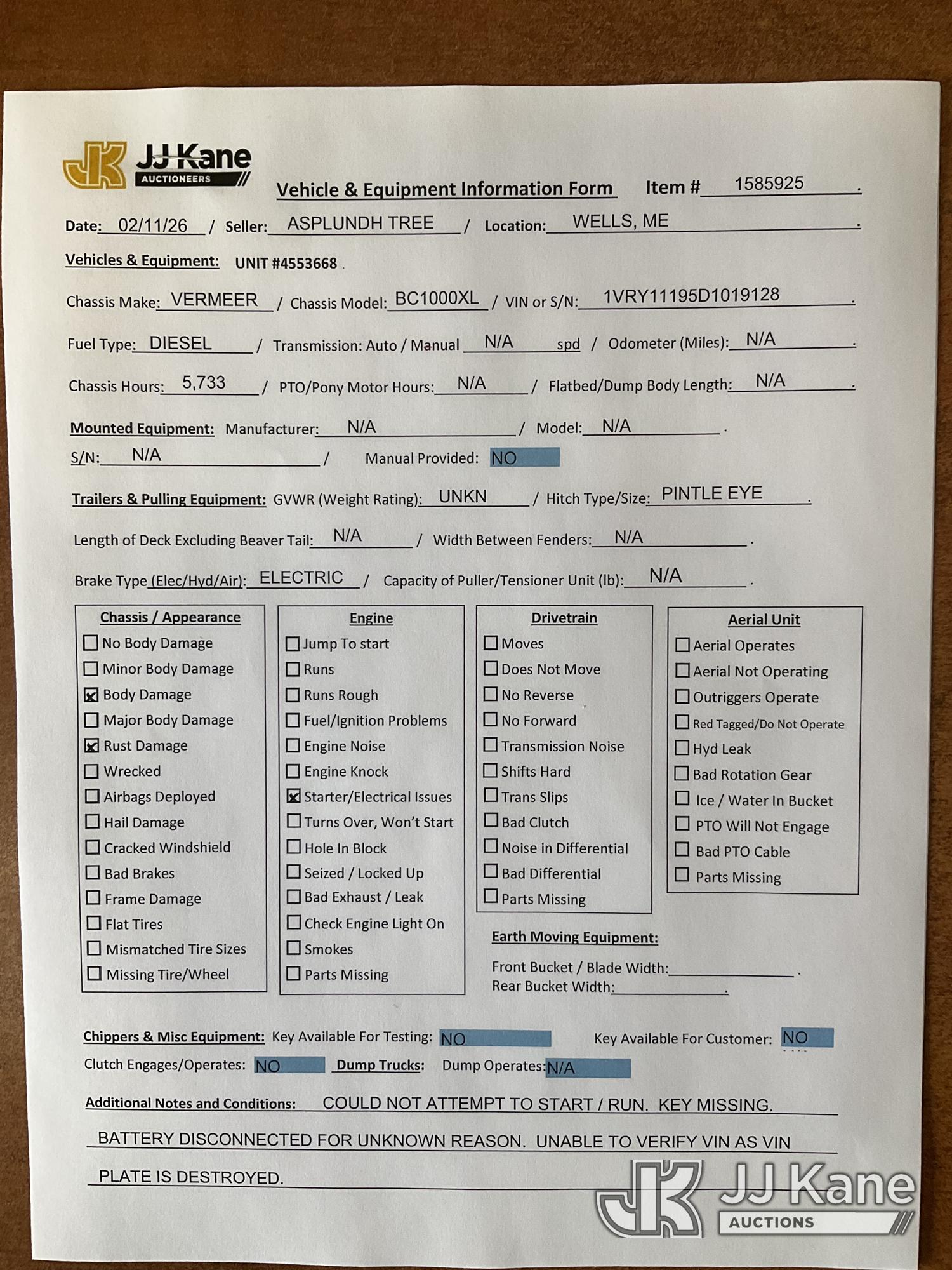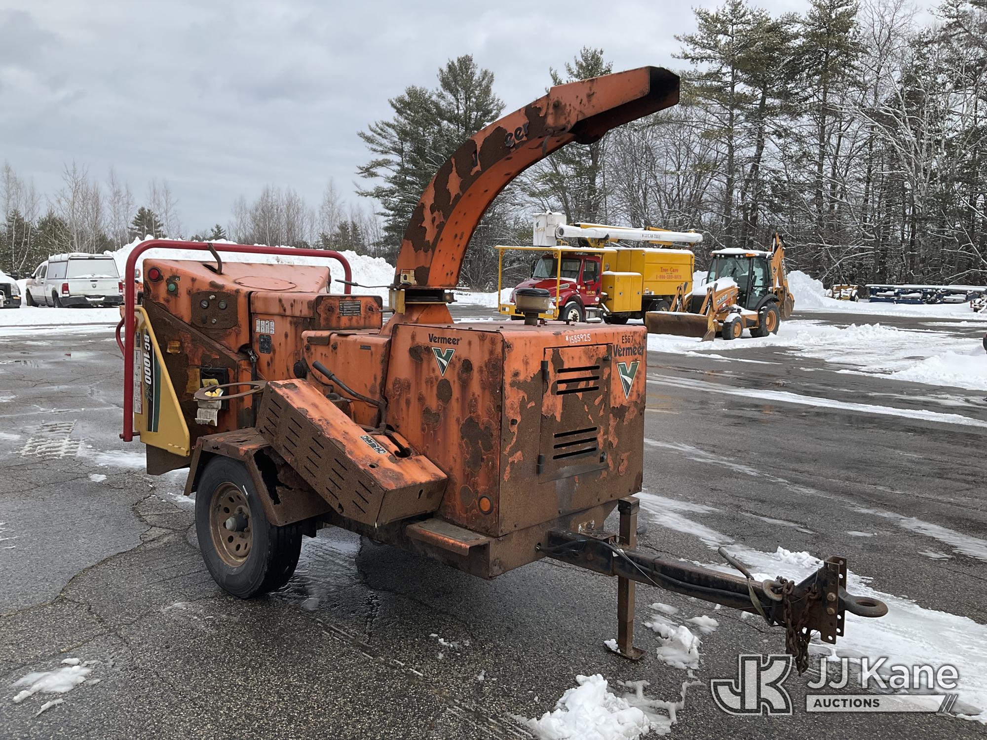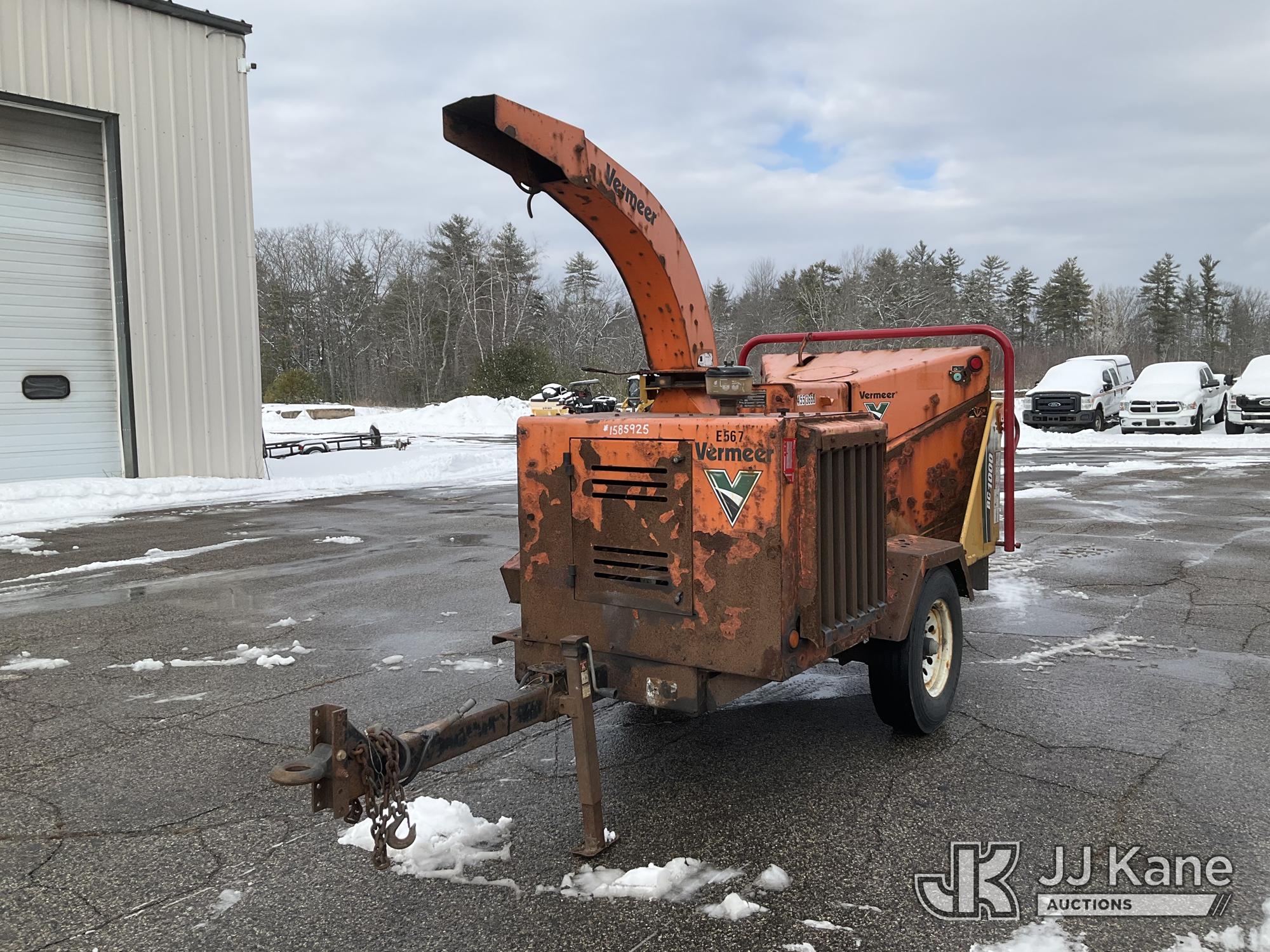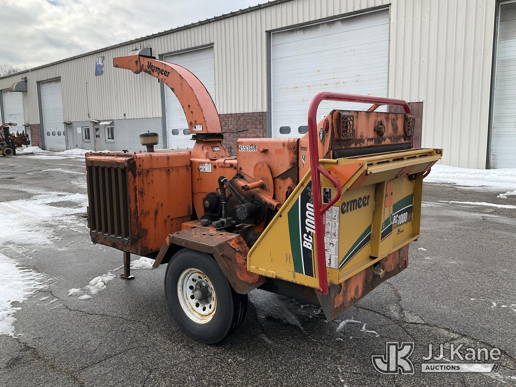 2013 Vermeer BC1000XL Portable Chipper (12in Drum), s/n 1VRY11195D1019128, diesel, (No Title) (Not Running, No Key, Condition Unknown, Battery Disconnected, Body/Rust Damage) (Seller States: Wiring Burnt Up) (Reads 5,733 hours)*