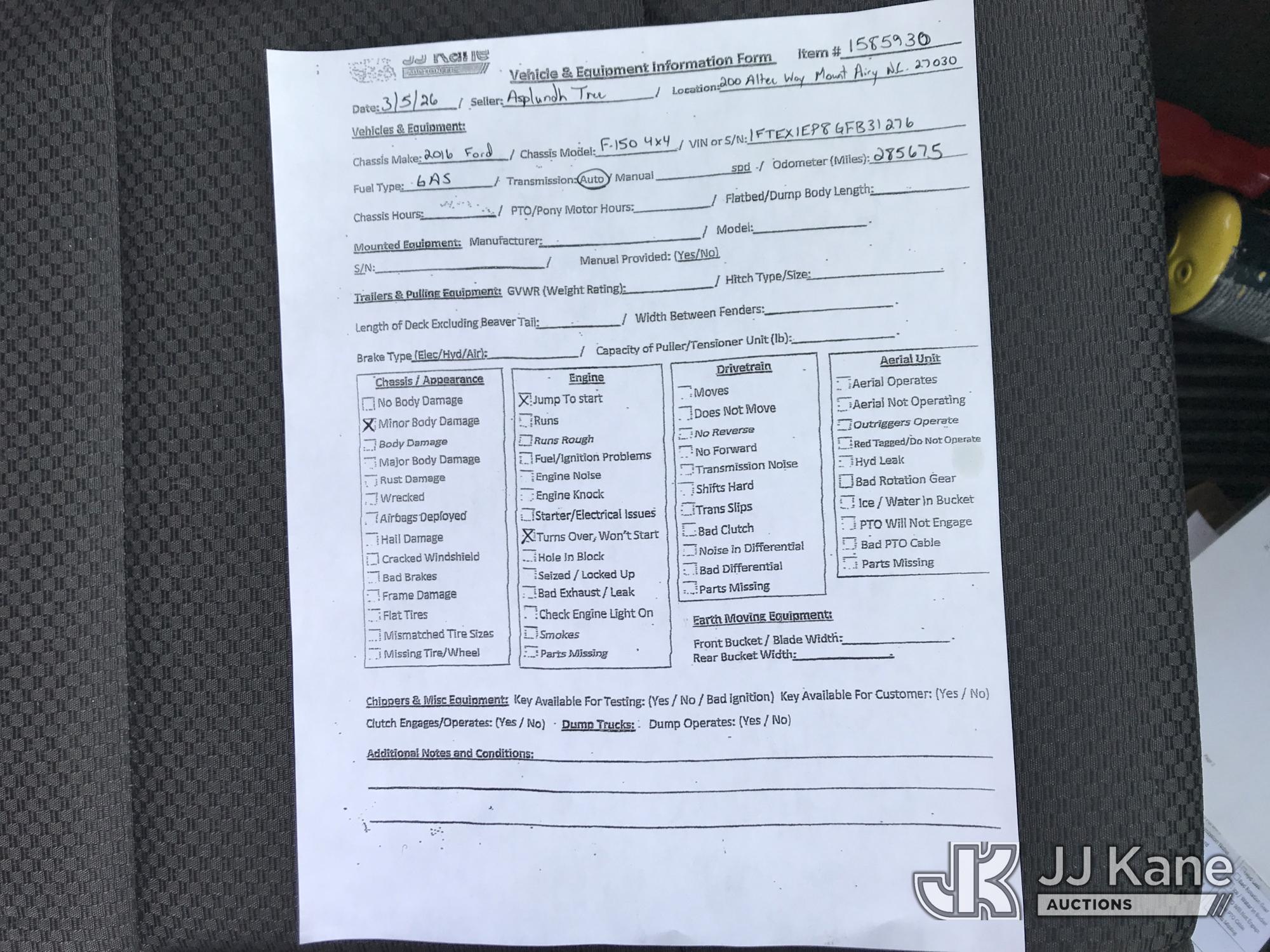 2016 Ford F150 4x4 Extended-Cab Pickup Truck, 2.7L V6 DOHC 24V gas, 6-Speed Automatic, A/C, (285,675 miles) (Not Running, Condition Unknown) (Turns Over But Won't Start, Body Damage) (Seller States: Blown Motor) This is a Titled Item*