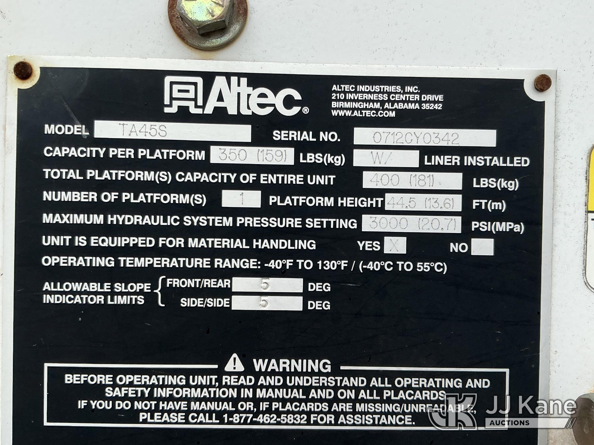 Altec TA45SMH, 50 ft, Articulating & Telescopic Material Handling Bucket Truck s/n 0712CY0342, with single-man bucket, rear mounted on 2013 Freightliner M2 106 Utility Truck, 6.7L diesel, Auto, A/C, (141,589 miles) (Duke Unit) (Runs, Moves & Upper Operates ) This is a Titled Item*