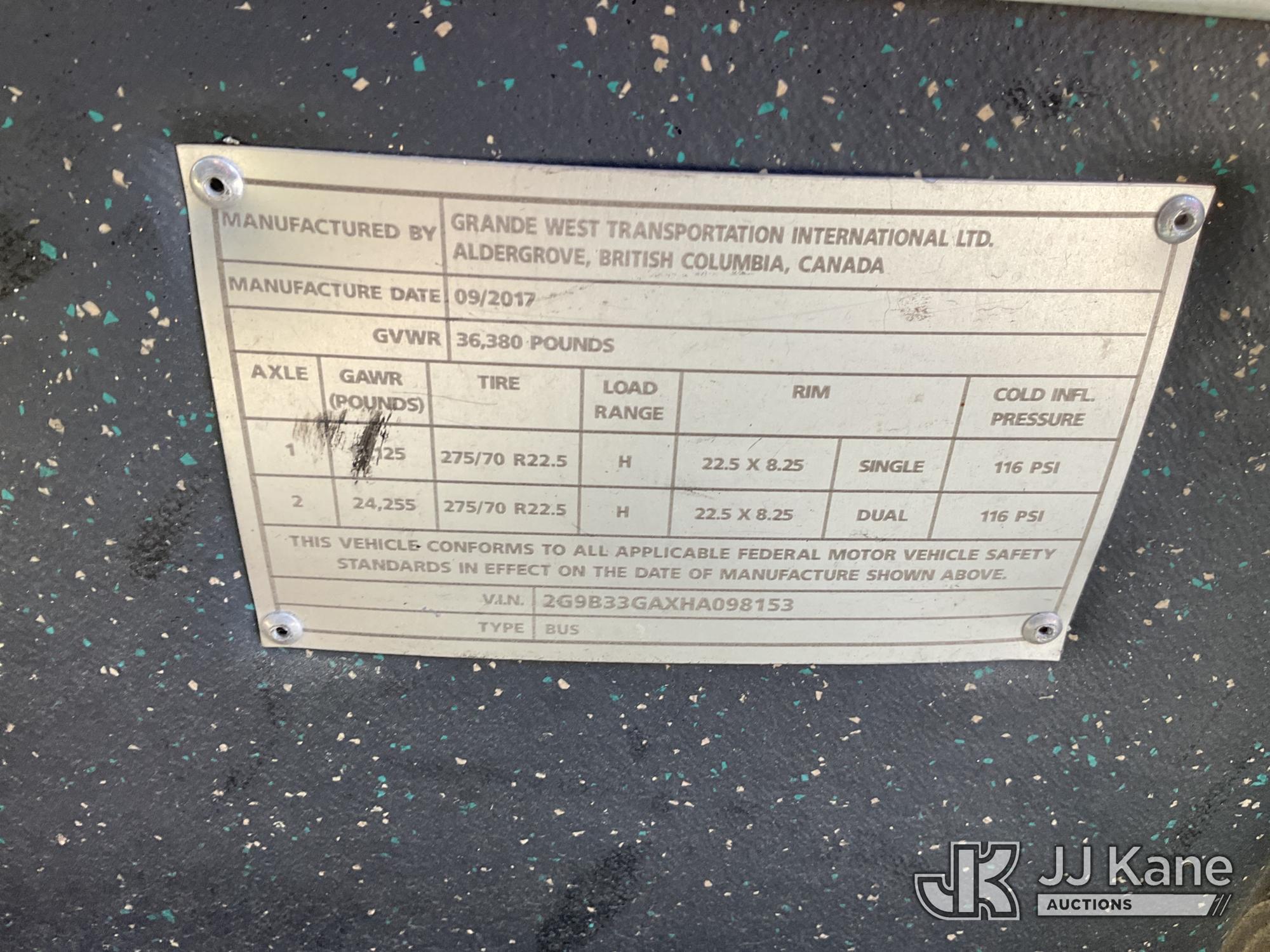 2017 Grande West Passenger Bus, Cummins diesel, Auto, True Mileage Unknown (Not Running, Condition Unknown, BUYER MUST LOAD) This is a Titled Item*