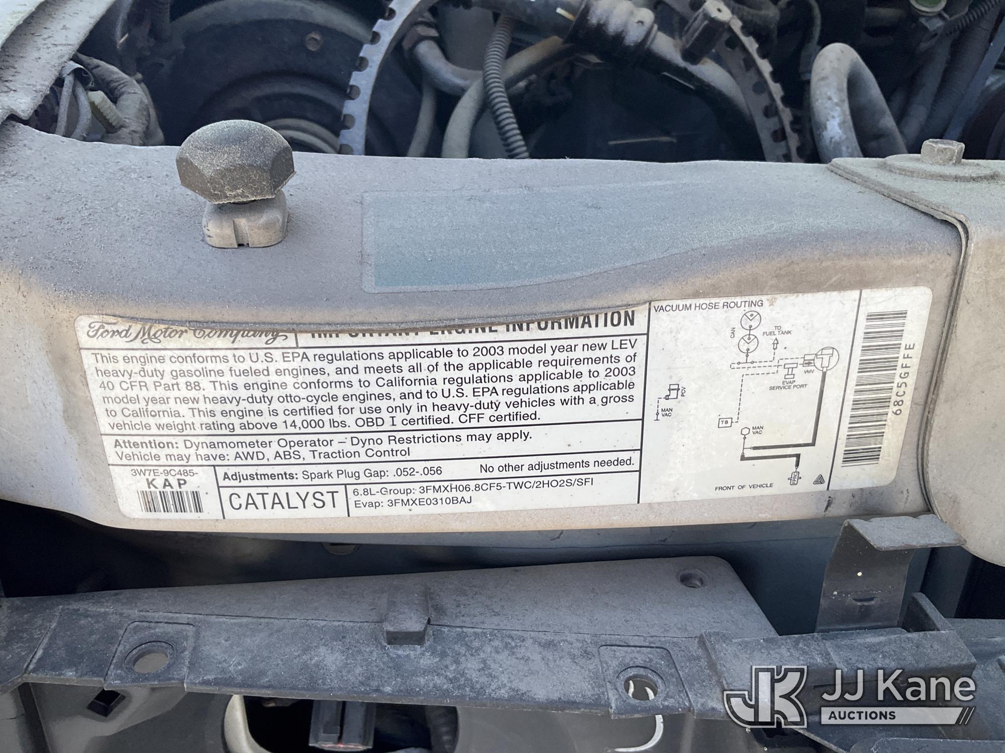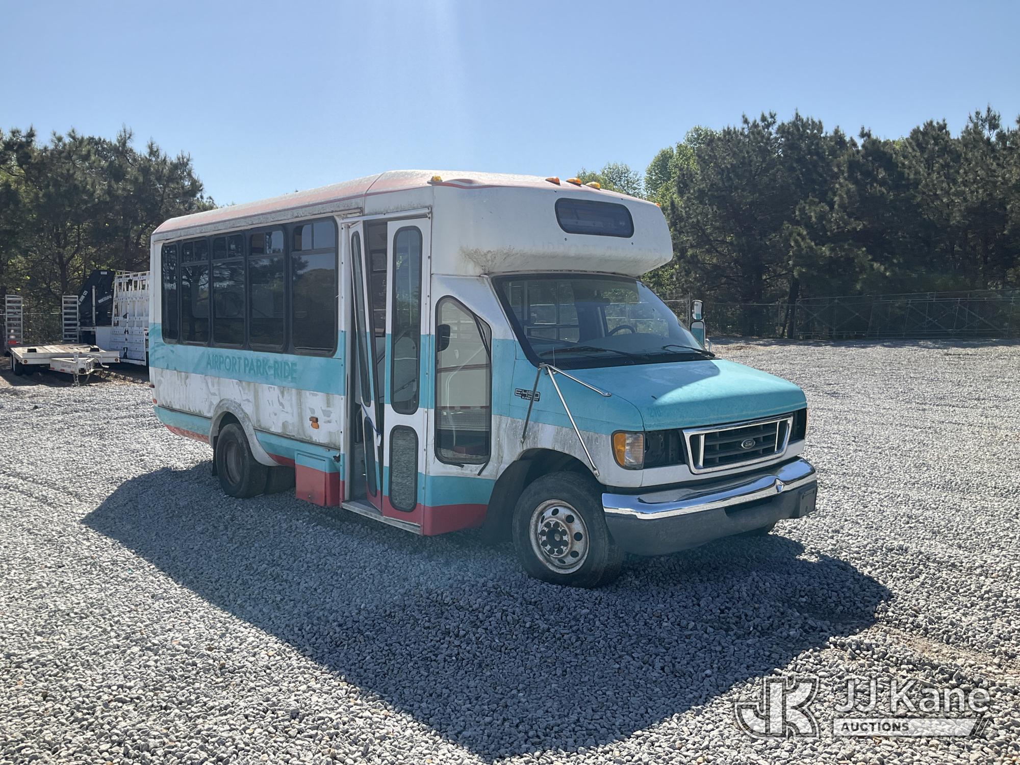 2003 Ford E450 Passenger Bus, 10-cyl gas, RWD, Auto, A/C, True Mileage Unknown (Not Running, Condition Unknown, No Key, Intake Disassembled, Passenger Door Damaged) This is a Titled Item*