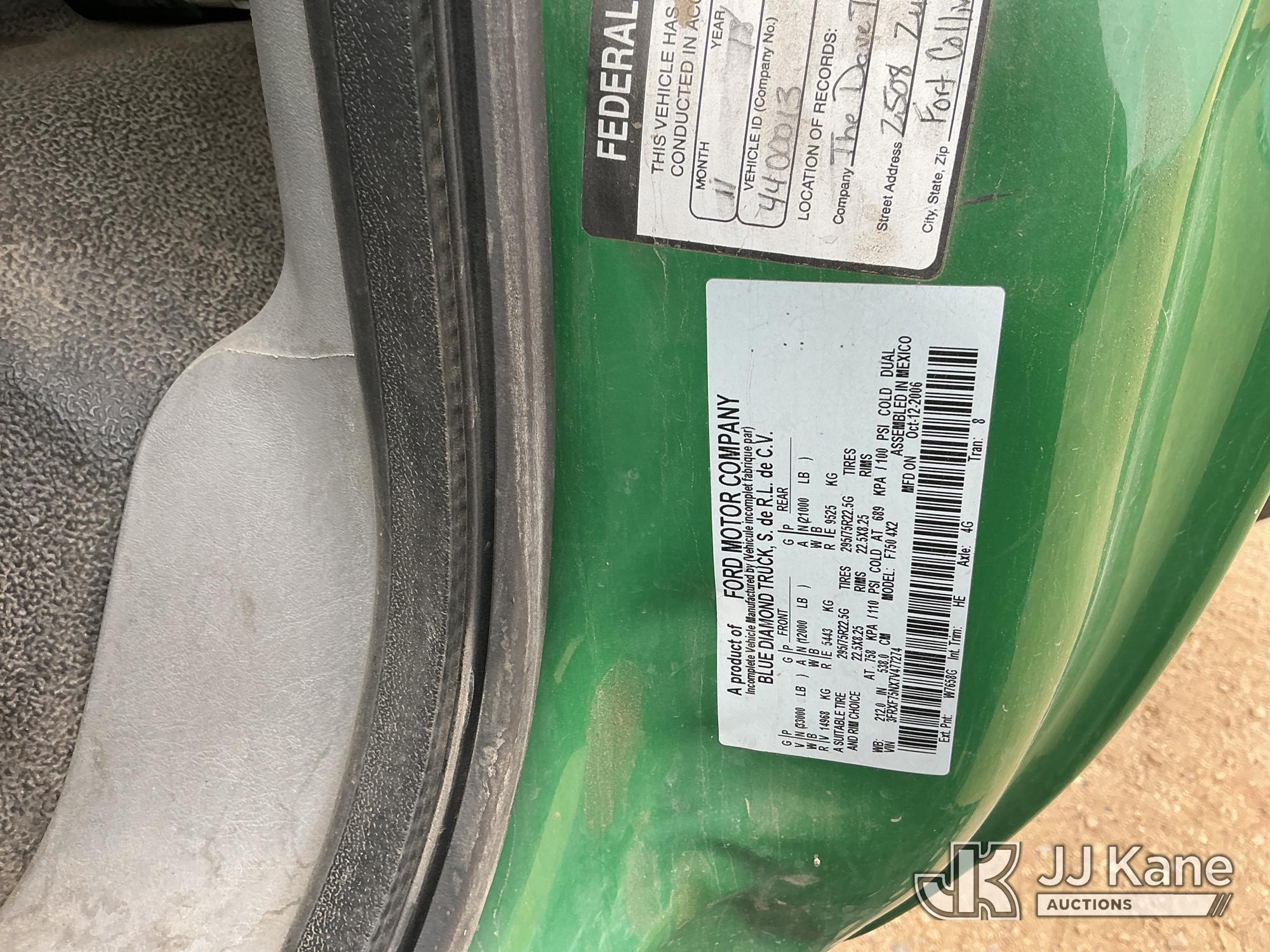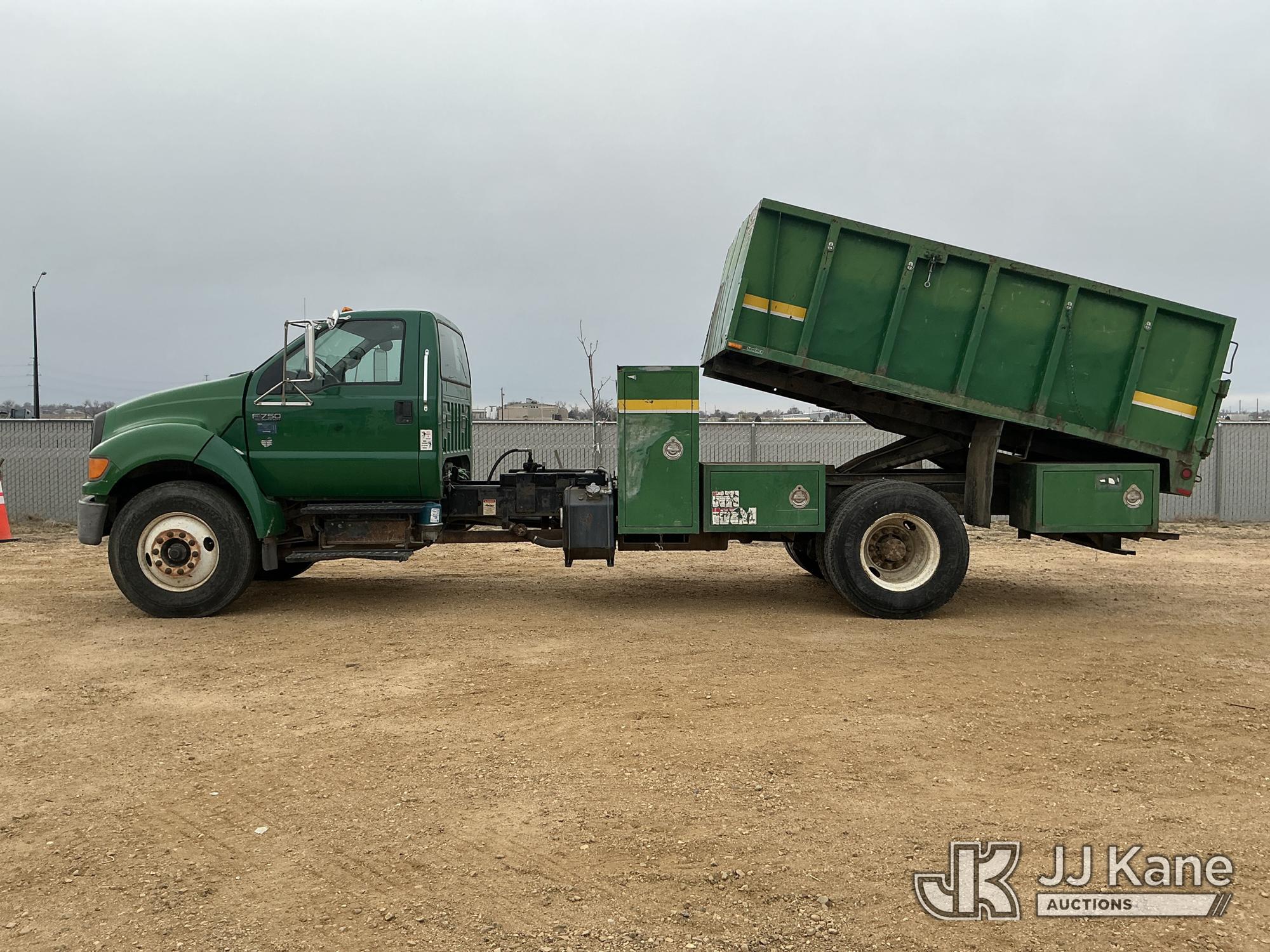 2007 Ford F-750 Dump Chipper Truck, 7.2L diesel, 4X2, manual, with Southco Industries Inc. 12ft by 7 Ft Dump Bed, SFMP-12, s/n: 372-07, (54,950 miles) PTO Reads: 5097 (Runs, Moves & Operates) (No Emissions Provided, See Bidder Agreement) (Reads 368 hours) This is a Titled Item*
