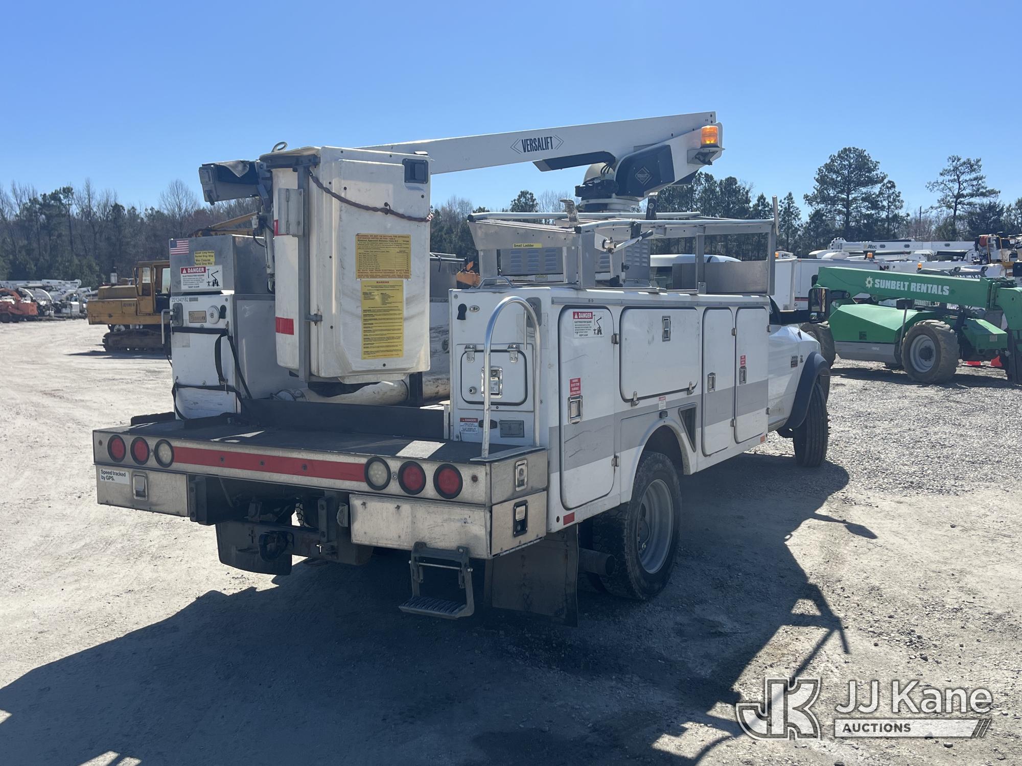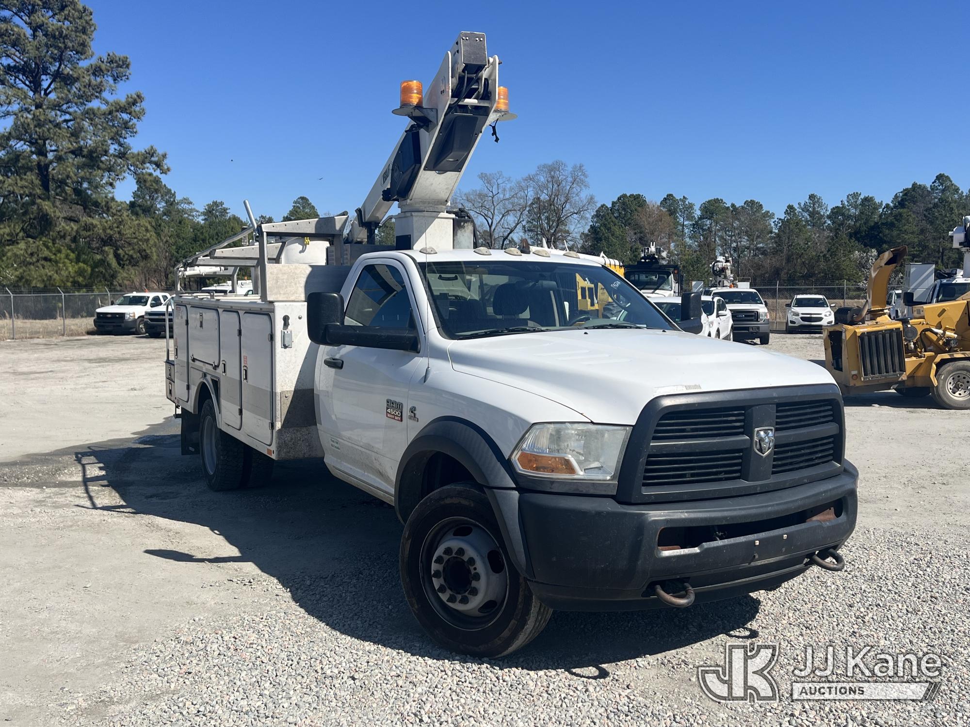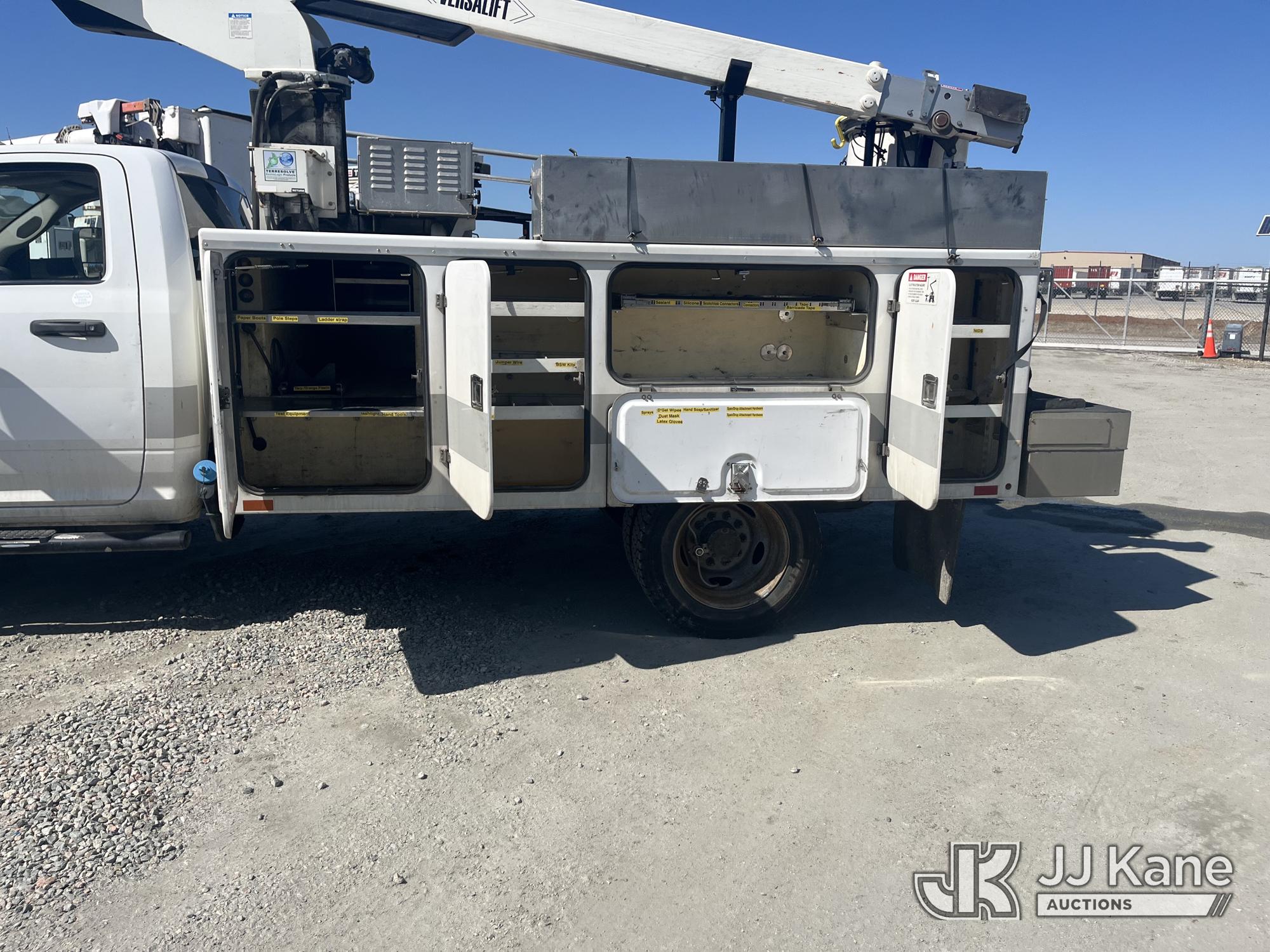 Versalift TEL29N, 34 ft, Telescopic Non-Insulated Bucket Truck s/n AG120449, with single-man bucket, mounted behind cab on 2012 Ram 4500 Service Truck, 6.7L diesel, Auto, (191,605 miles) (Runs & Moves) (Engine Cuts When Trying To Engage PTO, Upper Condition Unknown, Missing Upper Plate) This is a Titled Item*