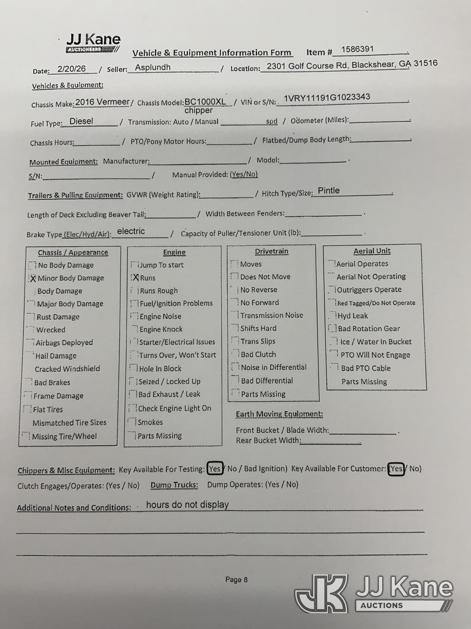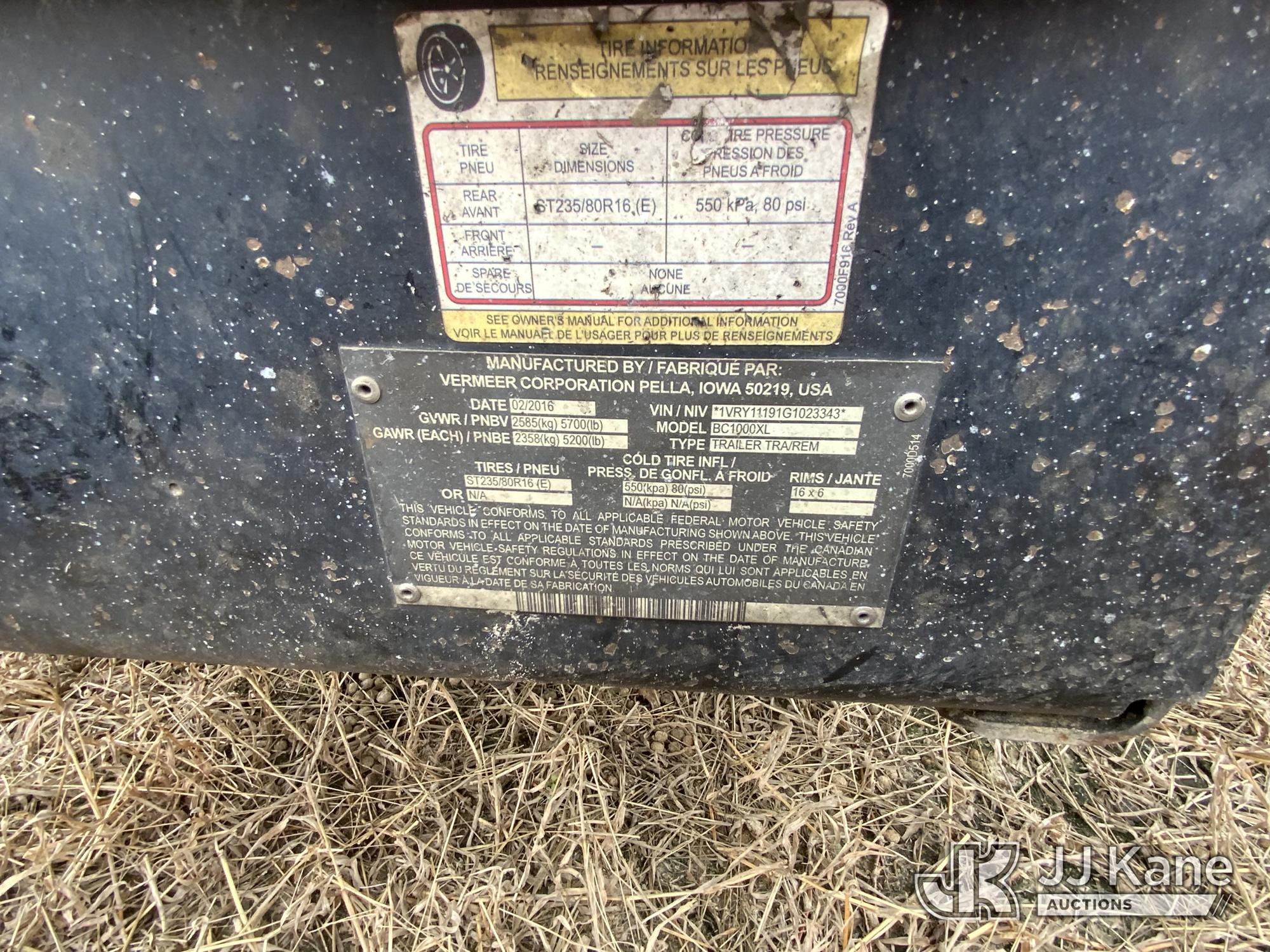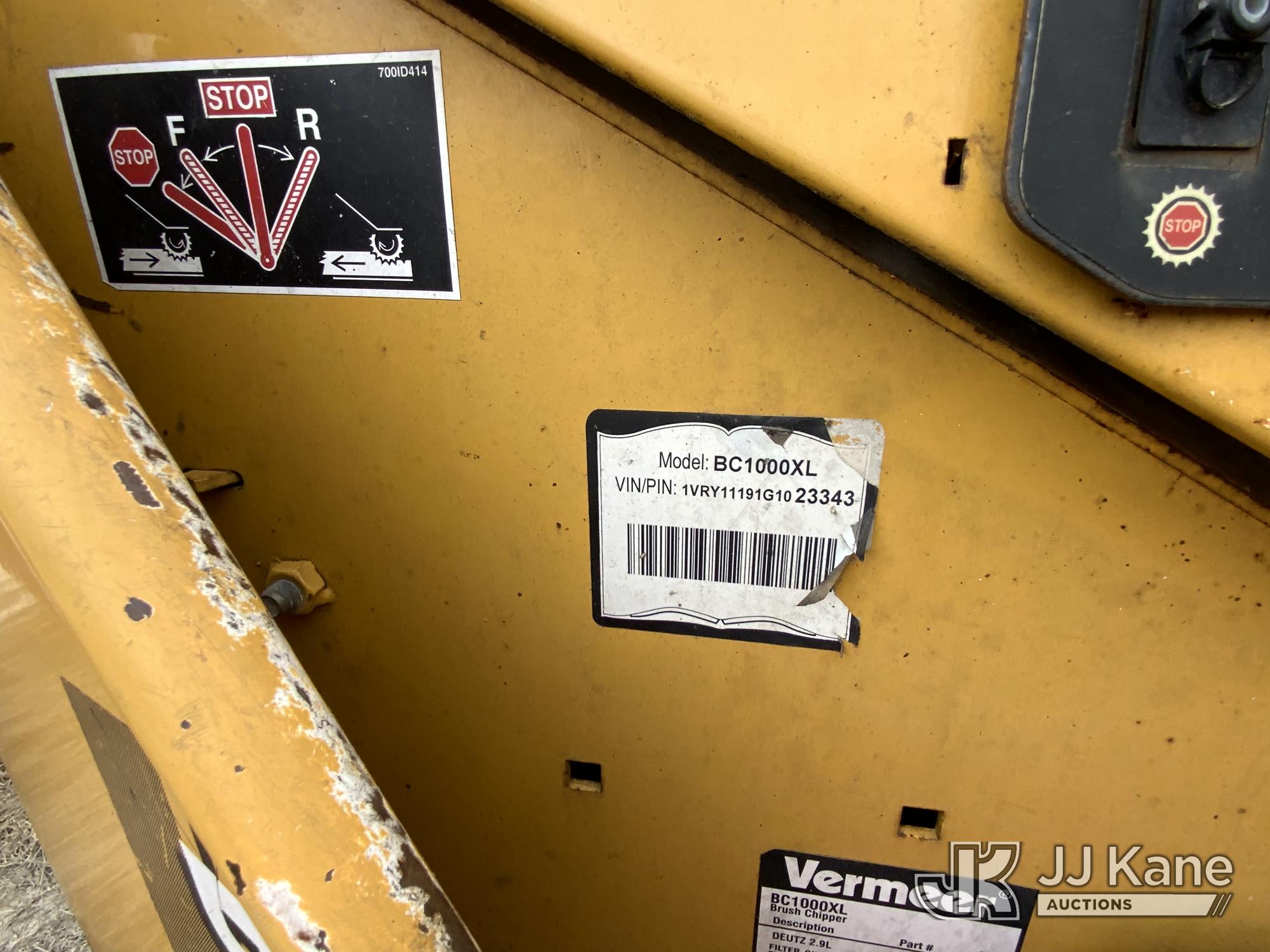 2016 Vermeer BC1000XL Chipper (12in Drum), s/n 1VRY11191G1023343, Deutz diesel, trailer mtd. (No Title) (Runs, Hours Unknown)*