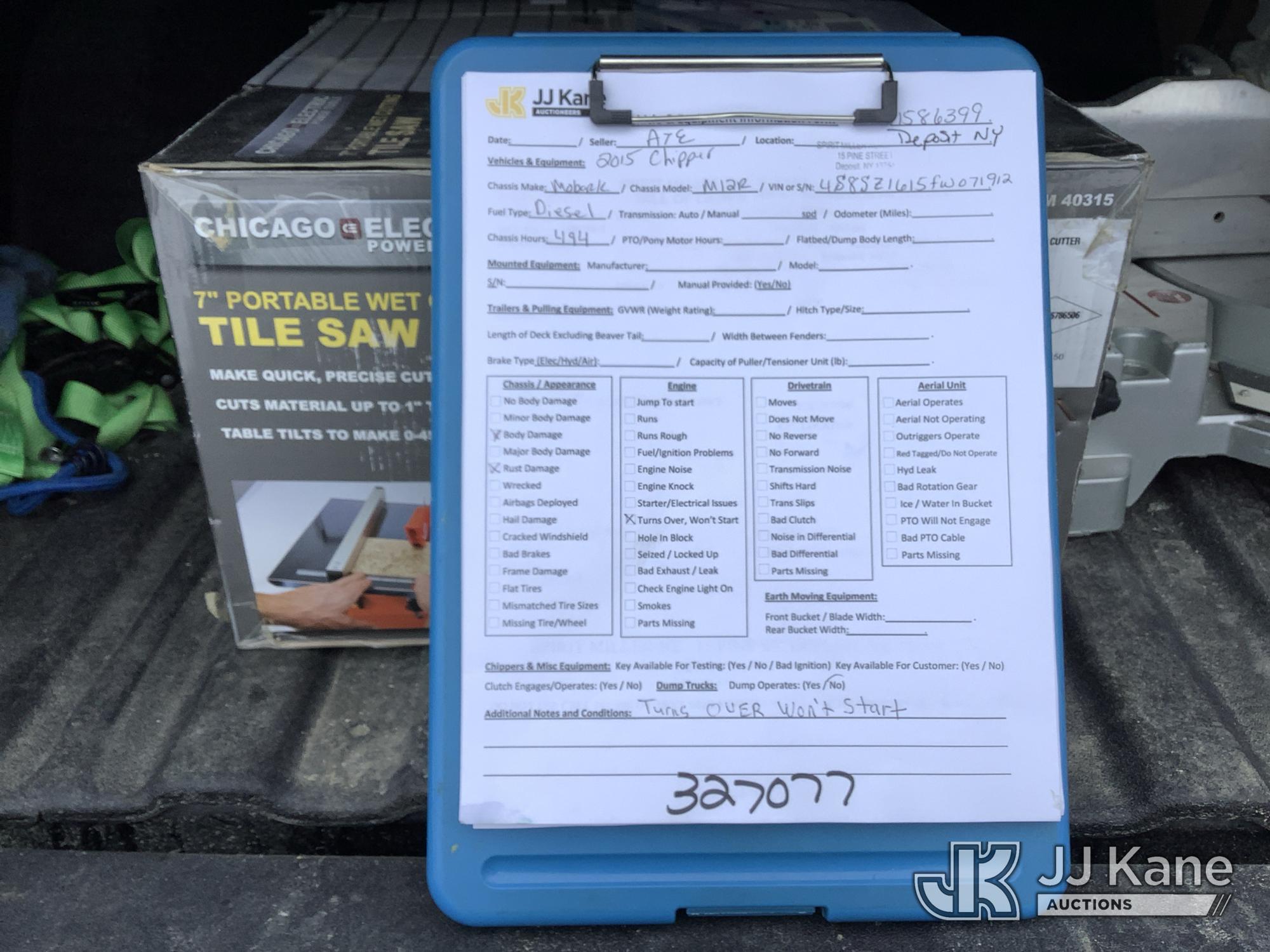 2015 Morbark M12R Chipper (12in Drum), s/n 4S8SZ1615FW071912, diesel, trailer mtd. (No Title) (Not Running, Turns Over, Won't Start, Condition Unknown, Body/Rust Damage) (Seller States: Clutch Failure, Electrical and Fuel Issues) (Reads 494 hours)*