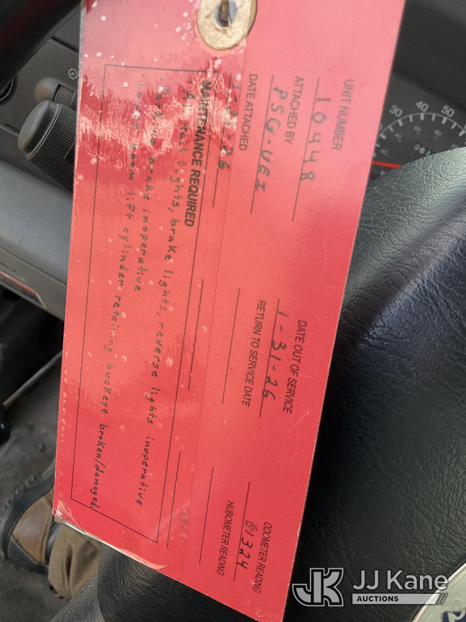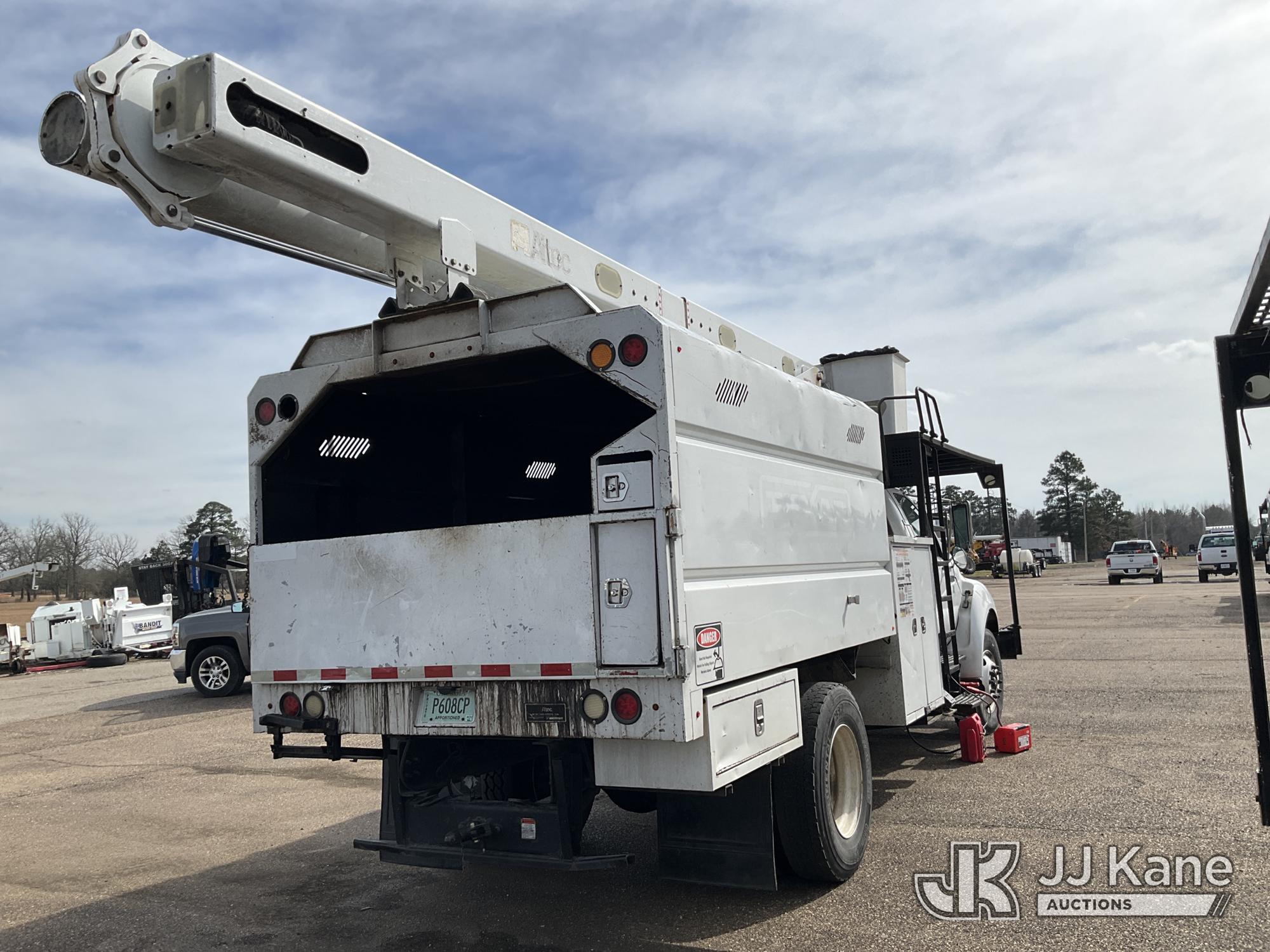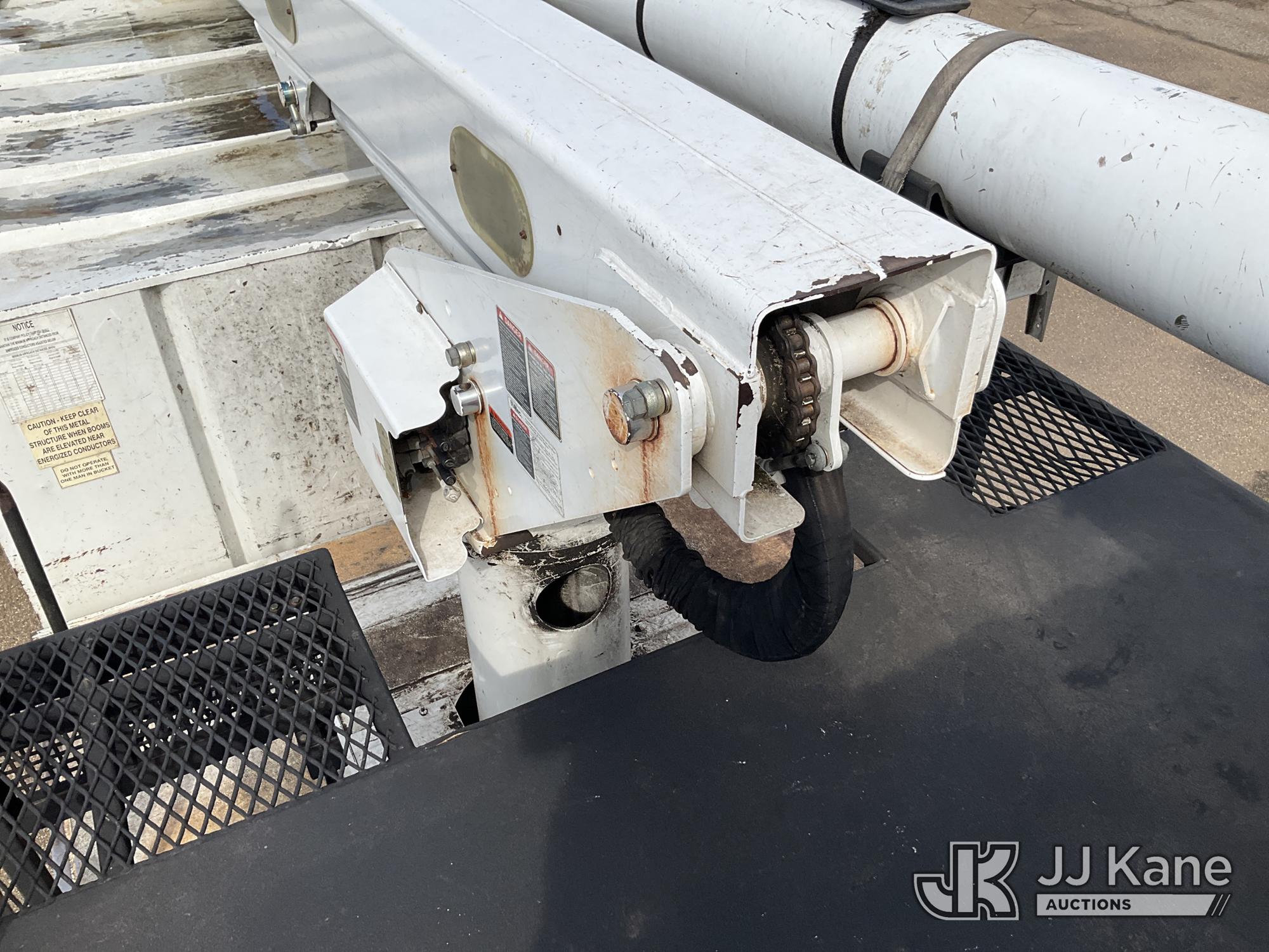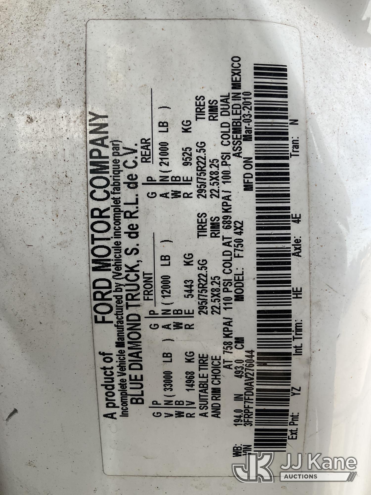Altec LRV-55, 60 ft, Over-Center Bucket Truck s/n 0411CV10724, with Single-Man Bucket, mounted behind cab on 2010 Ford F-750 Chipper Dump Truck, 6.7L L6 DIESEL 4X2, manual, (61,337 miles) (Per Seller Tag “All taillights, Brake Lights, and Reverse Lights are inoperable. Parking Brake Inoperative, Lower Boom Lift cylinder retaining Buckeye Broken “ Runs, Moves, PTO Not Engaging, Upper Conditions Unknown) (Jump to Start, NO PARKING BRAKE!, Further Conditions Unknown, Dies When Jump Box is Disconnected, Suggest Tow Away The manufacturer has notified JJ Kane that this equipment is subject to an open recall. CSN 672 LRV/LR7 Leveling Yoke Inspection The equipment should not be operated until this is addressed. Buyer is responsible for reviewing the recall notice and contacting the manufacturer to schedule the recommended corrective actions. Associated costs may be covered by the manufacturer in some cases.) This is a Titled Item*