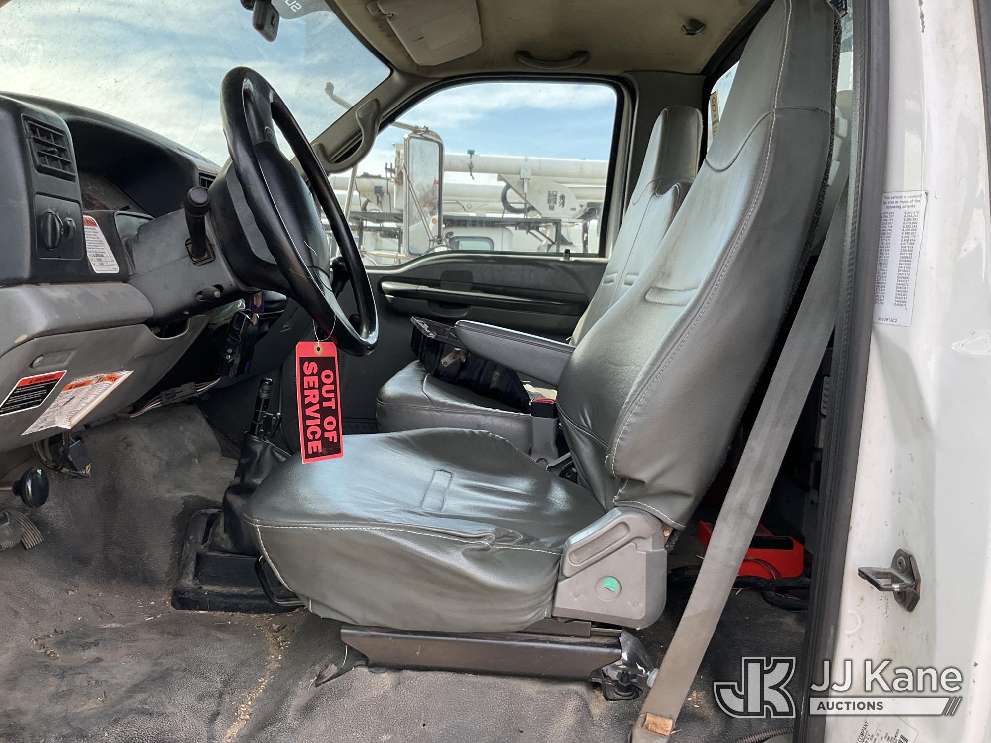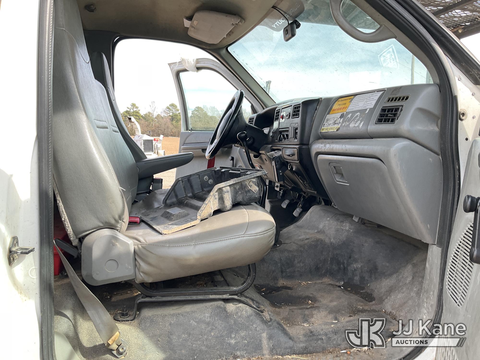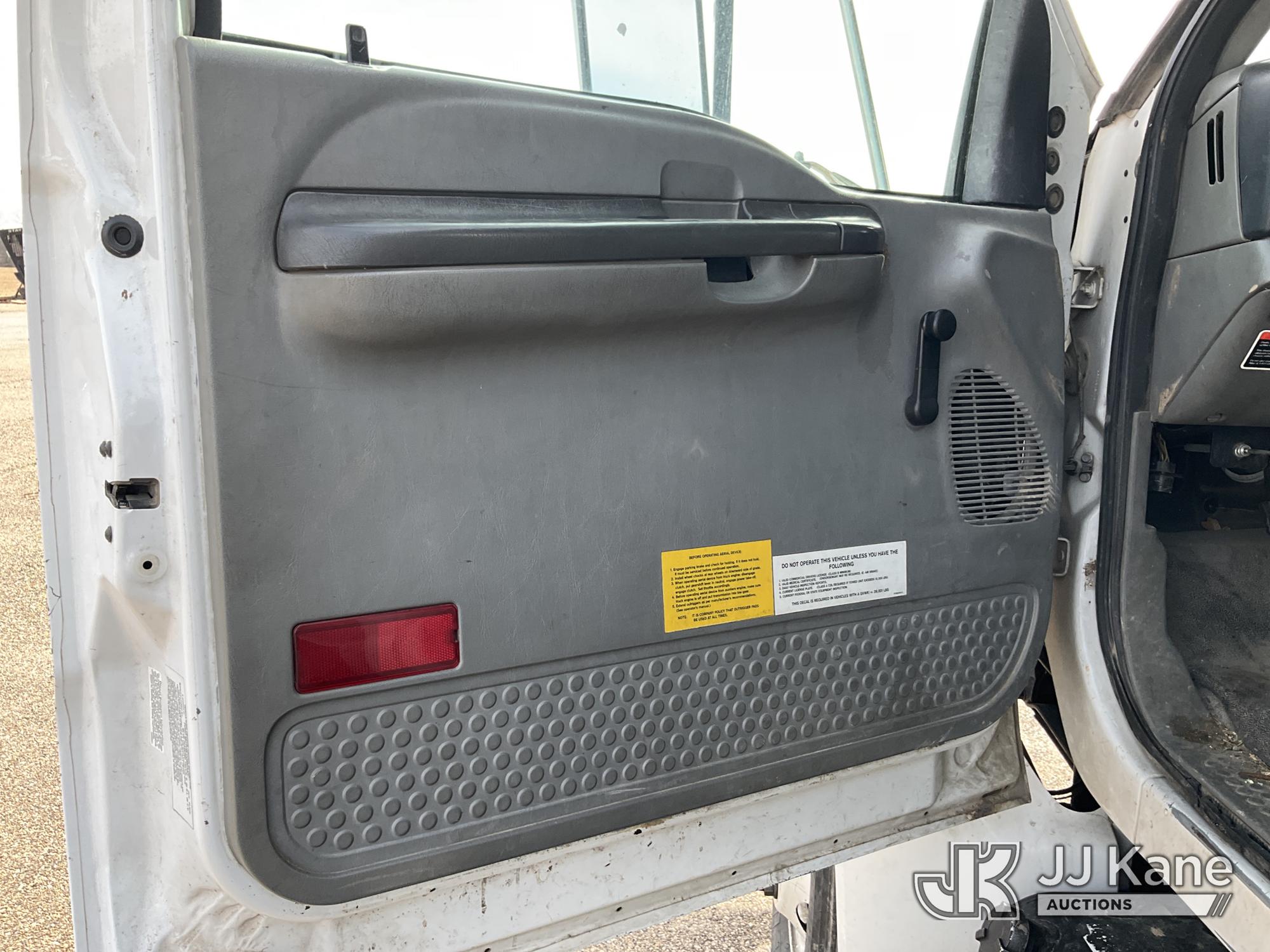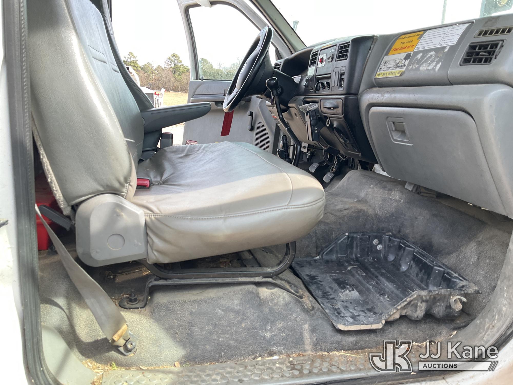 Altec LRV-55, 60 ft, Over-Center Bucket Truck s/n 0411CV10724, with Single-Man Bucket, mounted behind cab on 2010 Ford F-750 Chipper Dump Truck, 6.7L L6 DIESEL 4X2, manual, (61,337 miles) (Per Seller Tag “All taillights, Brake Lights, and Reverse Lights are inoperable. Parking Brake Inoperative, Lower Boom Lift cylinder retaining Buckeye Broken “ Runs, Moves, PTO Not Engaging, Upper Conditions Unknown) (Jump to Start, NO PARKING BRAKE!, Further Conditions Unknown, Dies When Jump Box is Disconnected, Suggest Tow Away The manufacturer has notified JJ Kane that this equipment is subject to an open recall. CSN 672 LRV/LR7 Leveling Yoke Inspection The equipment should not be operated until this is addressed. Buyer is responsible for reviewing the recall notice and contacting the manufacturer to schedule the recommended corrective actions. Associated costs may be covered by the manufacturer in some cases.) This is a Titled Item*