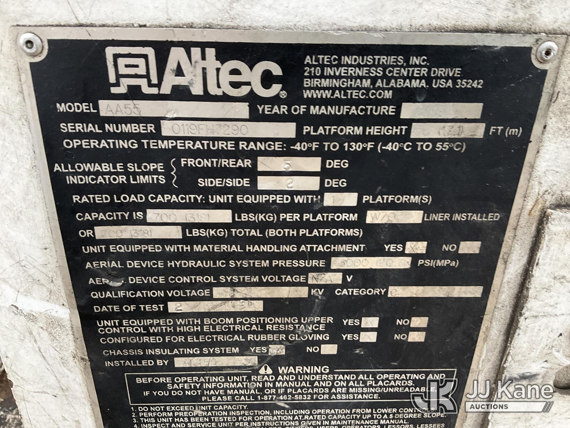 Altec AA55-MH, 60 ft, Material Handling Bucket Truck s/n 0119FH7290, with two-man bucket, rear mounted on 2020 Freightliner M2 Utility Truck, Cummins ISB-250 6.7L diesel, Auto, A/C, (72,310 miles) (Runs, Moves & Upper Operates ) This is a Titled Item*