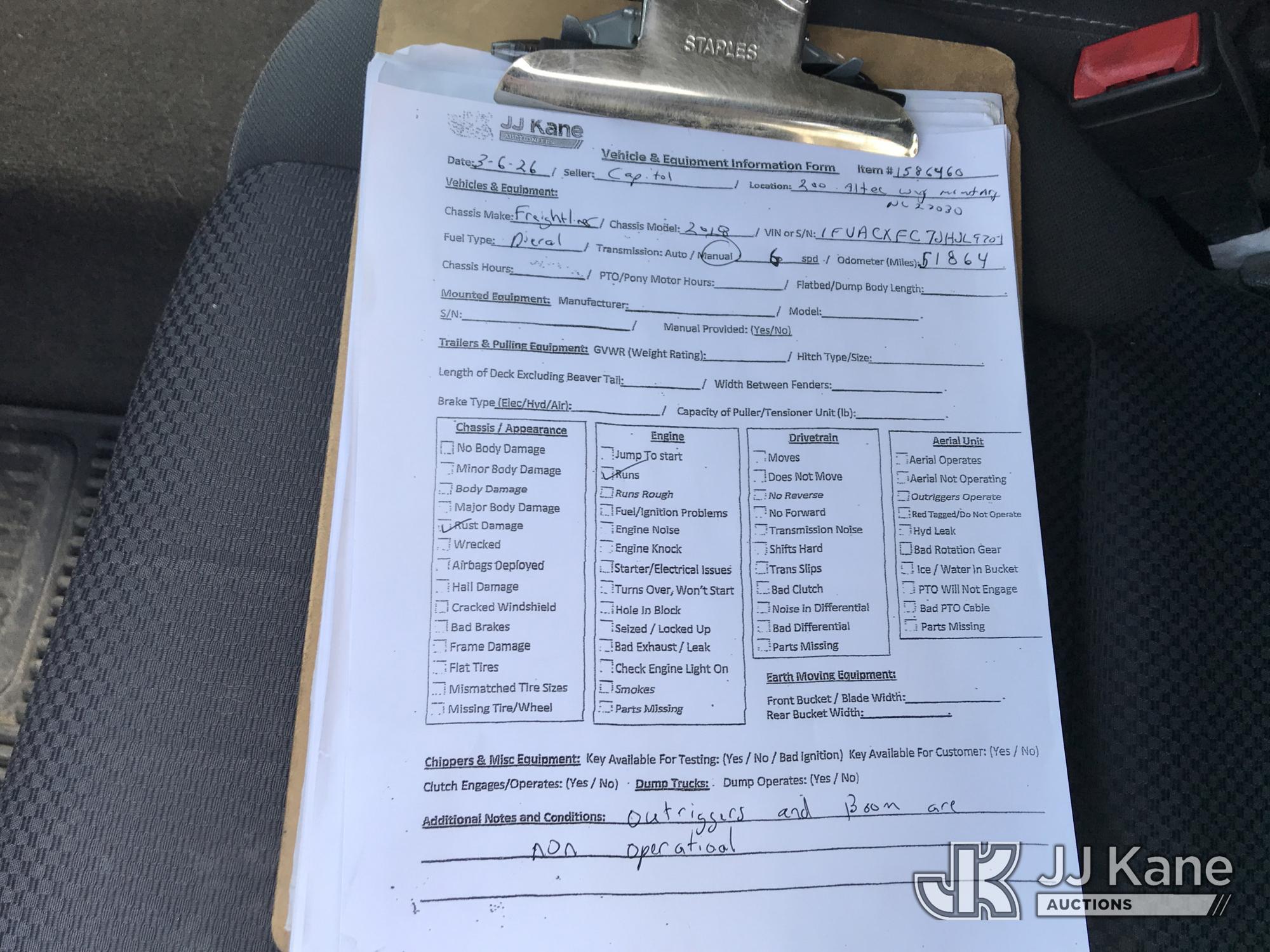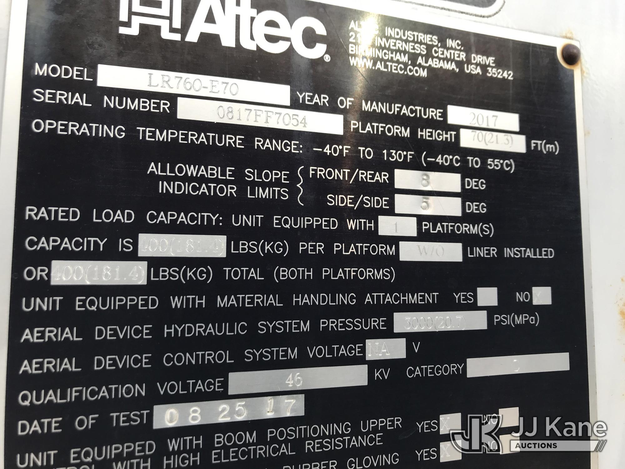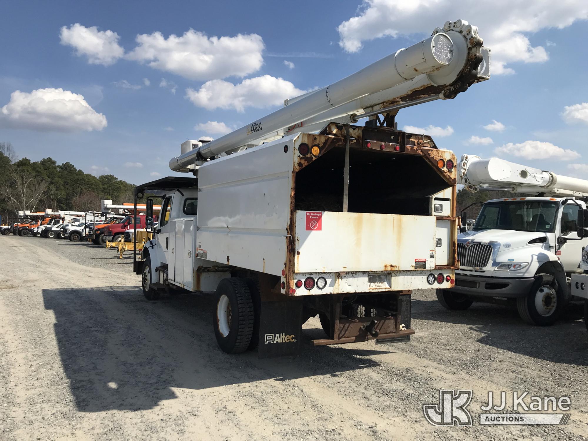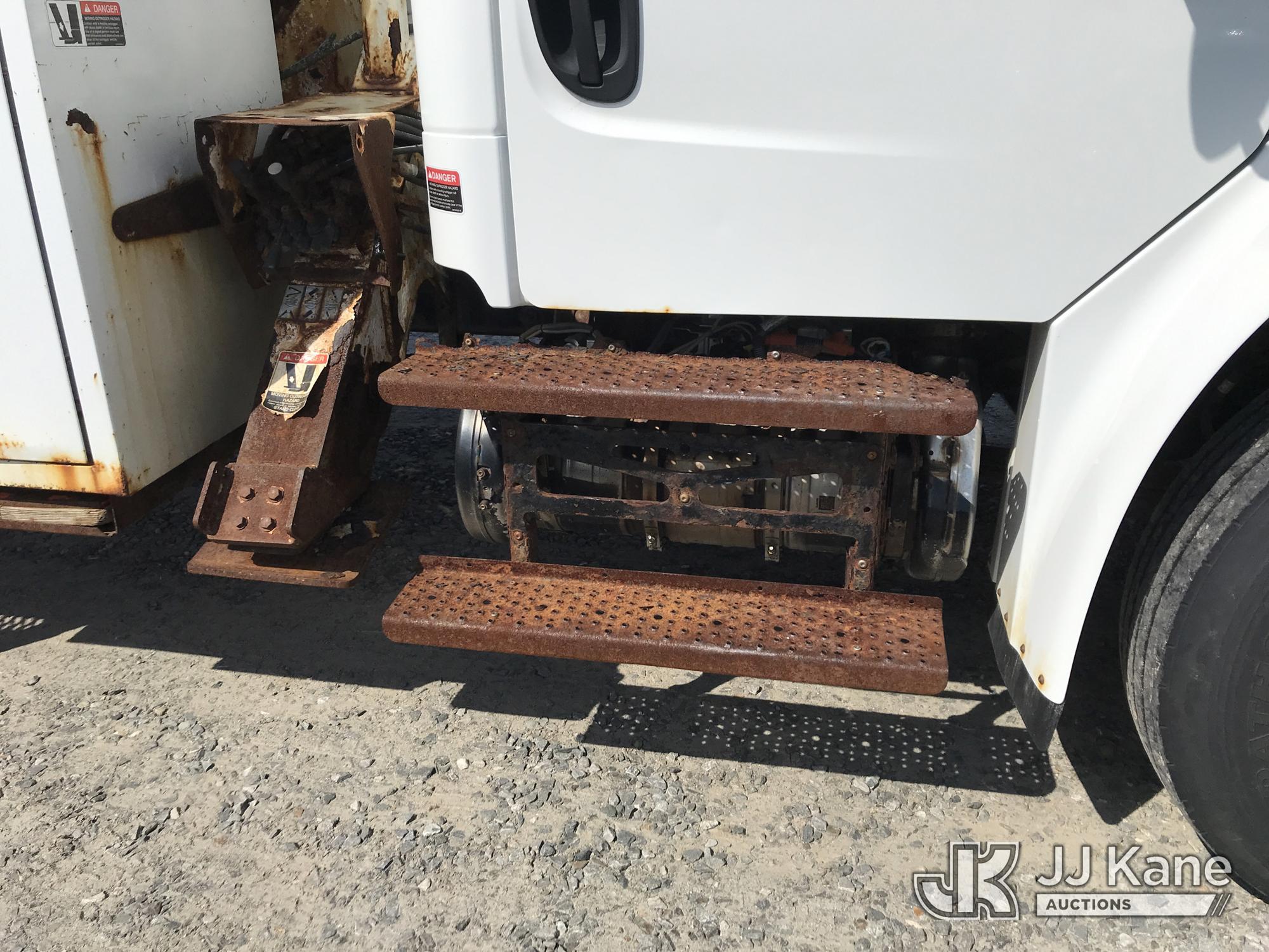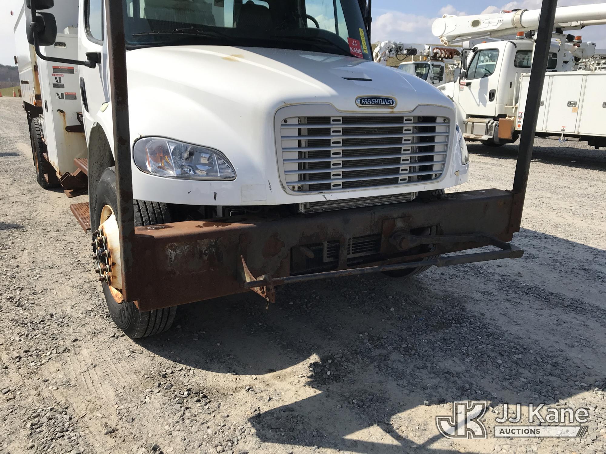Altec LR7-60E70, 75 ft, Over-Center Elevator Bucket Truck s/n 0817FF7054, with single man bucket, mounted behind cab on 2018 Freightliner M2 Chipper Dump Truck, 6.7L diesel, 6-spd, A/C, (51,864 miles) (Runs) (Upper Unit Inoperable - Condition Unknown, Check Engine Light On, Rust Damage) (**Dealer Only** This item has been removed from service due to the listed safety repairs that were not completed. The safety items below must be completed by an approved OEM facility before the unit can return to service: LOWER BOOM REQUIRES REPLACEMENT; COMPLETE ANSI INSPECTION; COMPLETE ANY REQUIRED TESTING AFTER REPAIRS AND INSPECTIONS ARE COMPLETED) (Bidding Restricted to Licensed Vehicle Dealers Only), This is a Titled Item*