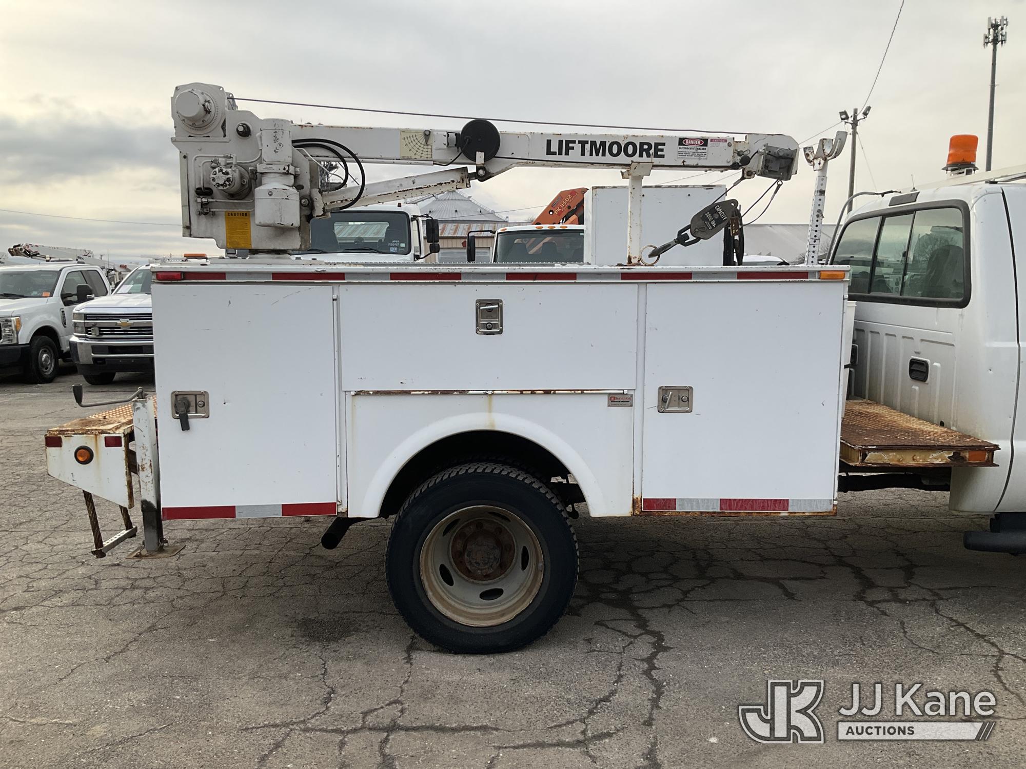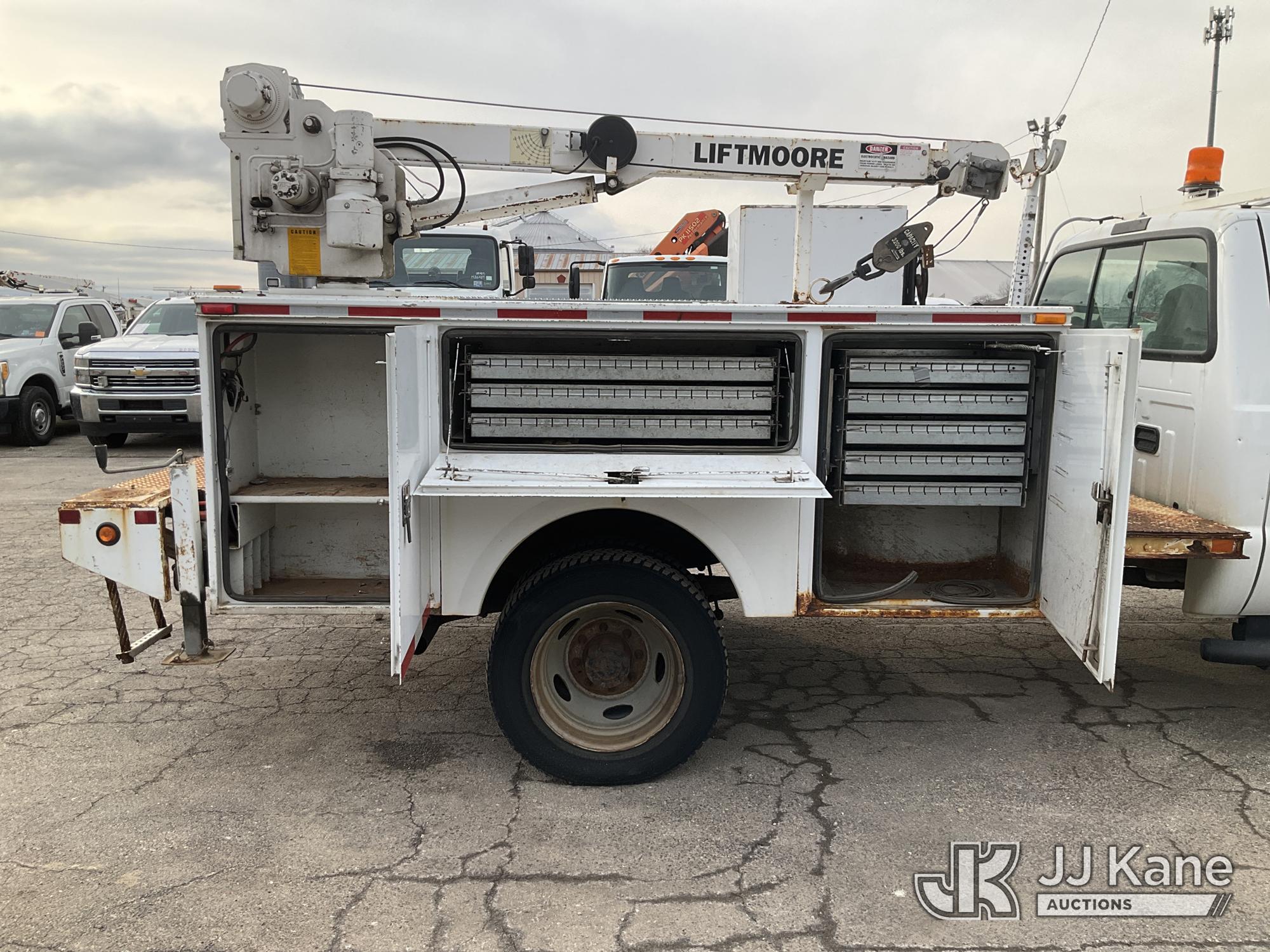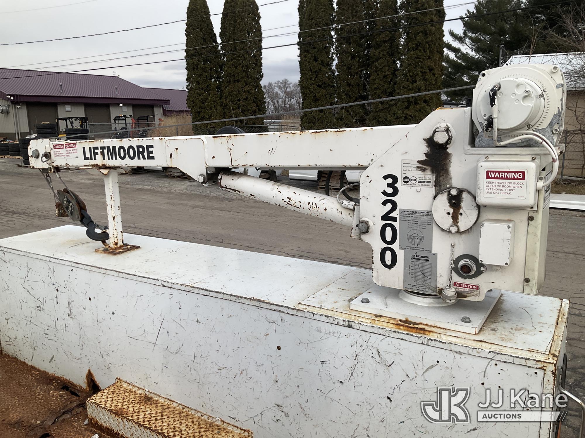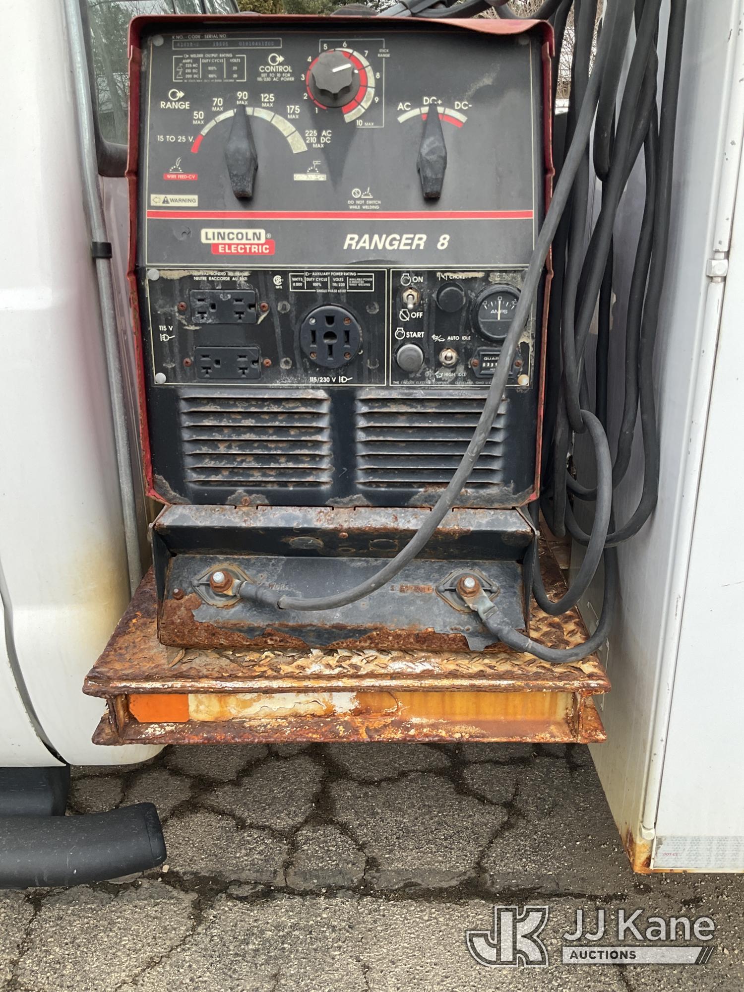 2003 Ford F-550 Welder Truck, 10-cyl gas, Auto, with Liftmoore Crane, Lincoln Ranger 8 Welder, (Exempt from Odometer Disclosure - Reads 57,467 miles) (Runs & Moves) (Front Tire Flat-Broken Belt-Not Roadworthy, Body Damage)(Missing Crane Remote-Crane Condition Unknown, Welder Cranks-Does Not Start-Condition Unknown) This is a Titled Item*