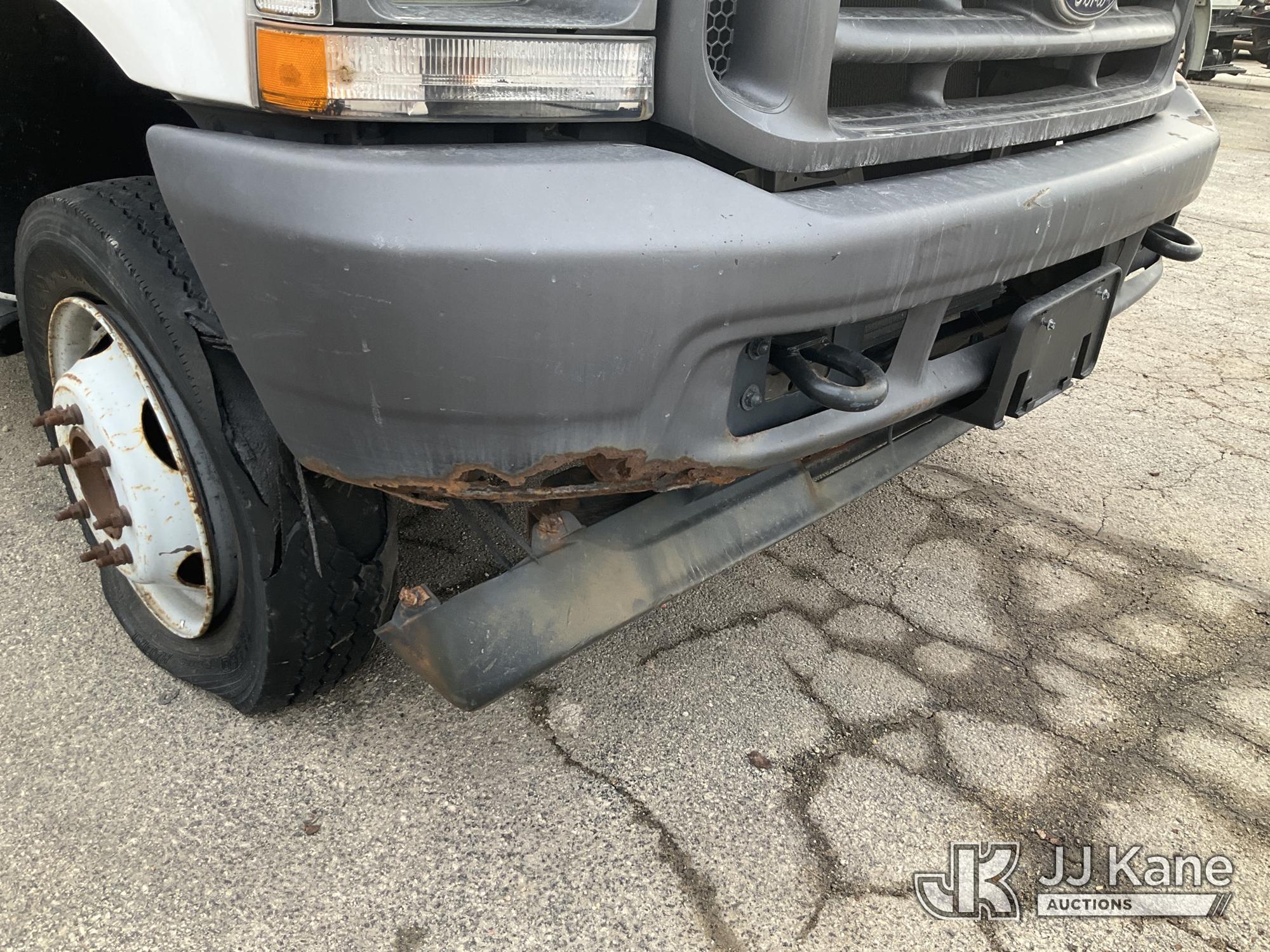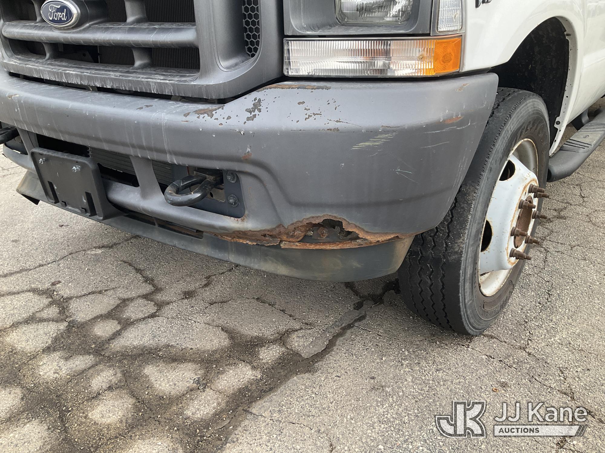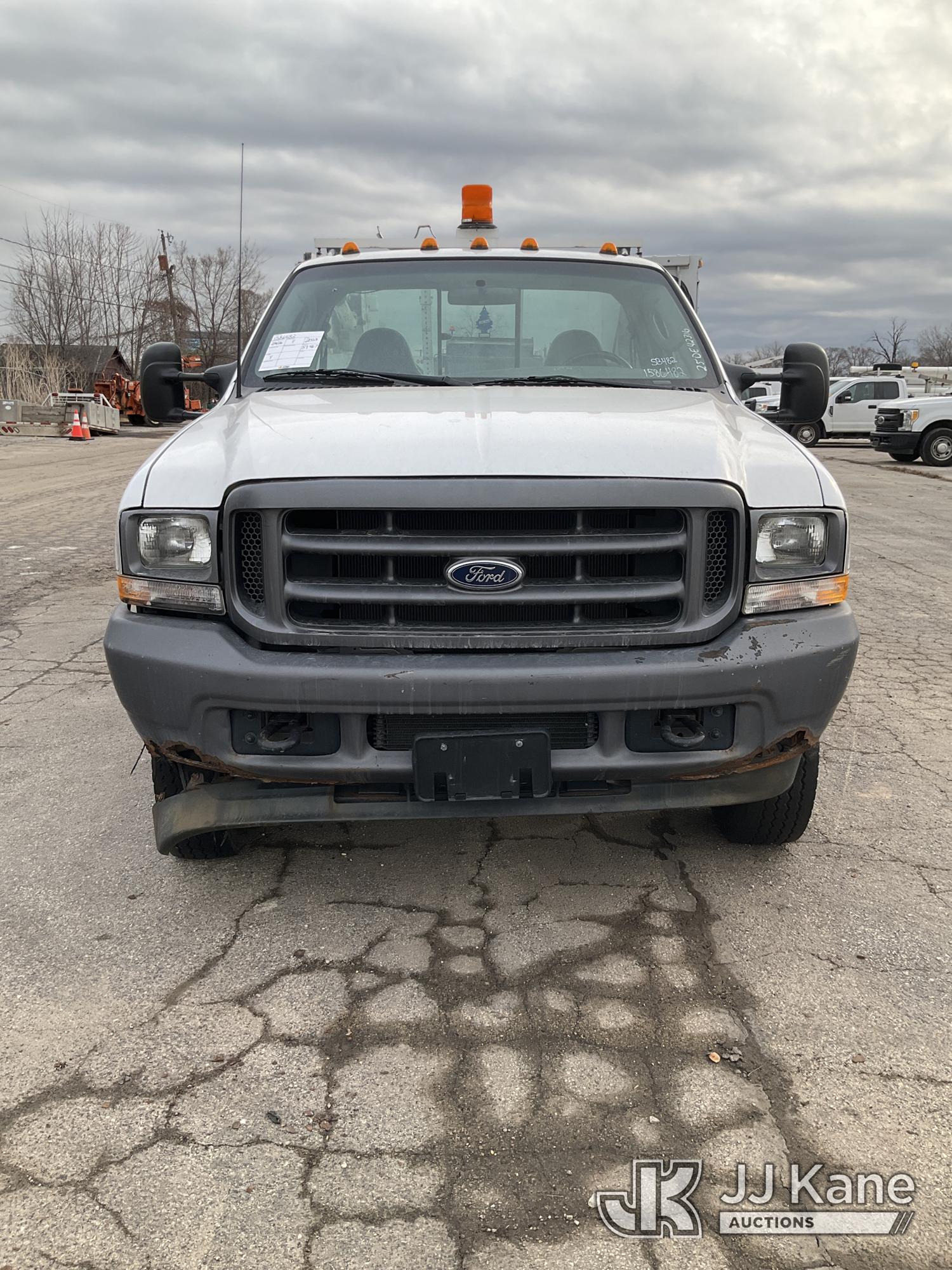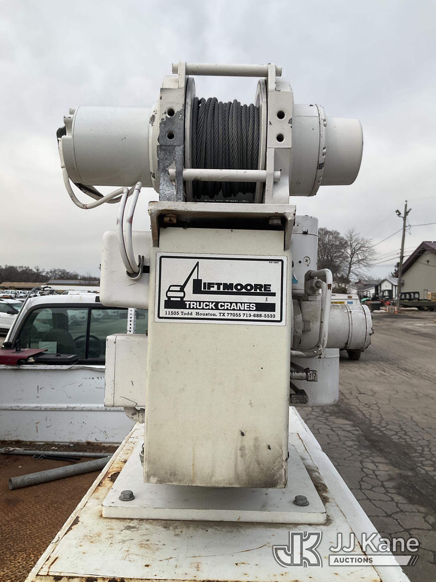 2003 Ford F-550 Welder Truck, 10-cyl gas, Auto, with Liftmoore Crane, Lincoln Ranger 8 Welder, (Exempt from Odometer Disclosure - Reads 57,467 miles) (Runs & Moves) (Front Tire Flat-Broken Belt-Not Roadworthy, Body Damage)(Missing Crane Remote-Crane Condition Unknown, Welder Cranks-Does Not Start-Condition Unknown) This is a Titled Item*