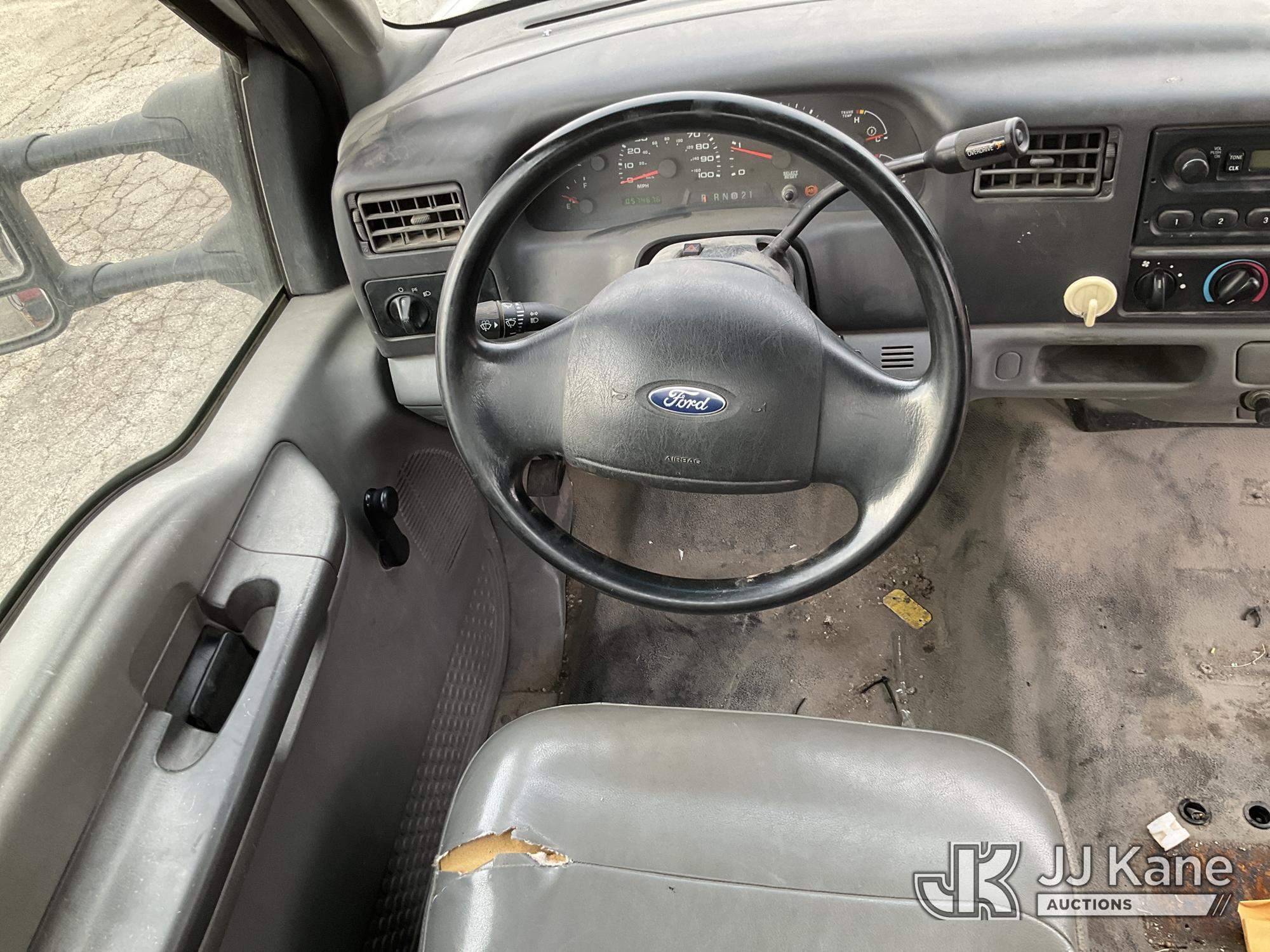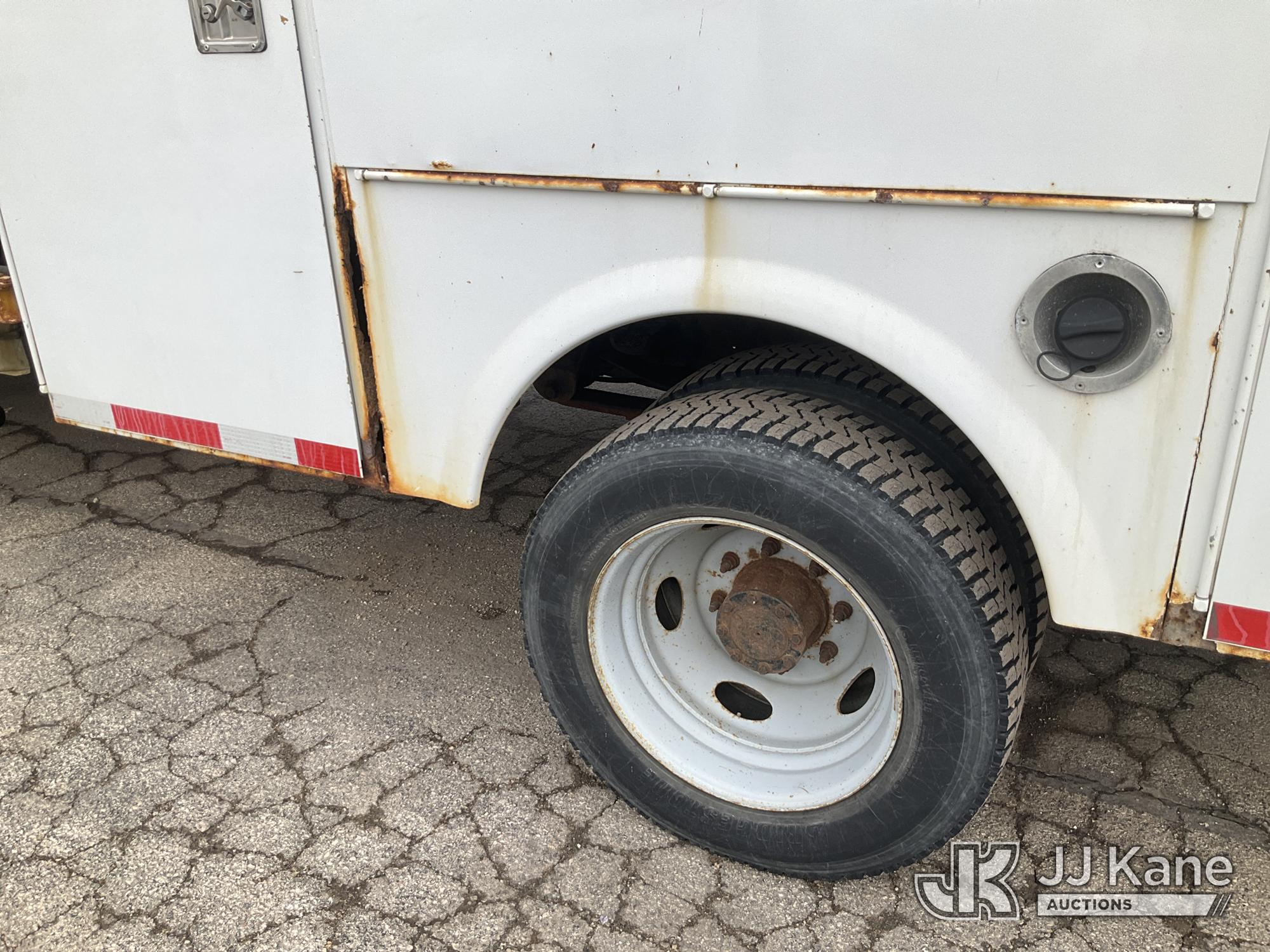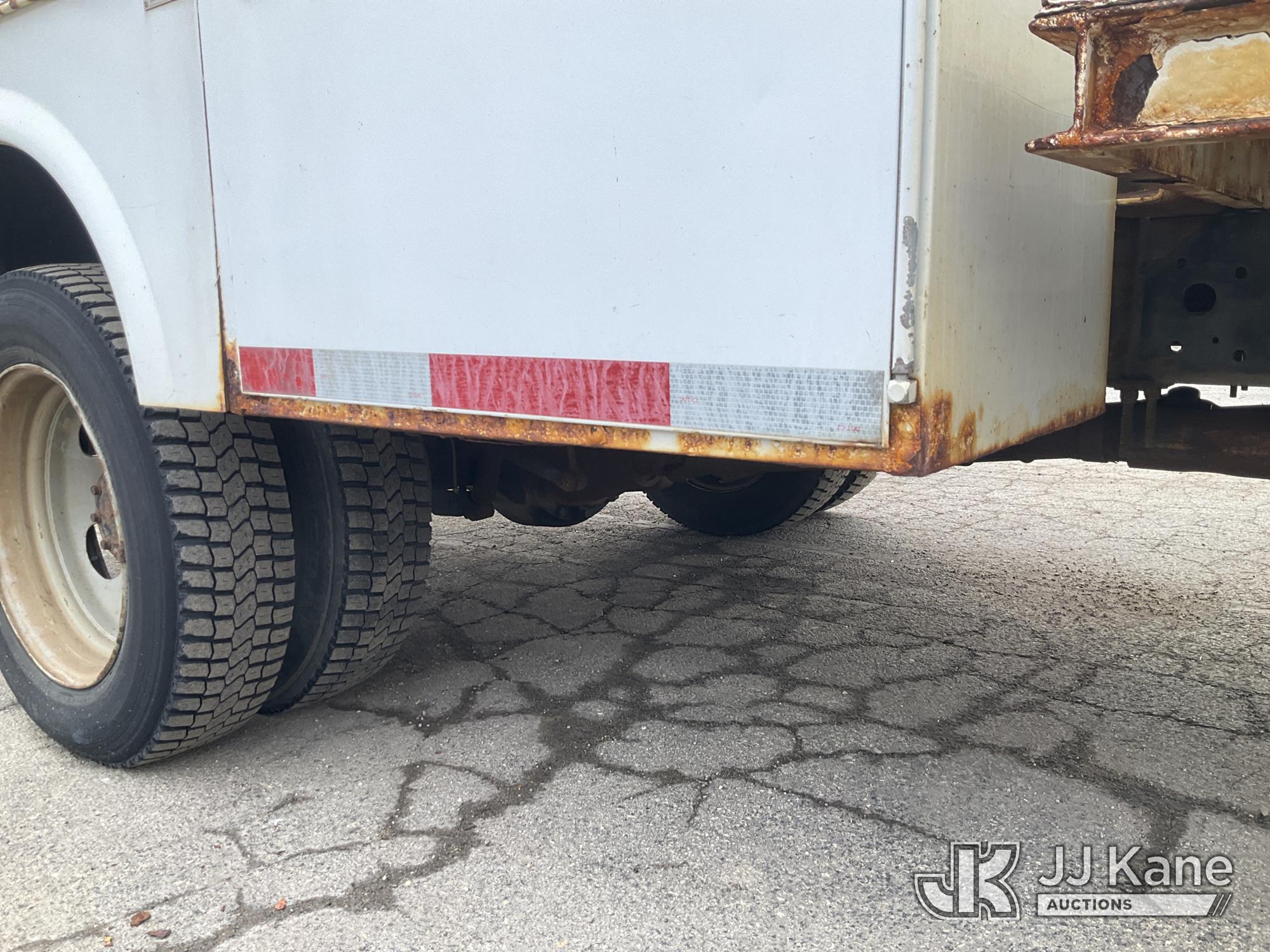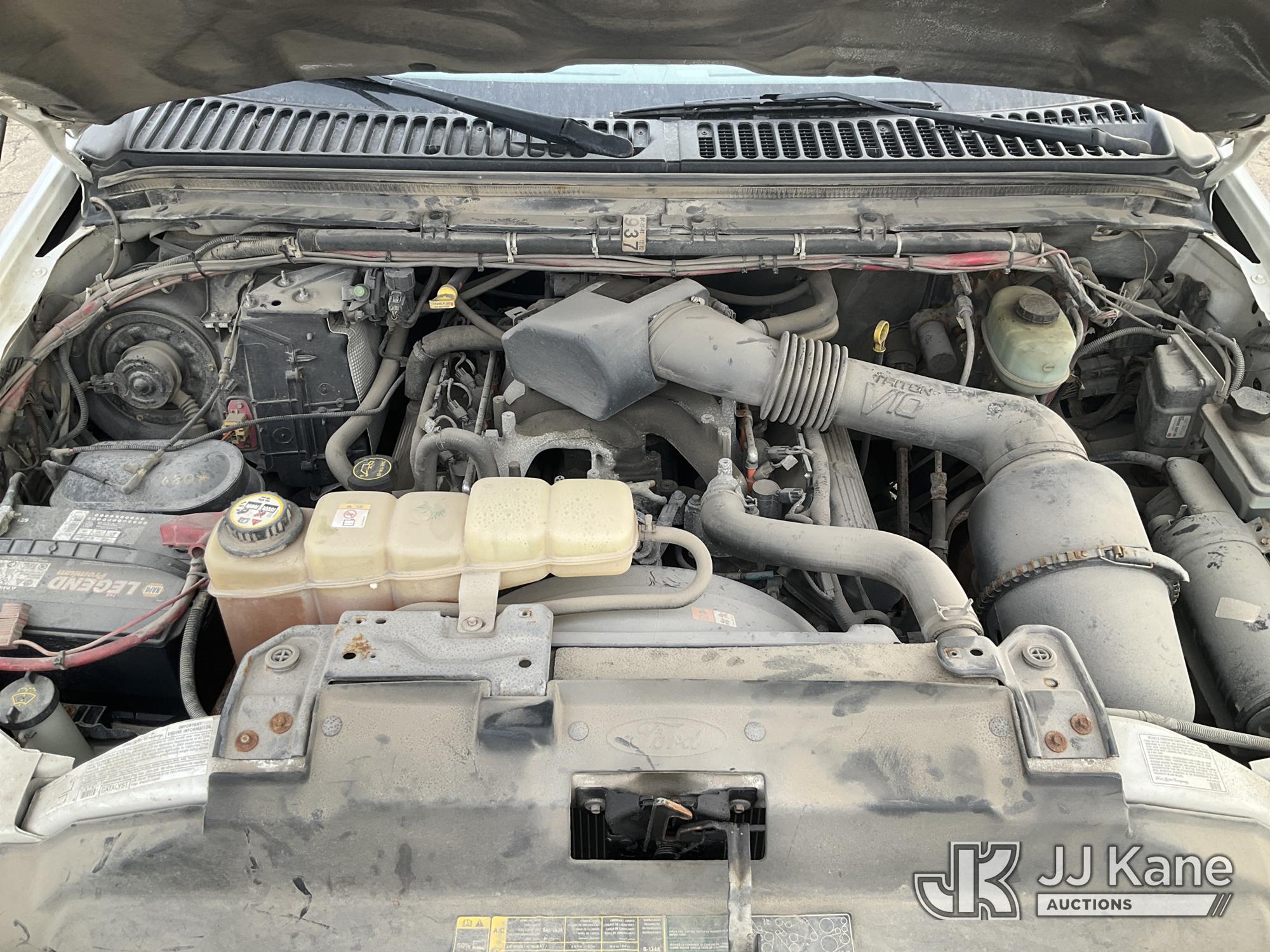 2003 Ford F-550 Welder Truck, 10-cyl gas, Auto, with Liftmoore Crane, Lincoln Ranger 8 Welder, (Exempt from Odometer Disclosure - Reads 57,467 miles) (Runs & Moves) (Front Tire Flat-Broken Belt-Not Roadworthy, Body Damage)(Missing Crane Remote-Crane Condition Unknown, Welder Cranks-Does Not Start-Condition Unknown) This is a Titled Item*